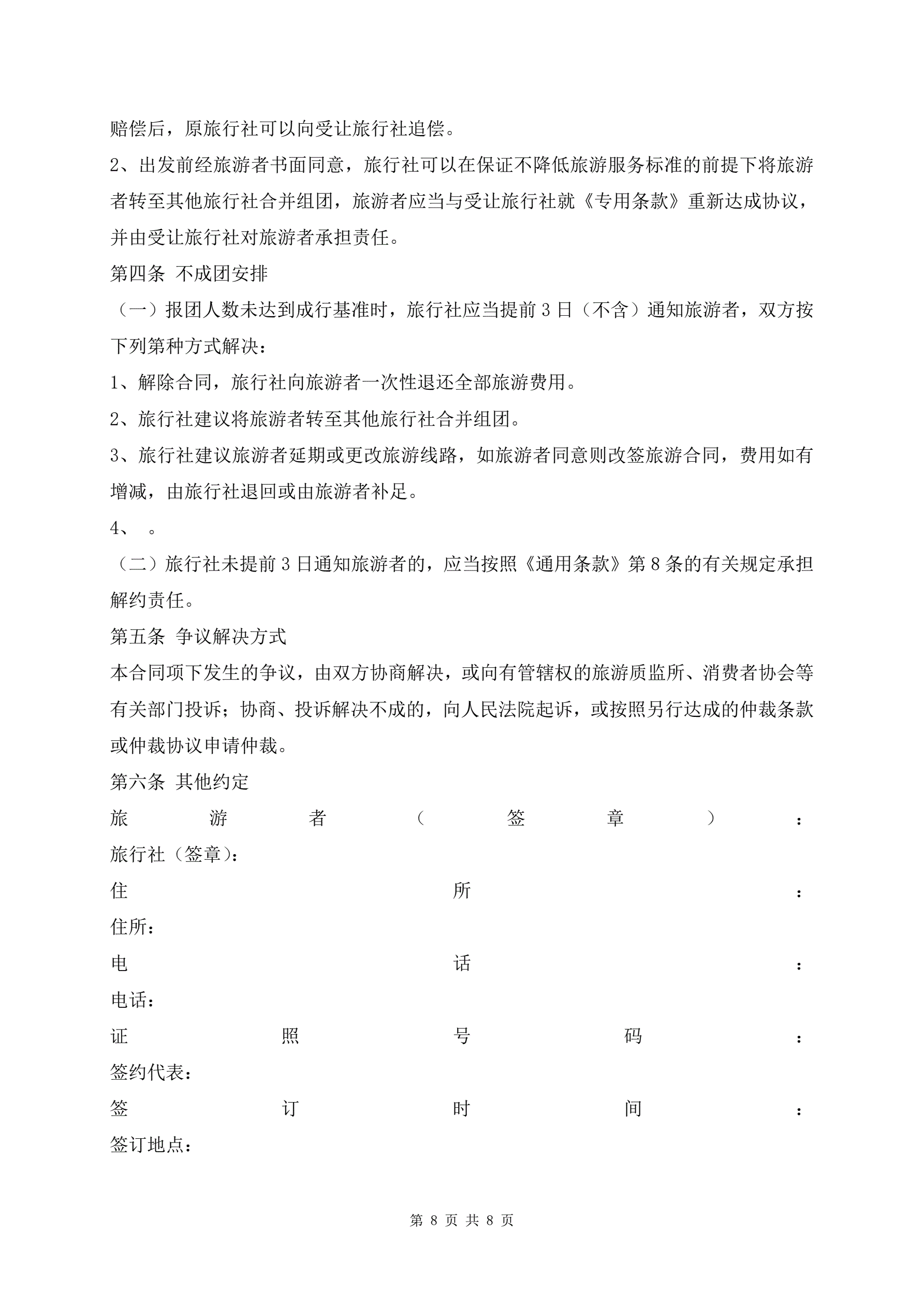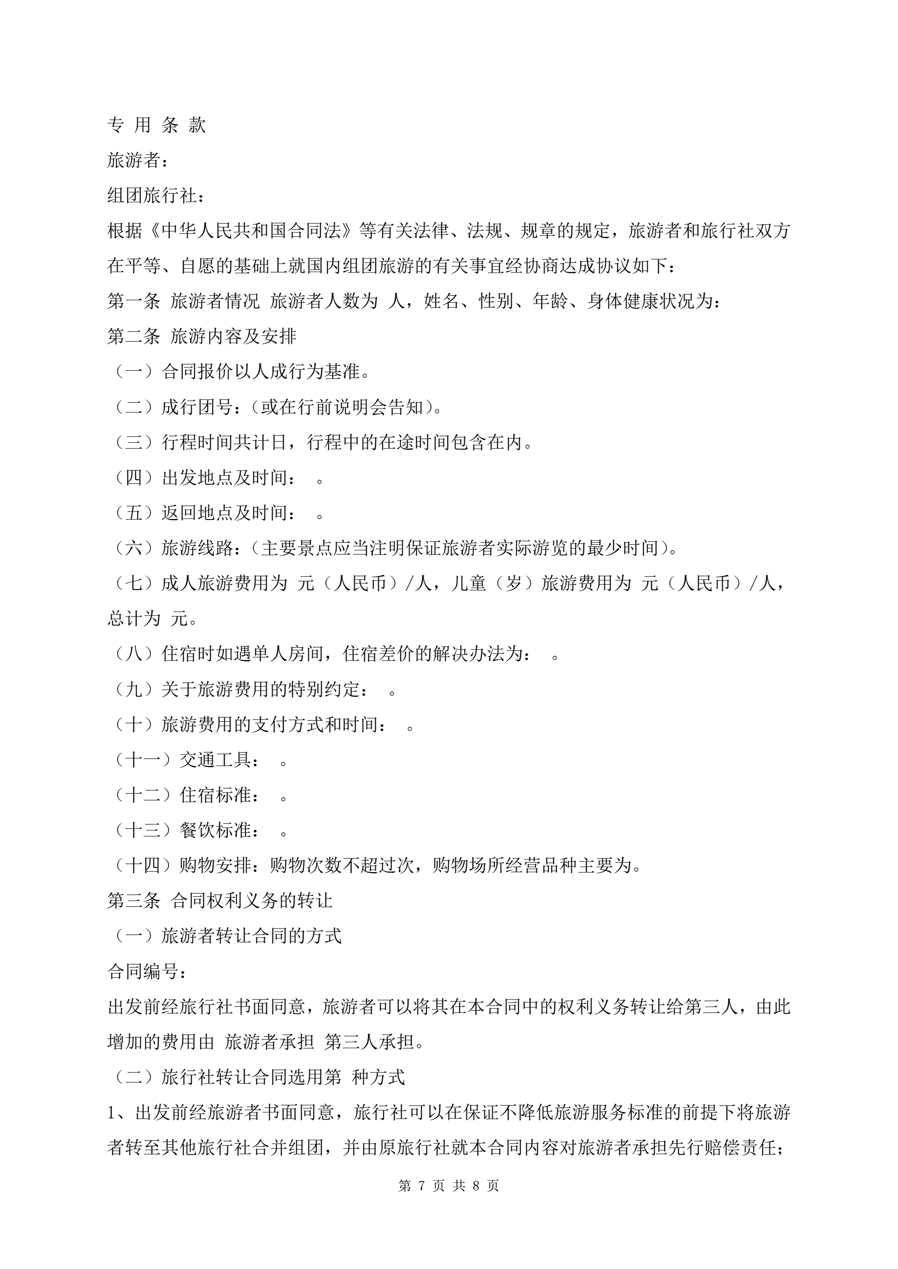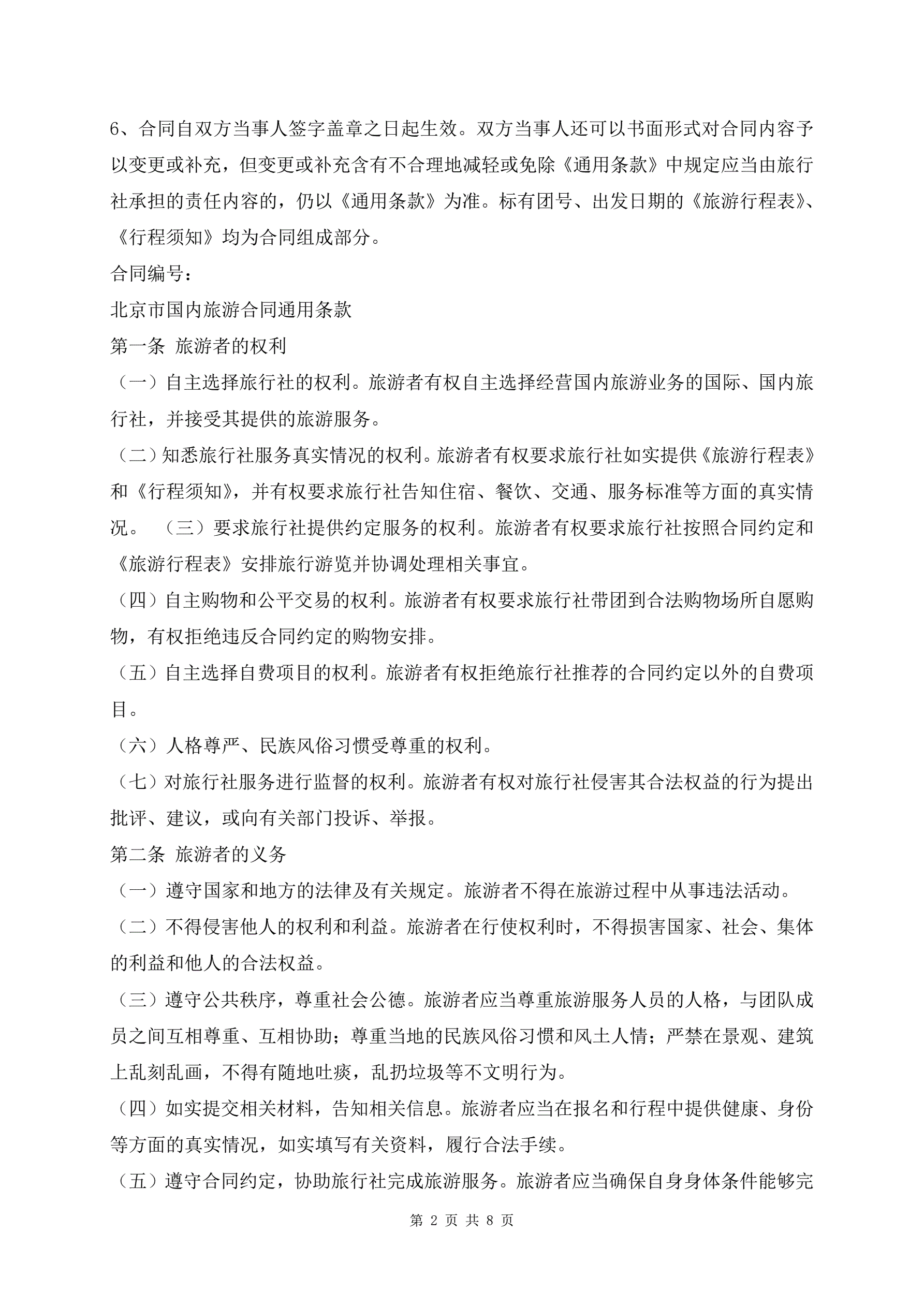 >北京市国内组团旅游合同