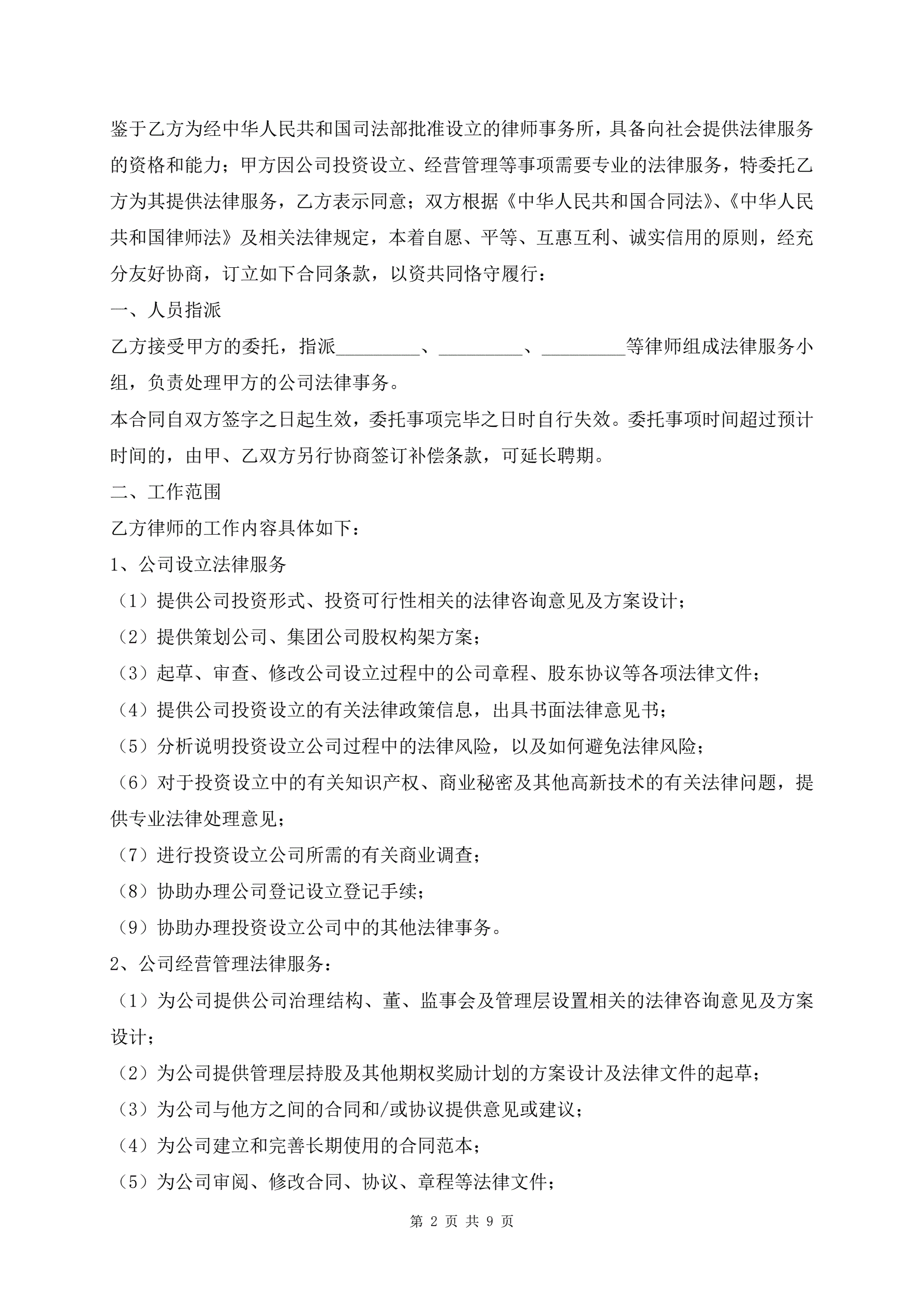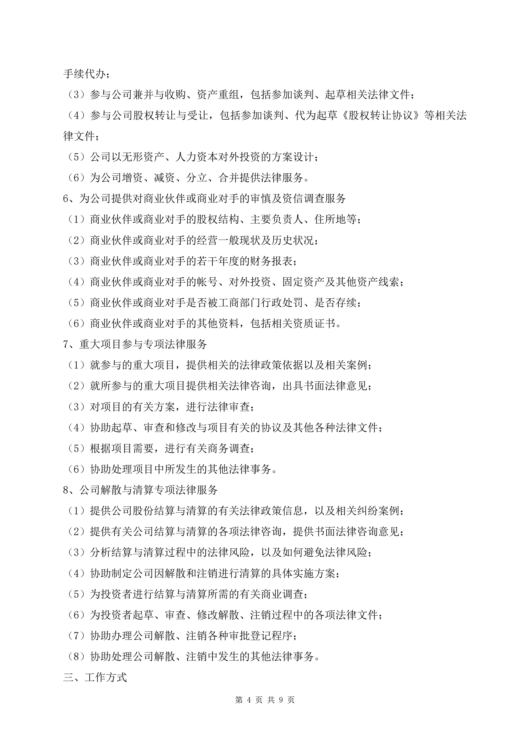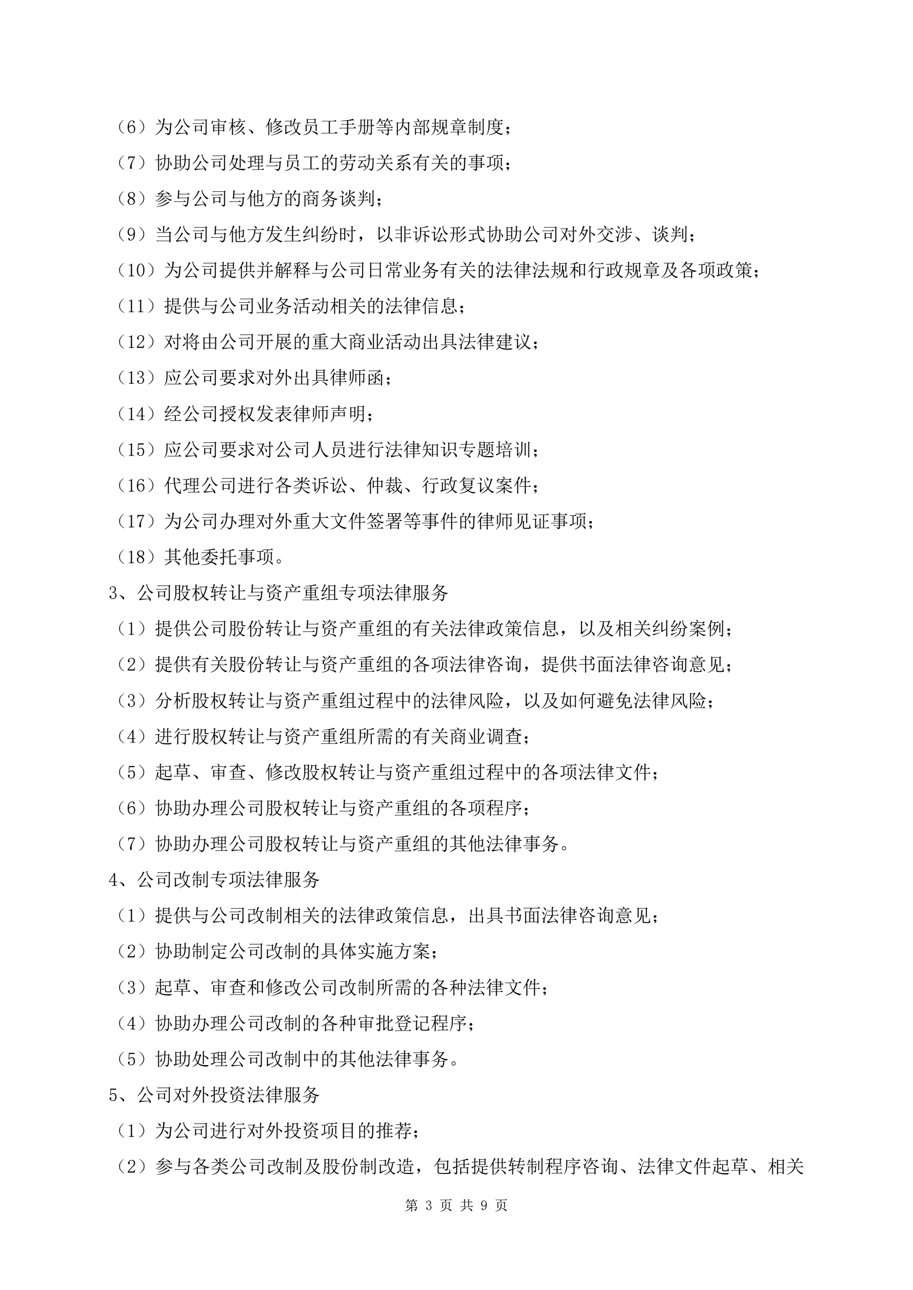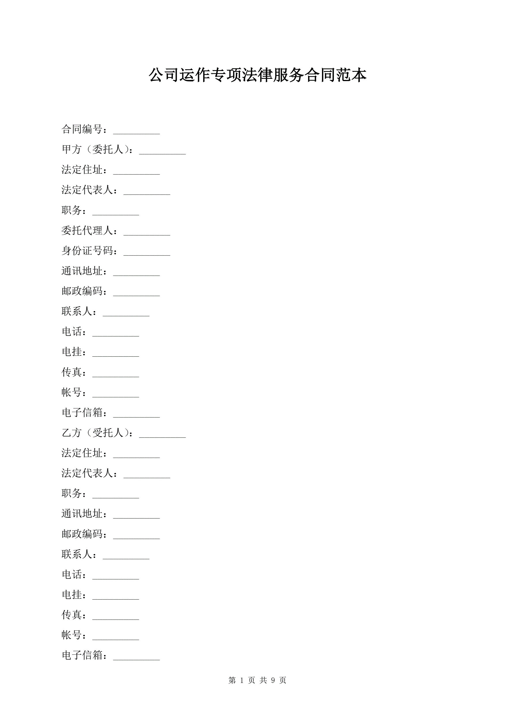 公司运作专项法律服务合同范本