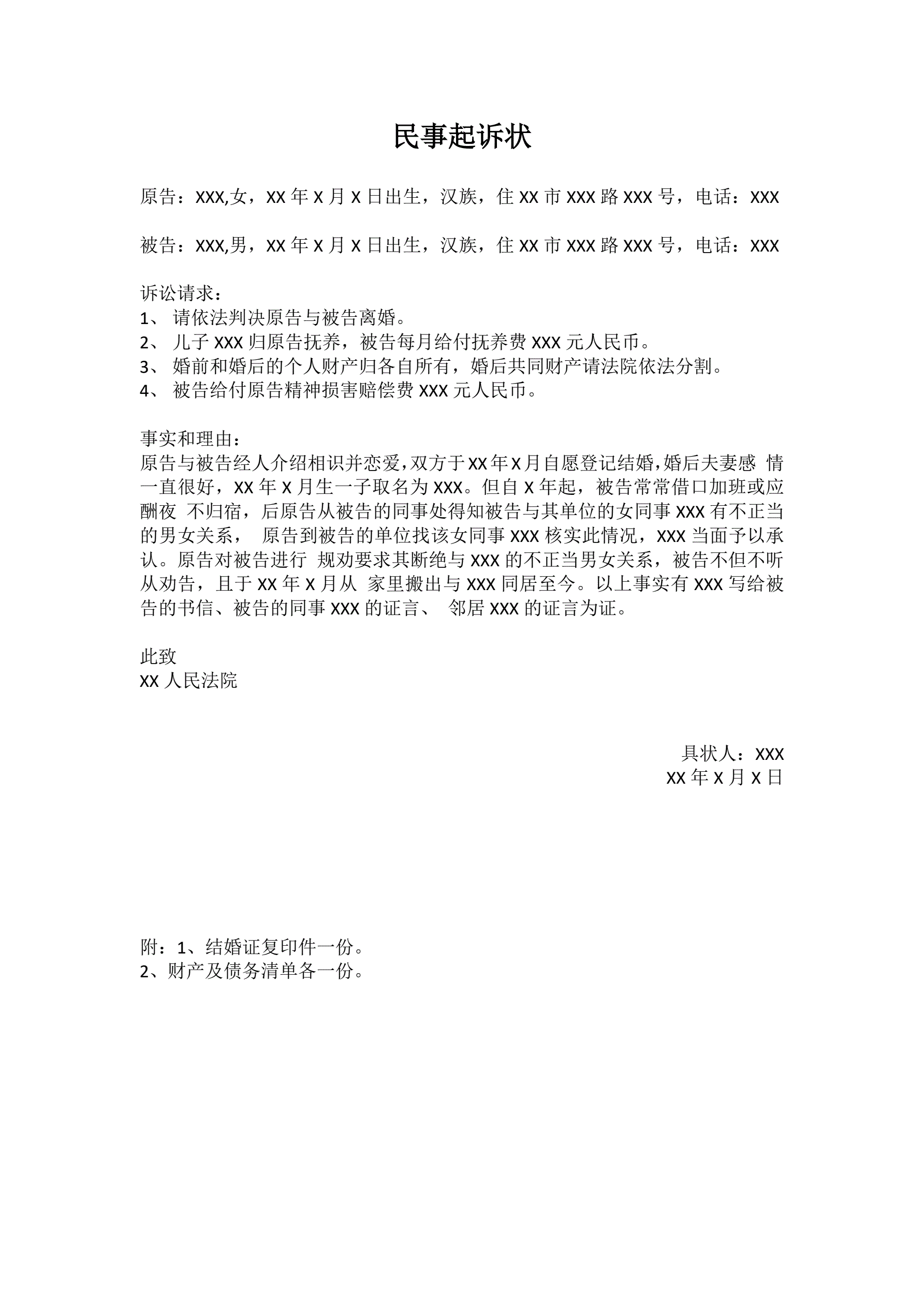 >离婚民事起诉状(审核版)