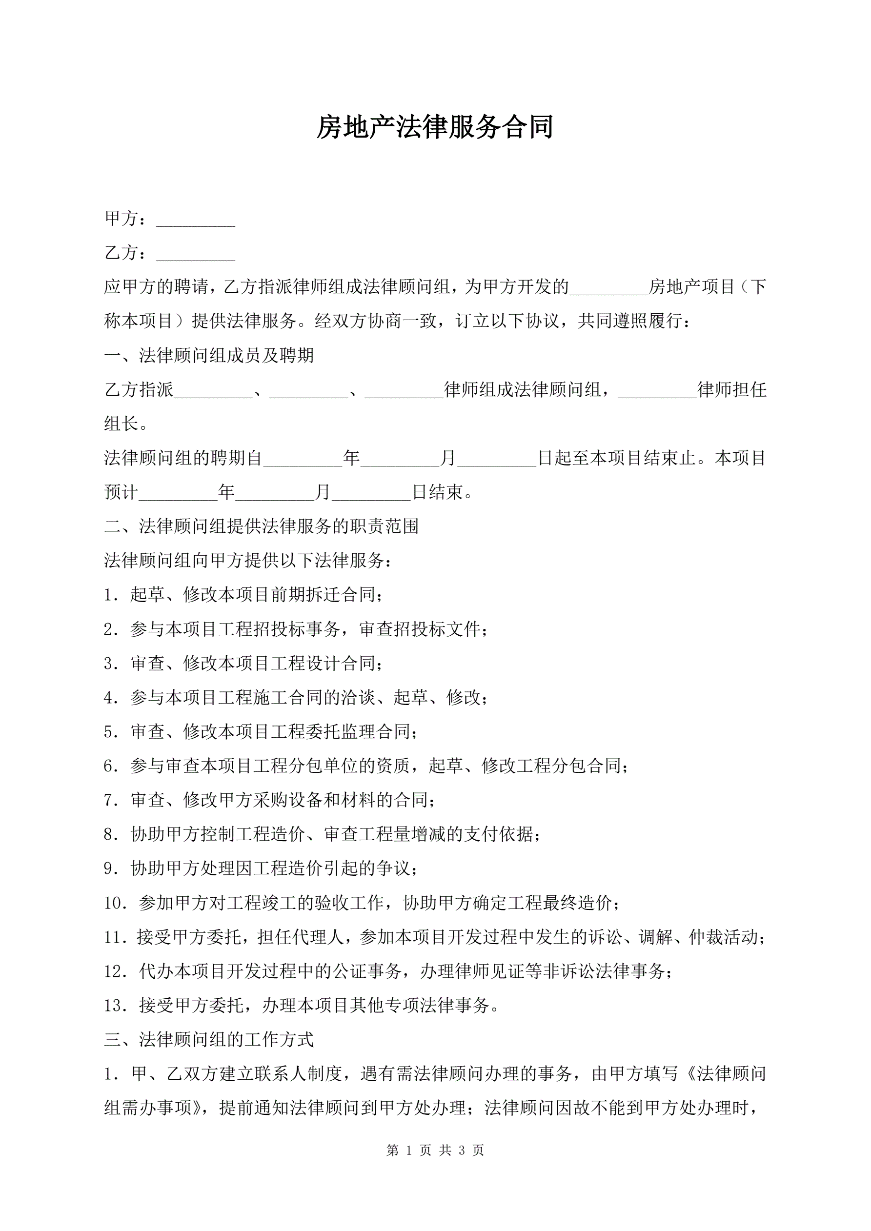 >房地产法律服务合同