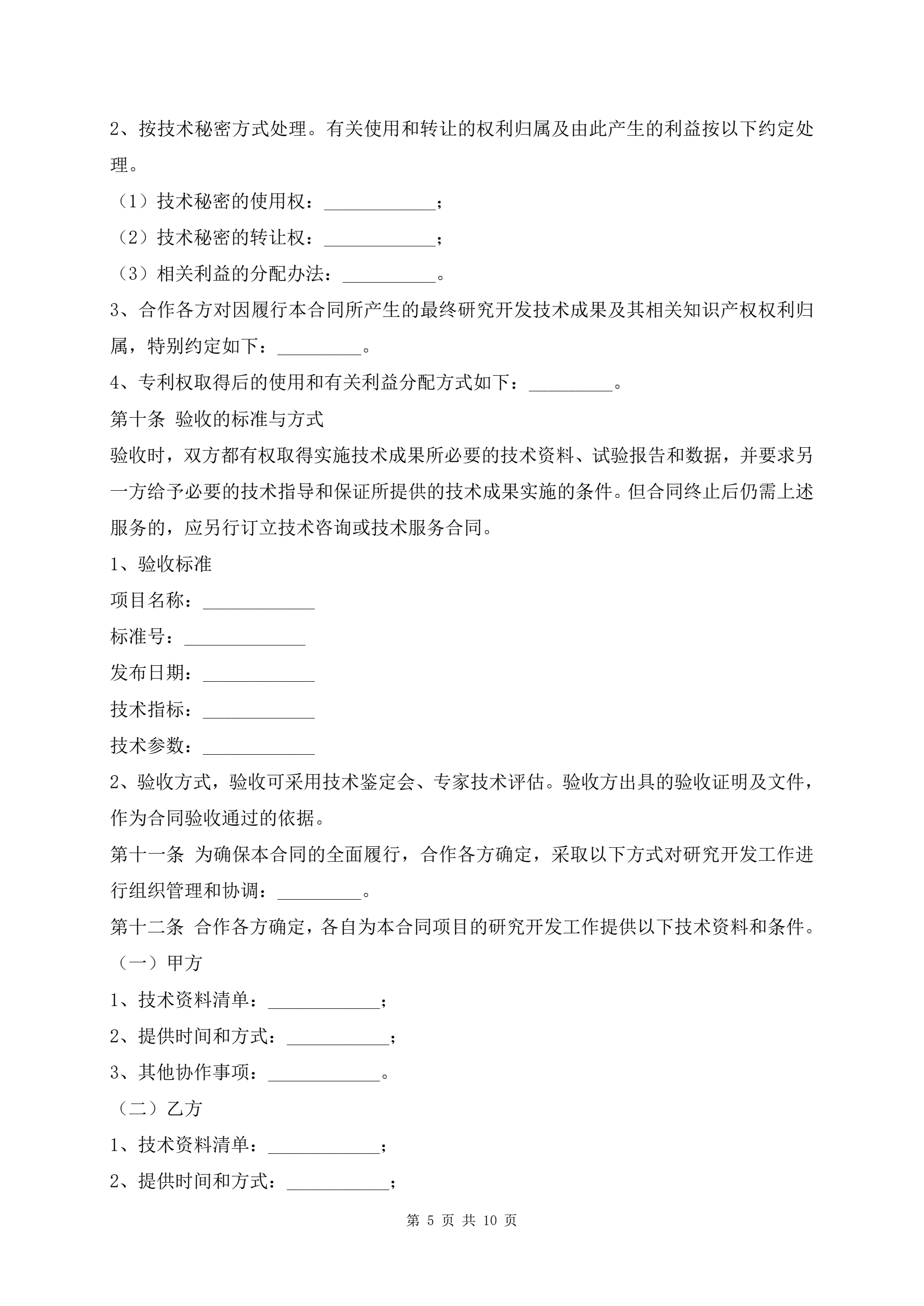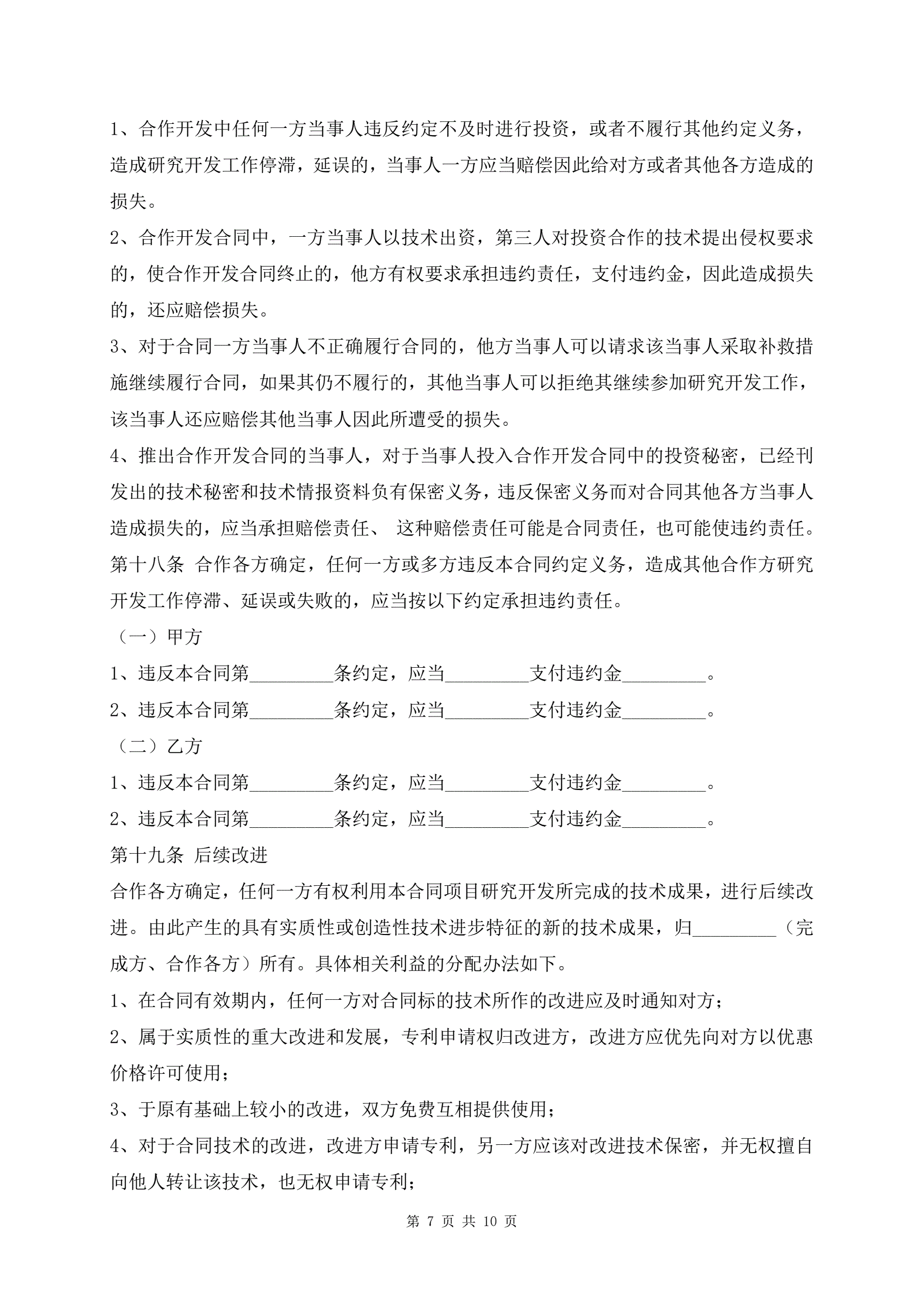 技术合作开发合同范本