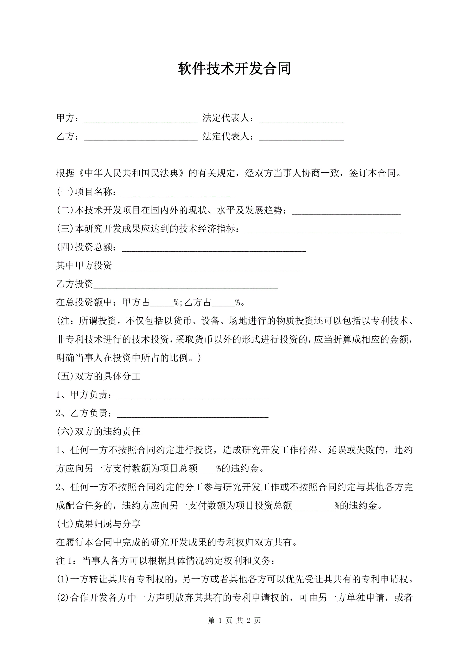 软件技术开发合同