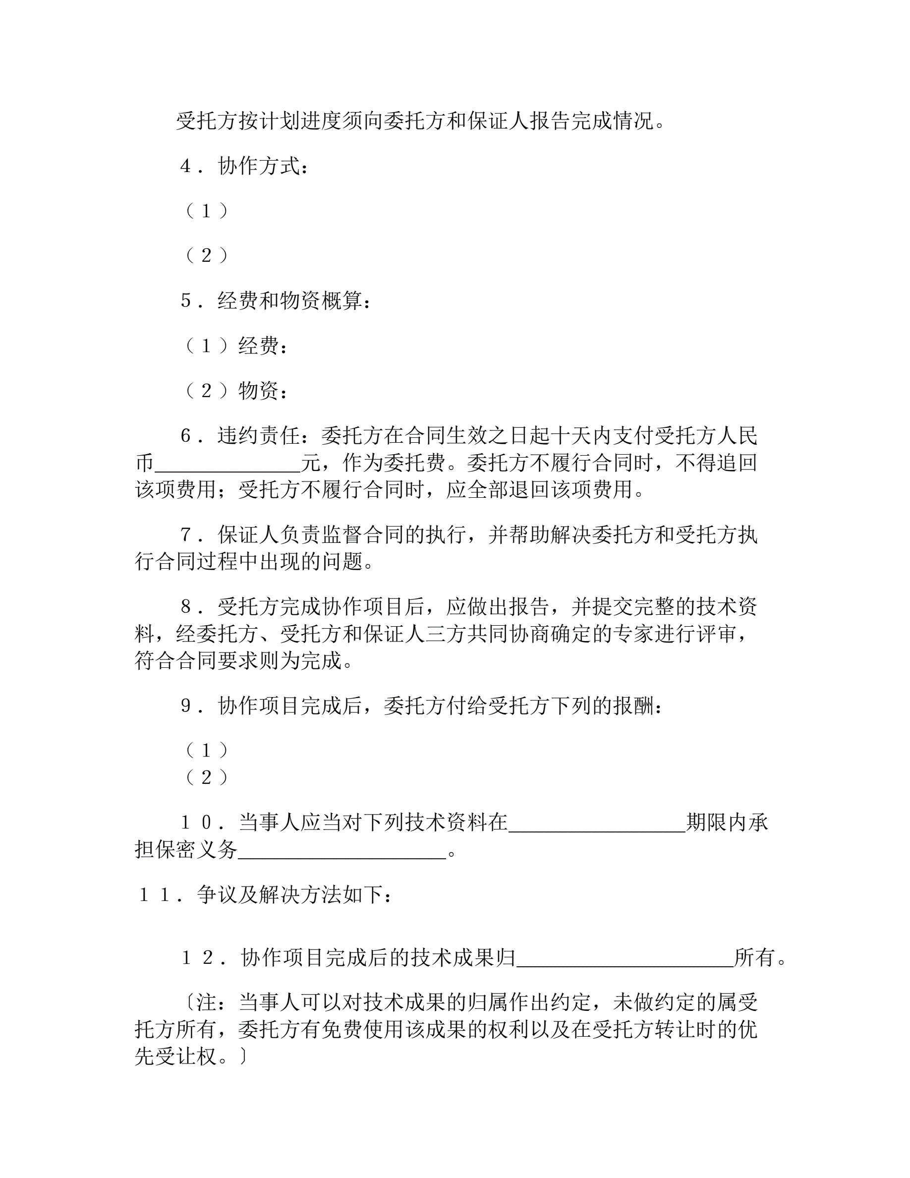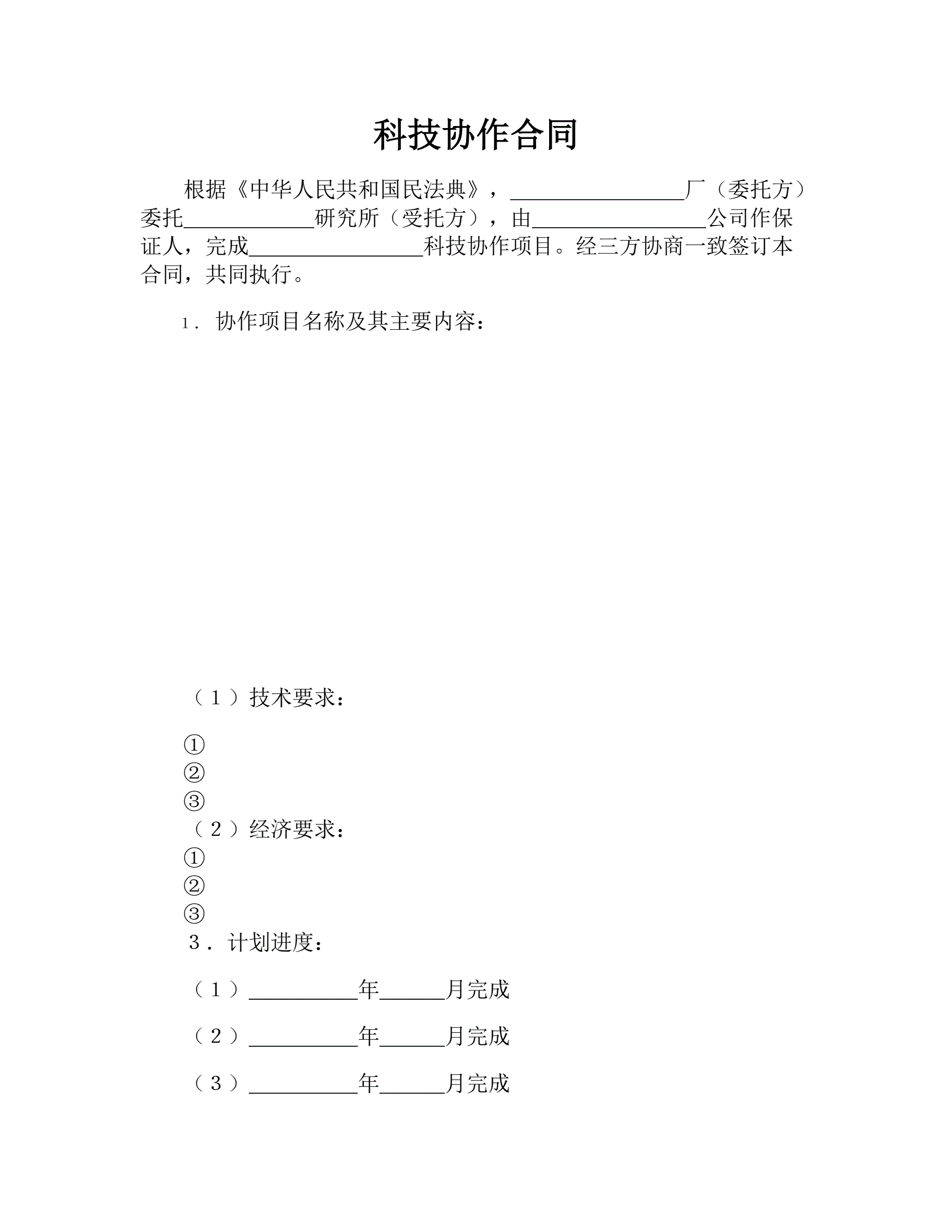 >科技协作合同