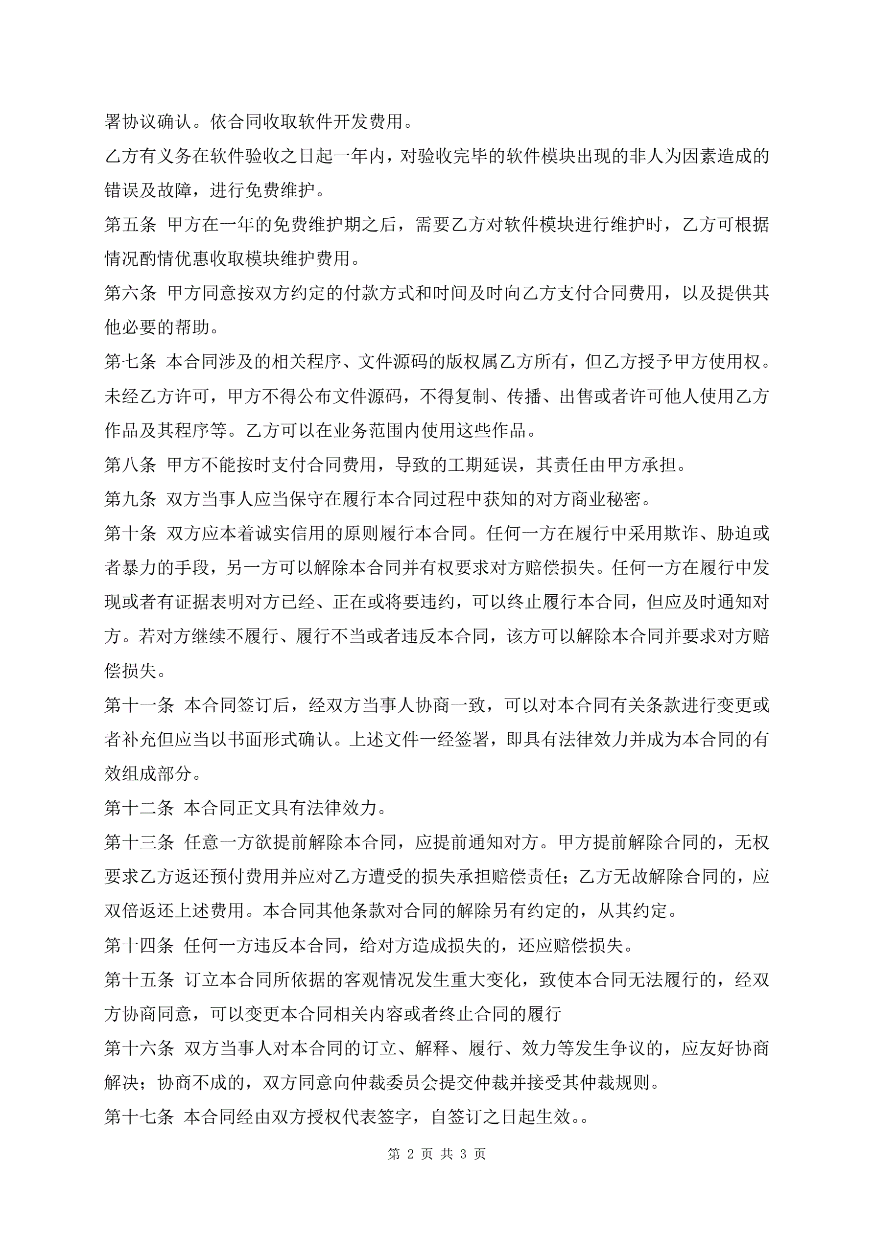 软件开发合同样本