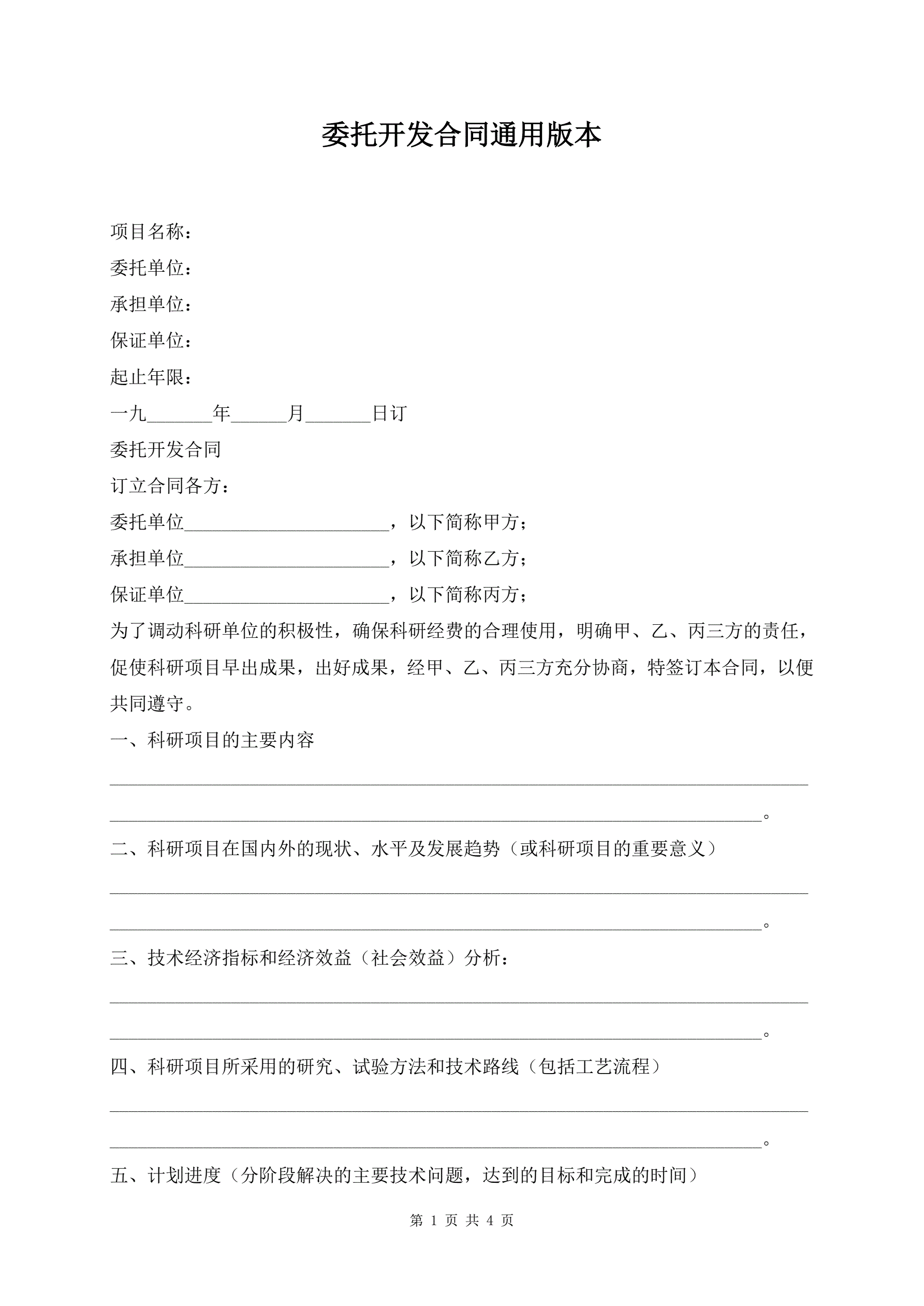 委托开发合同通用版本
