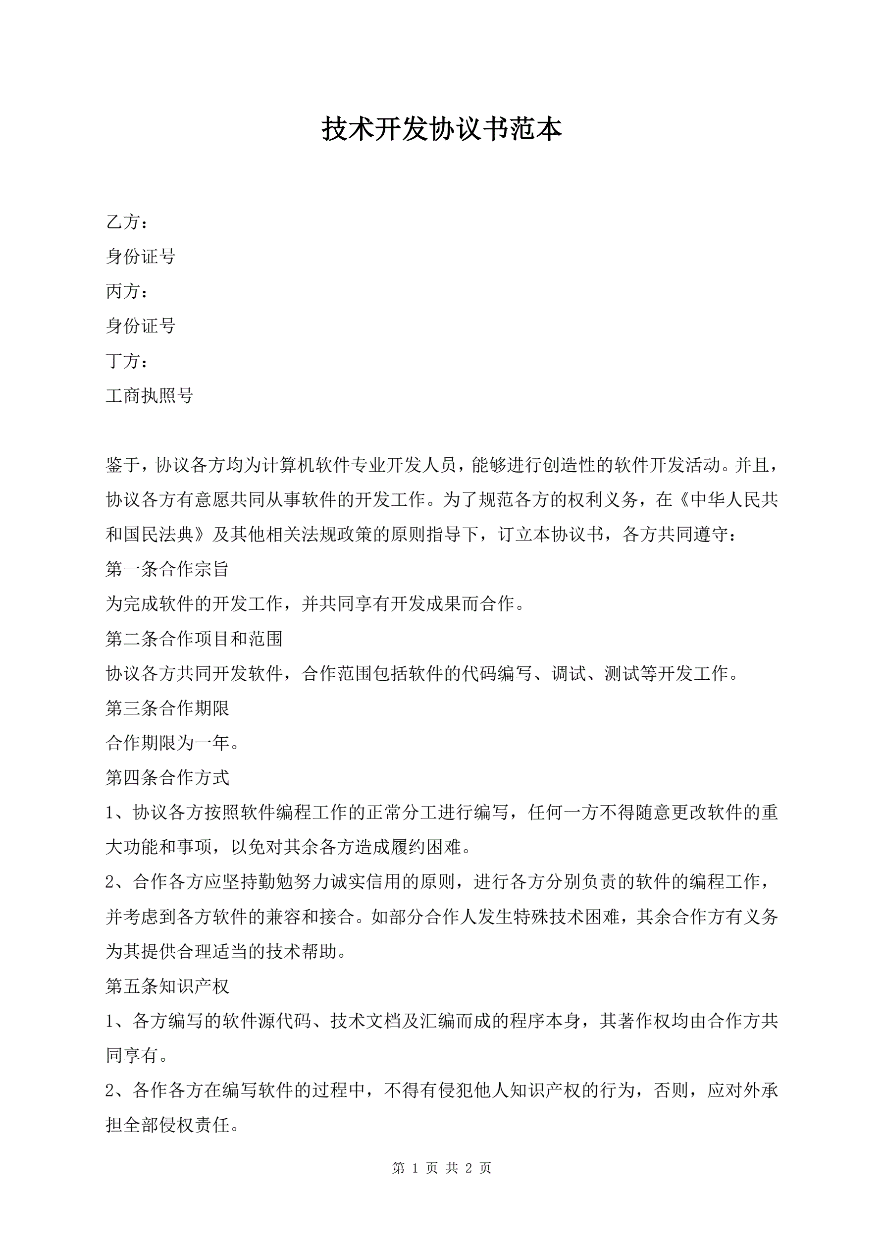 技术开发协议书范本