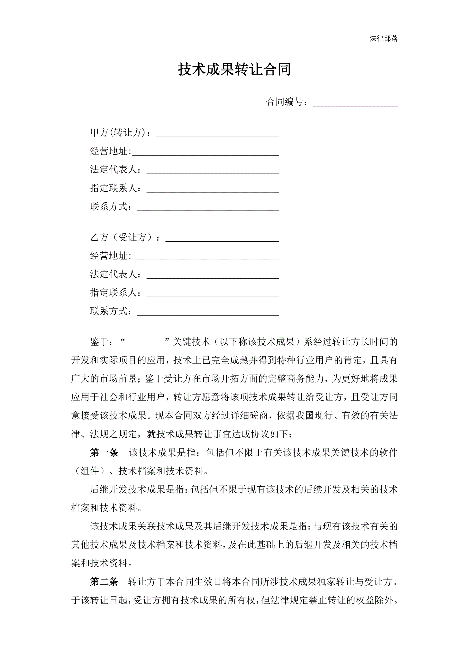 >技术成果转让合同