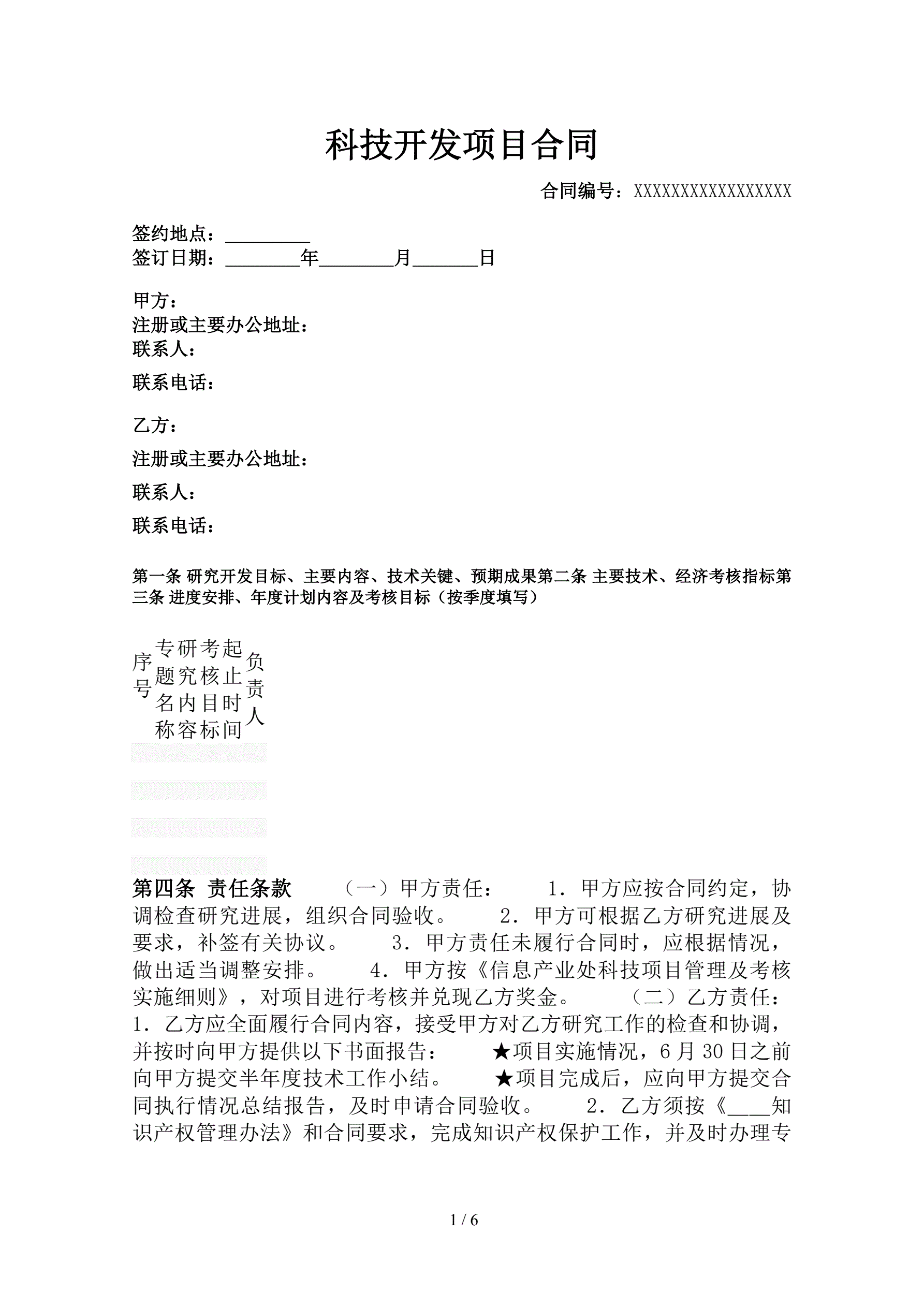 >科技开发项目合同