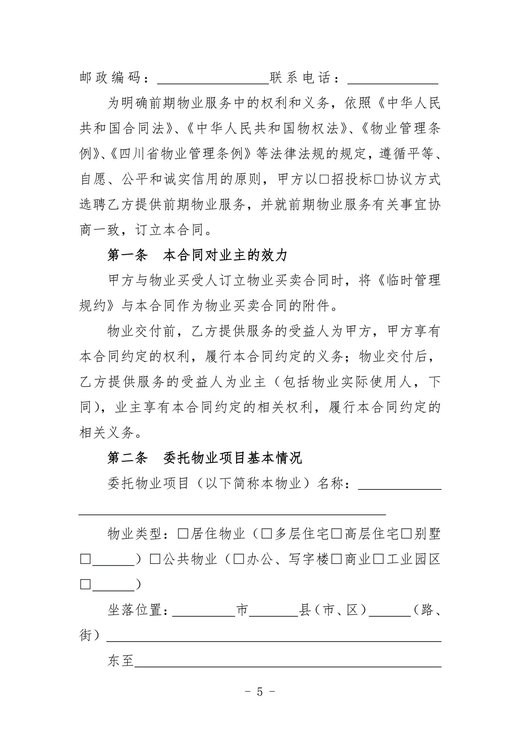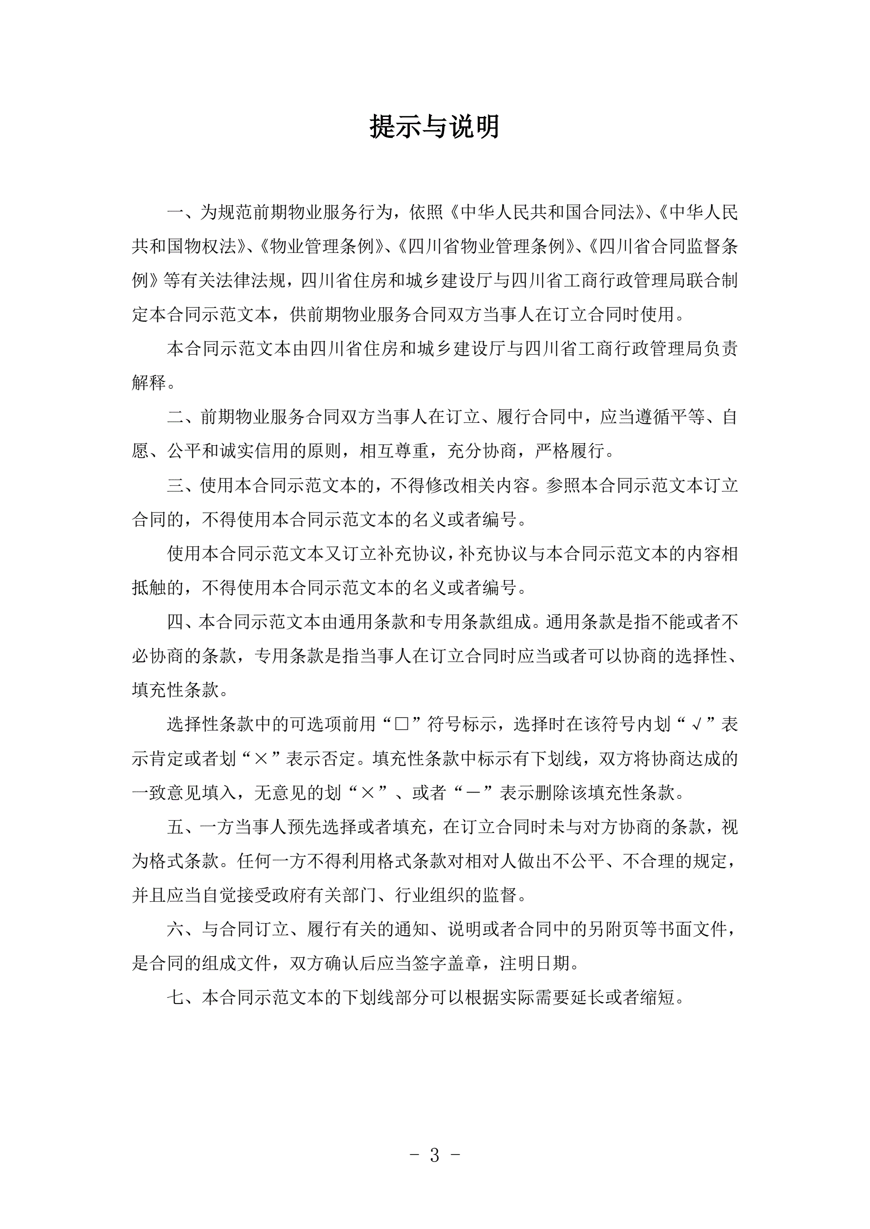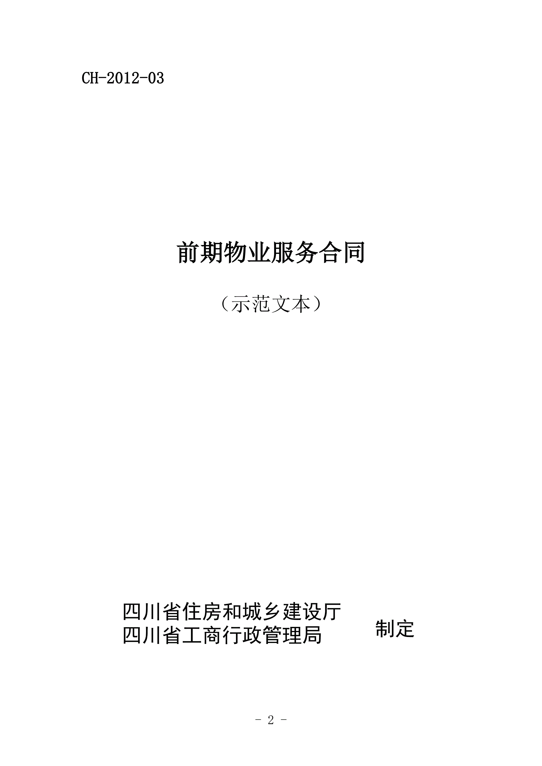 >前期物业服务合同(示范文本)(CH-2012-03)