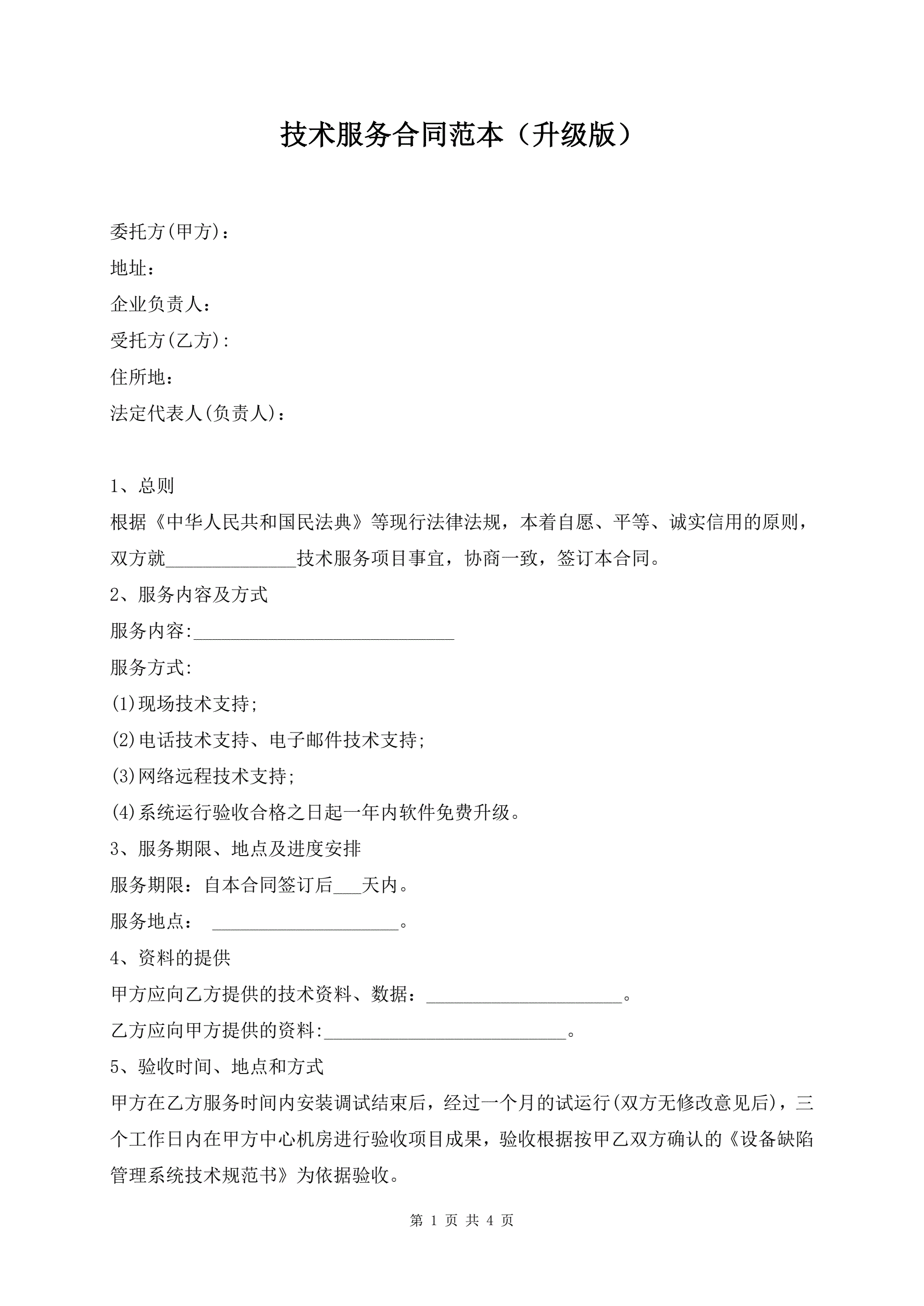 技术服务合同范本(升级版)
