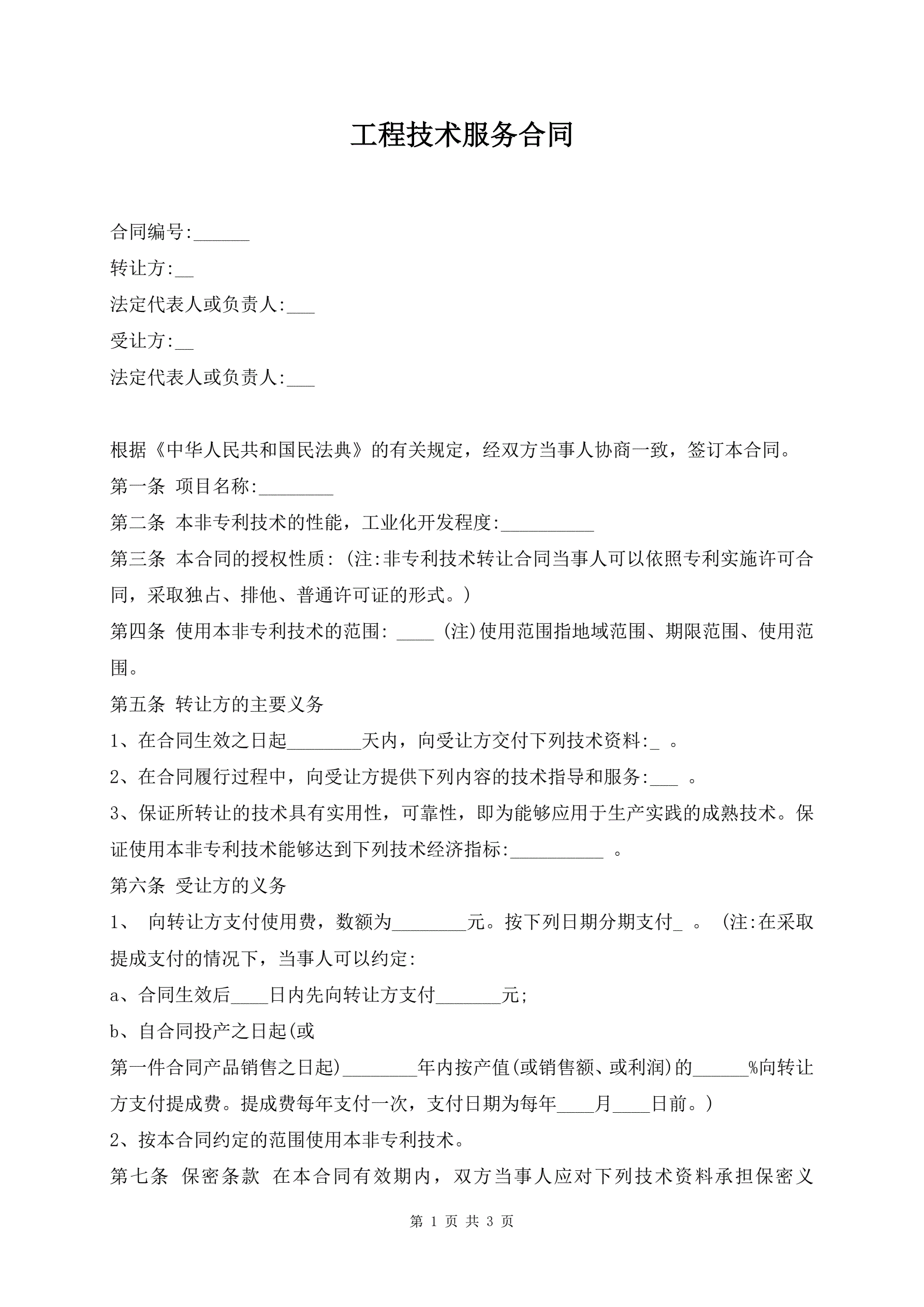 >工程技术服务合同