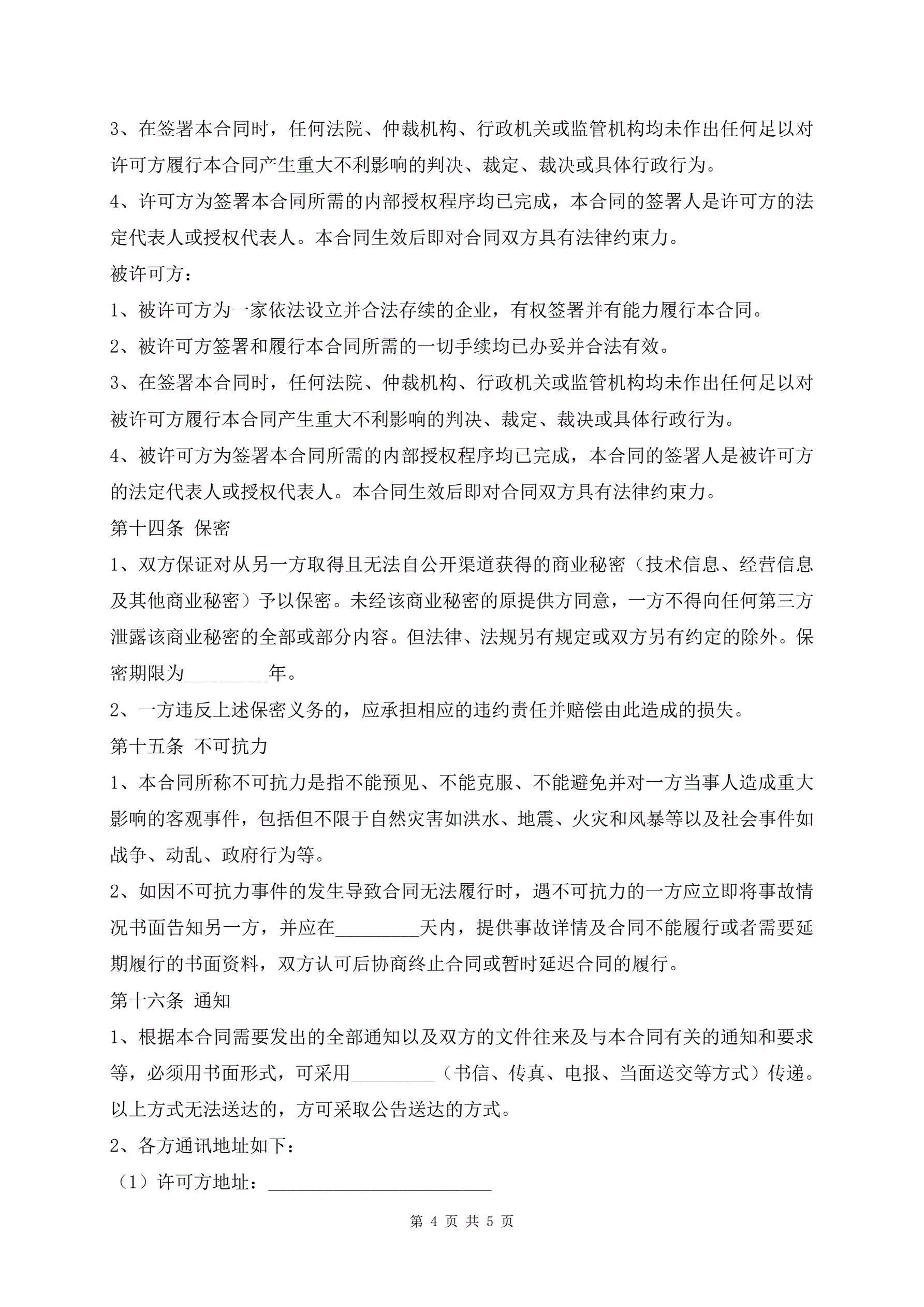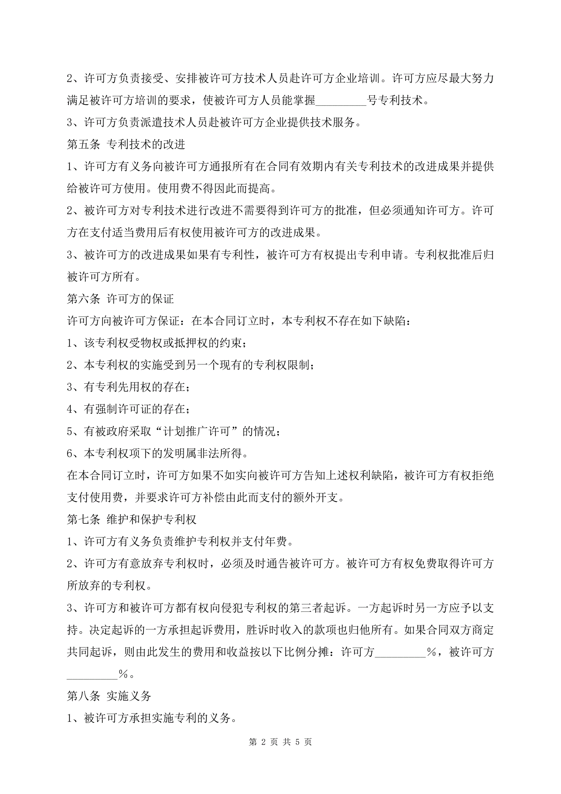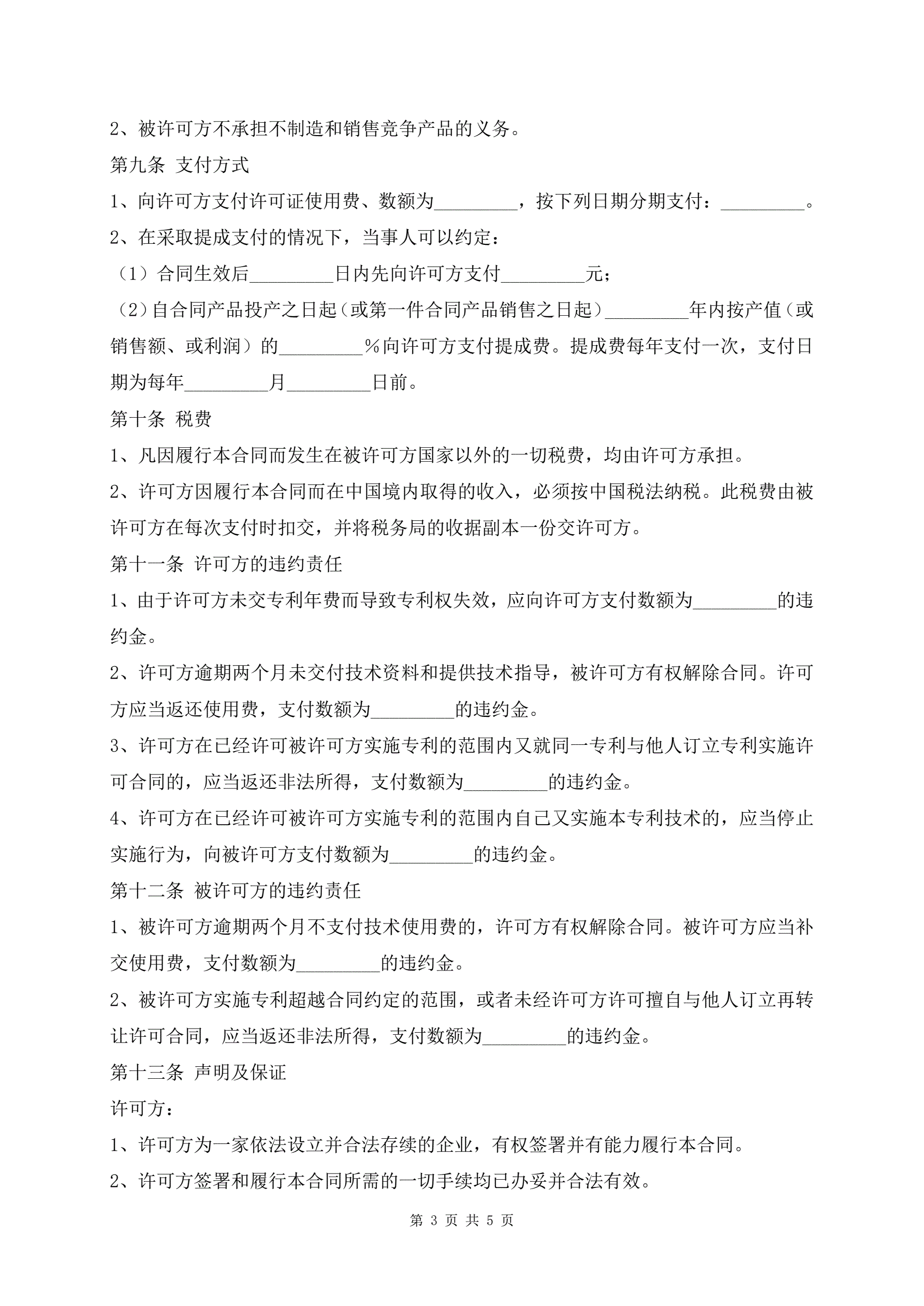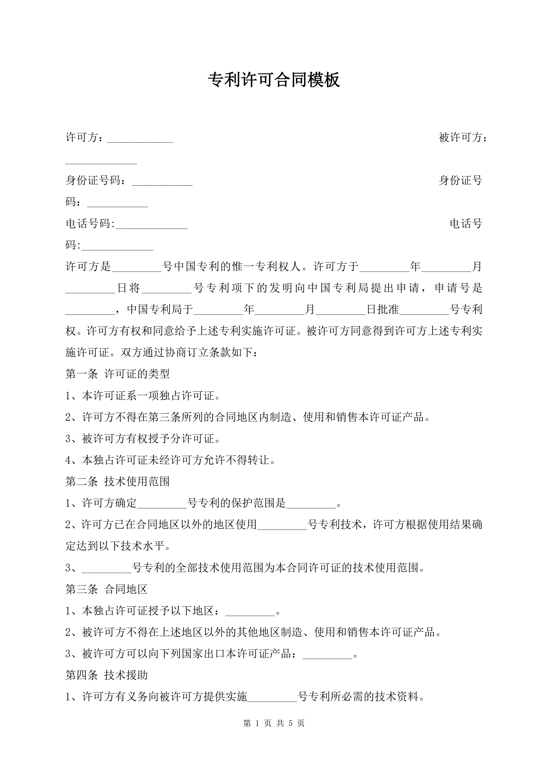 专利许可合同模板
