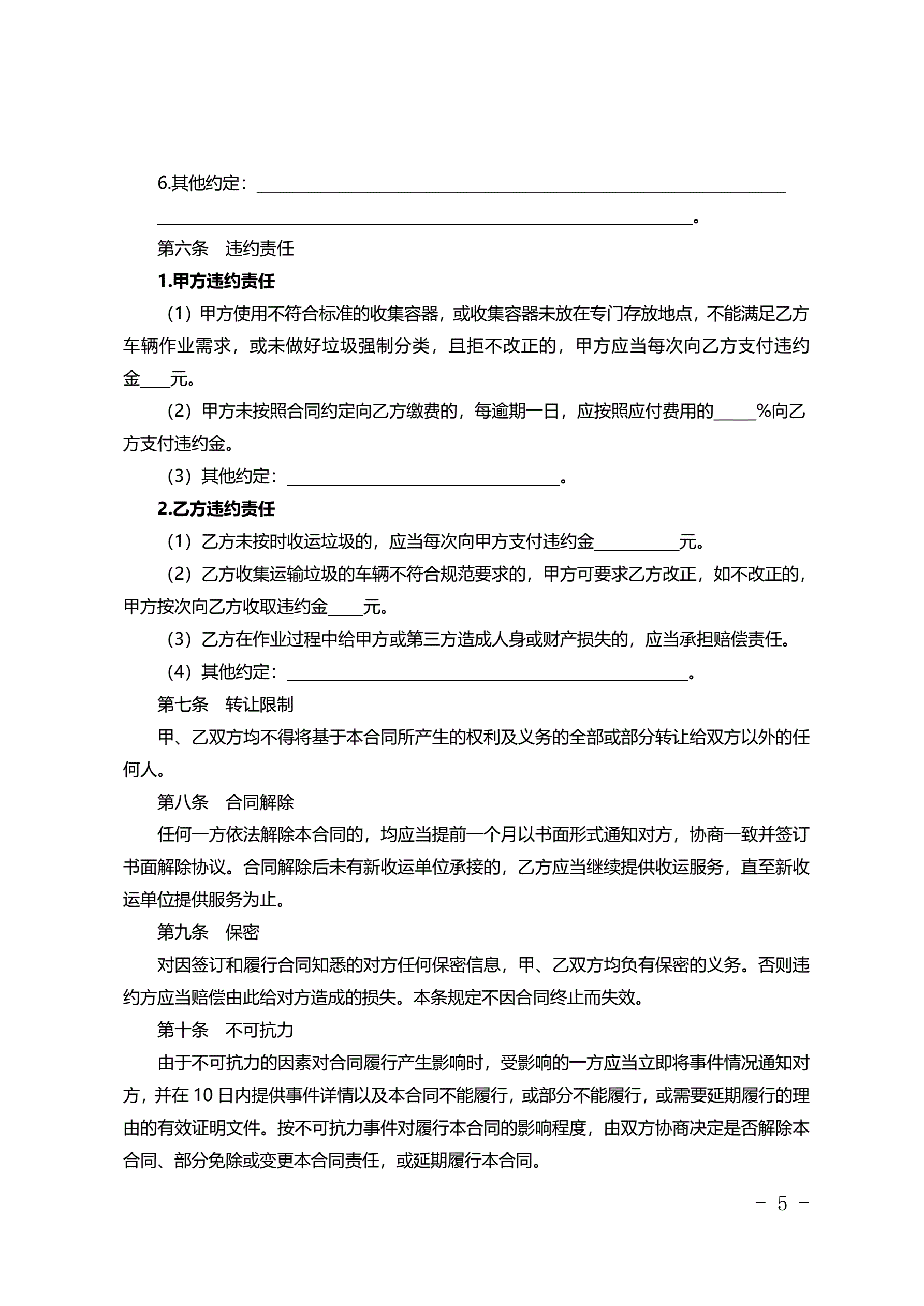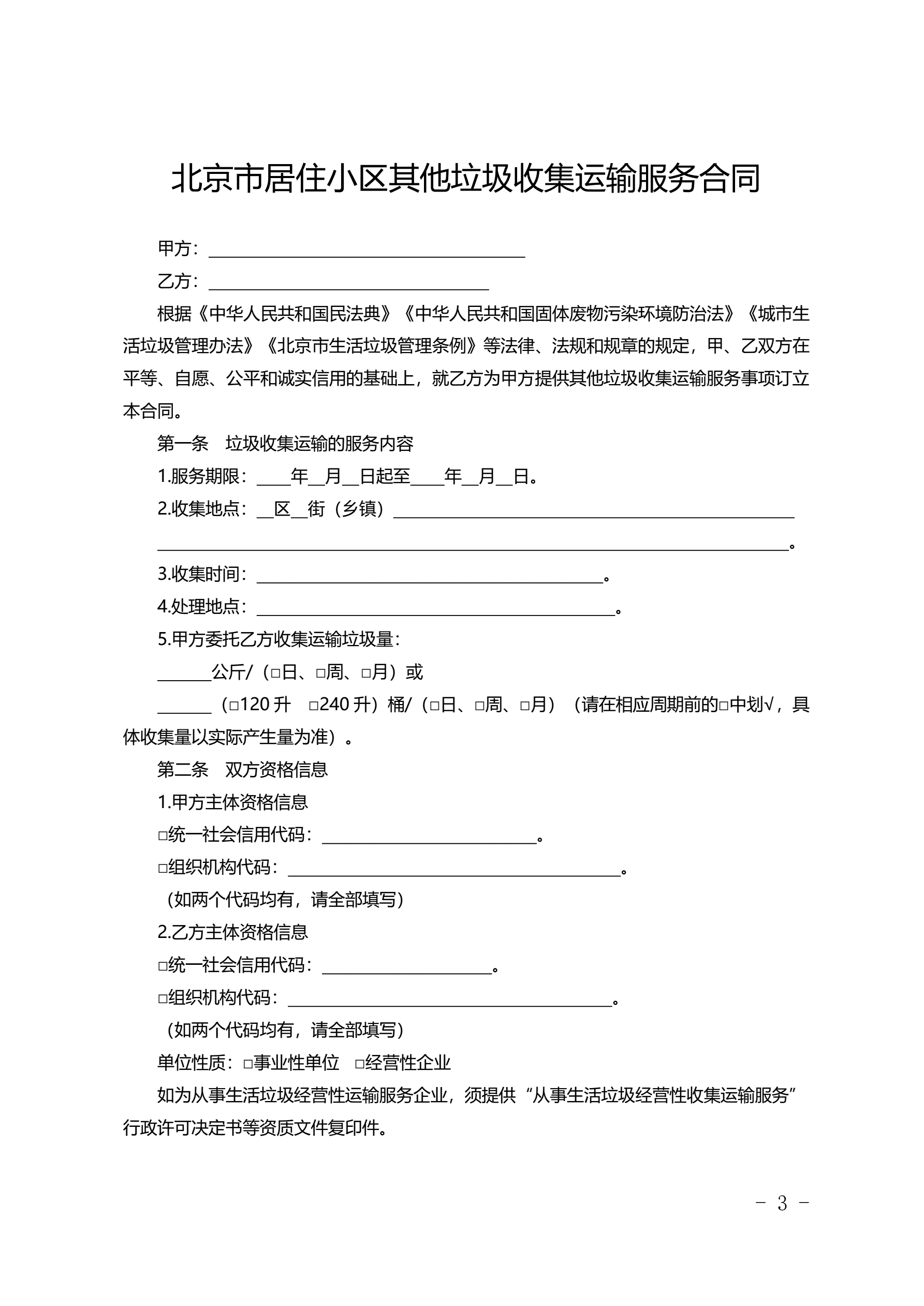 合同名称:北京市居住小区其他垃圾收集运输服务合同