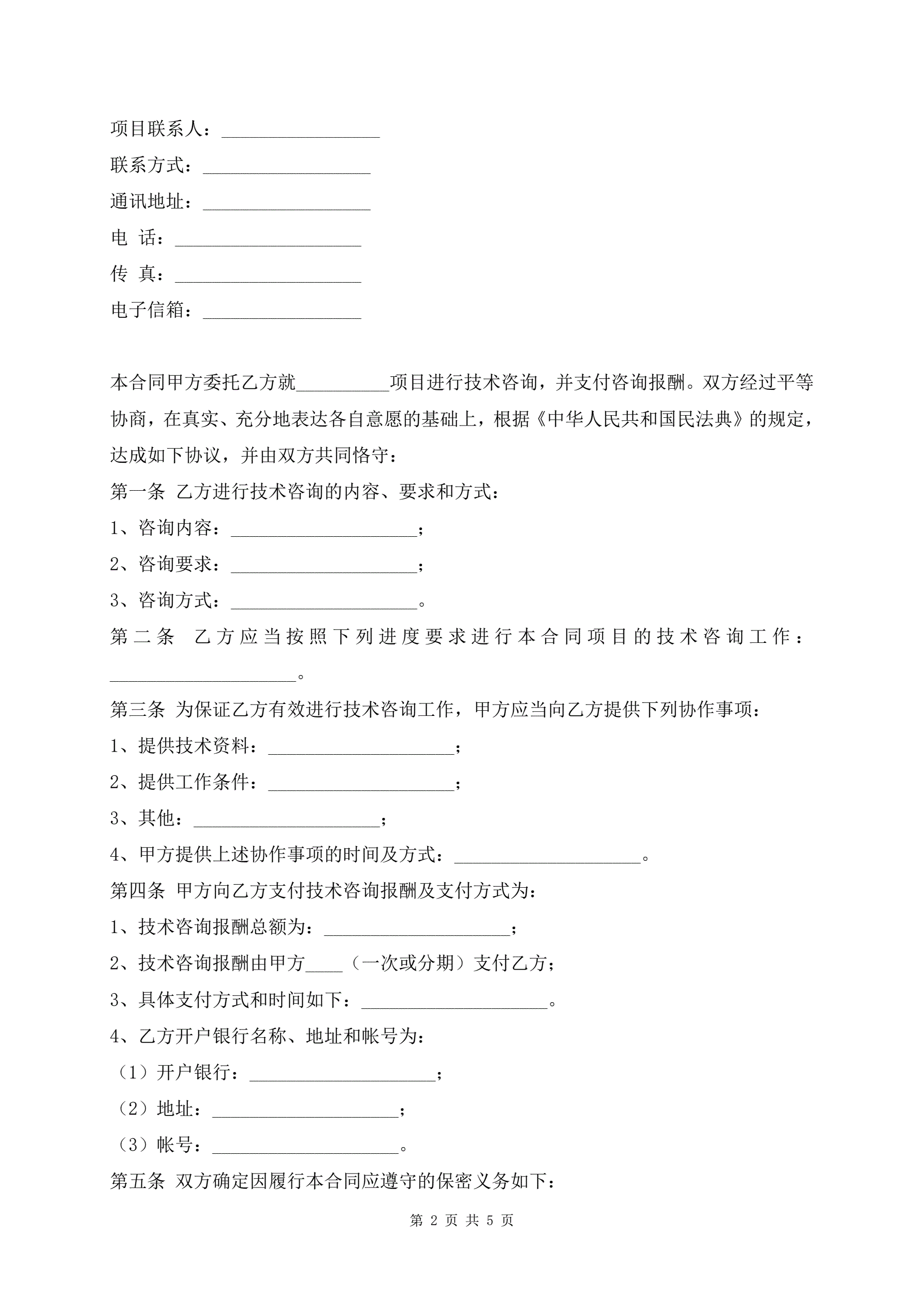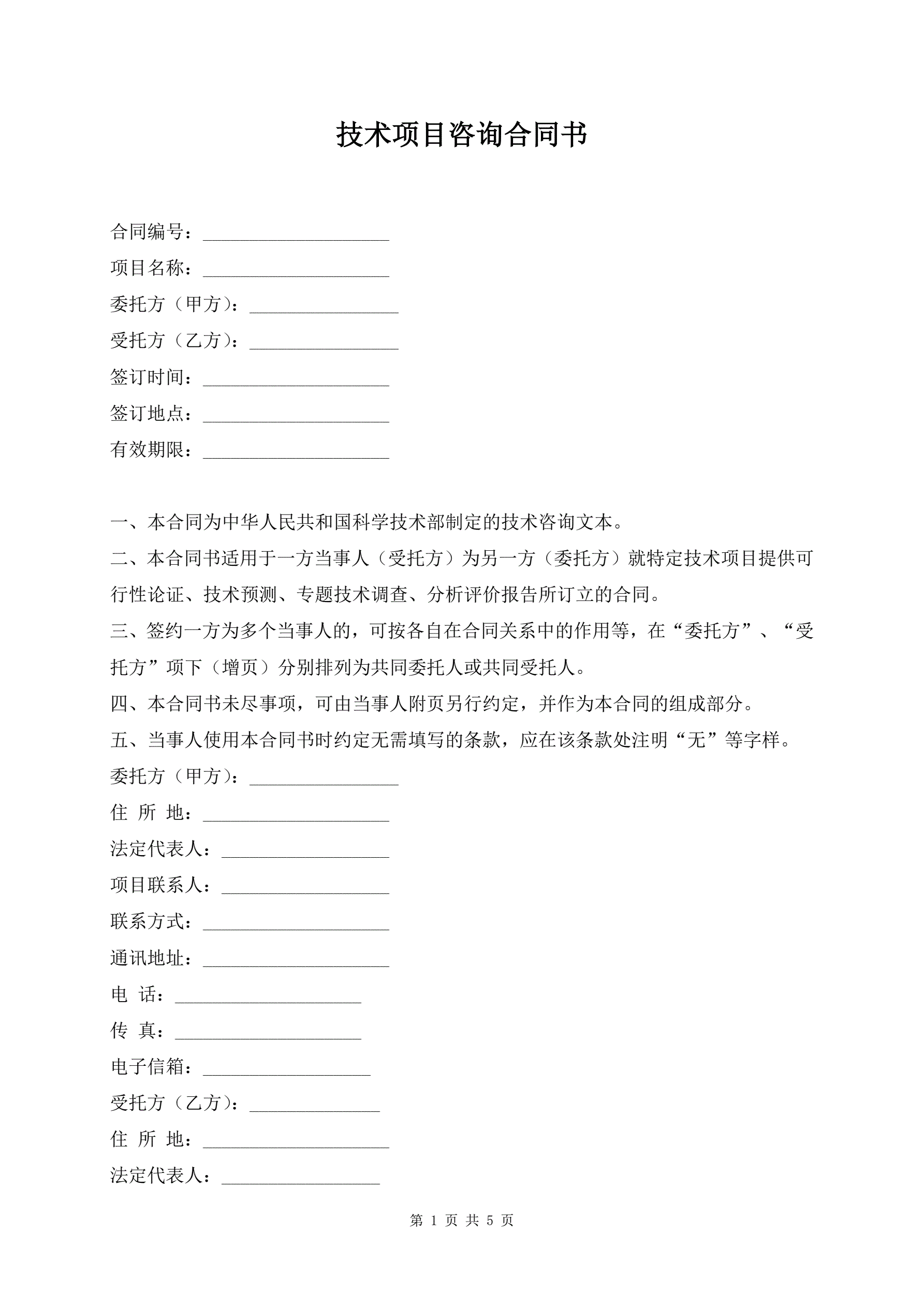 技术项目咨询合同书