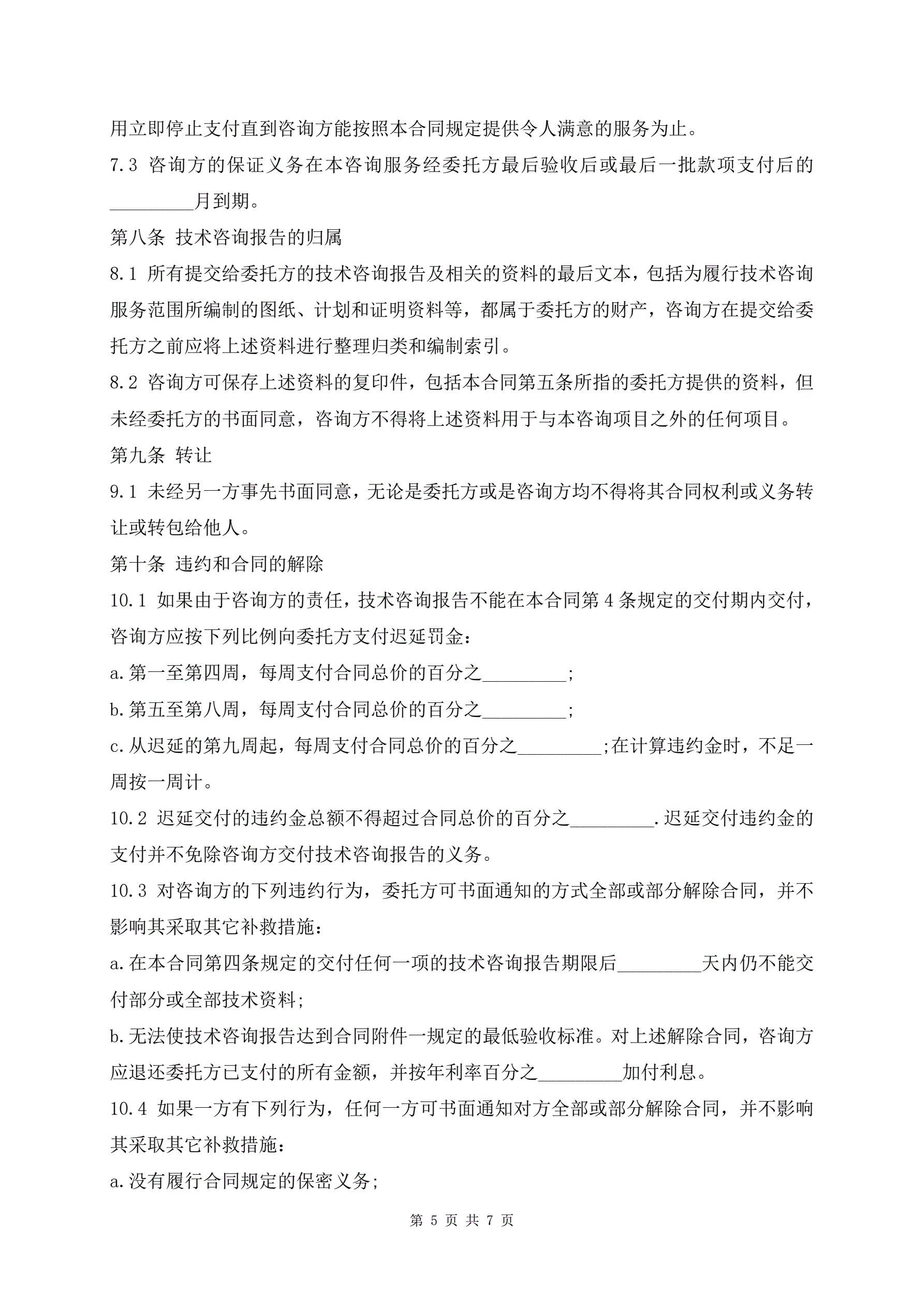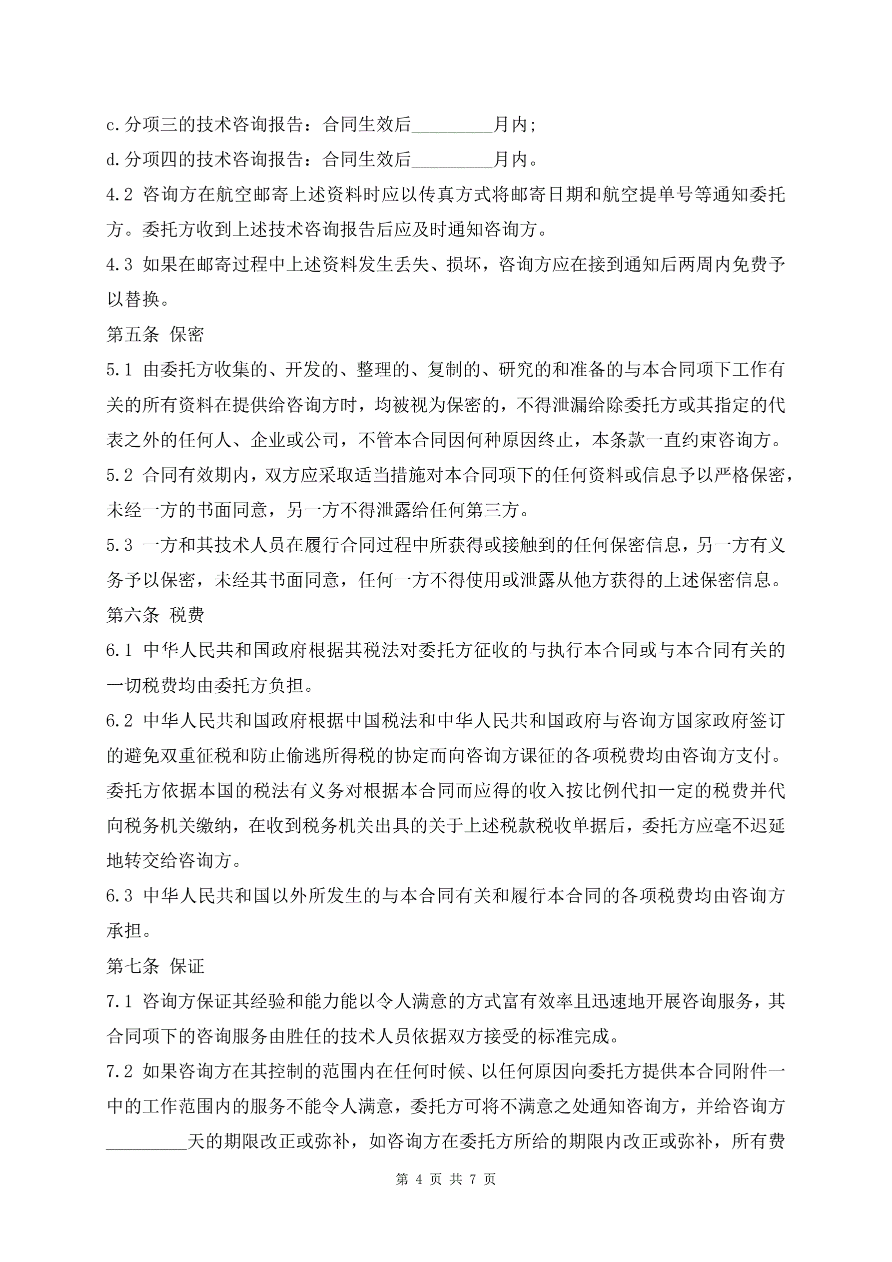 >技术咨询协议范本