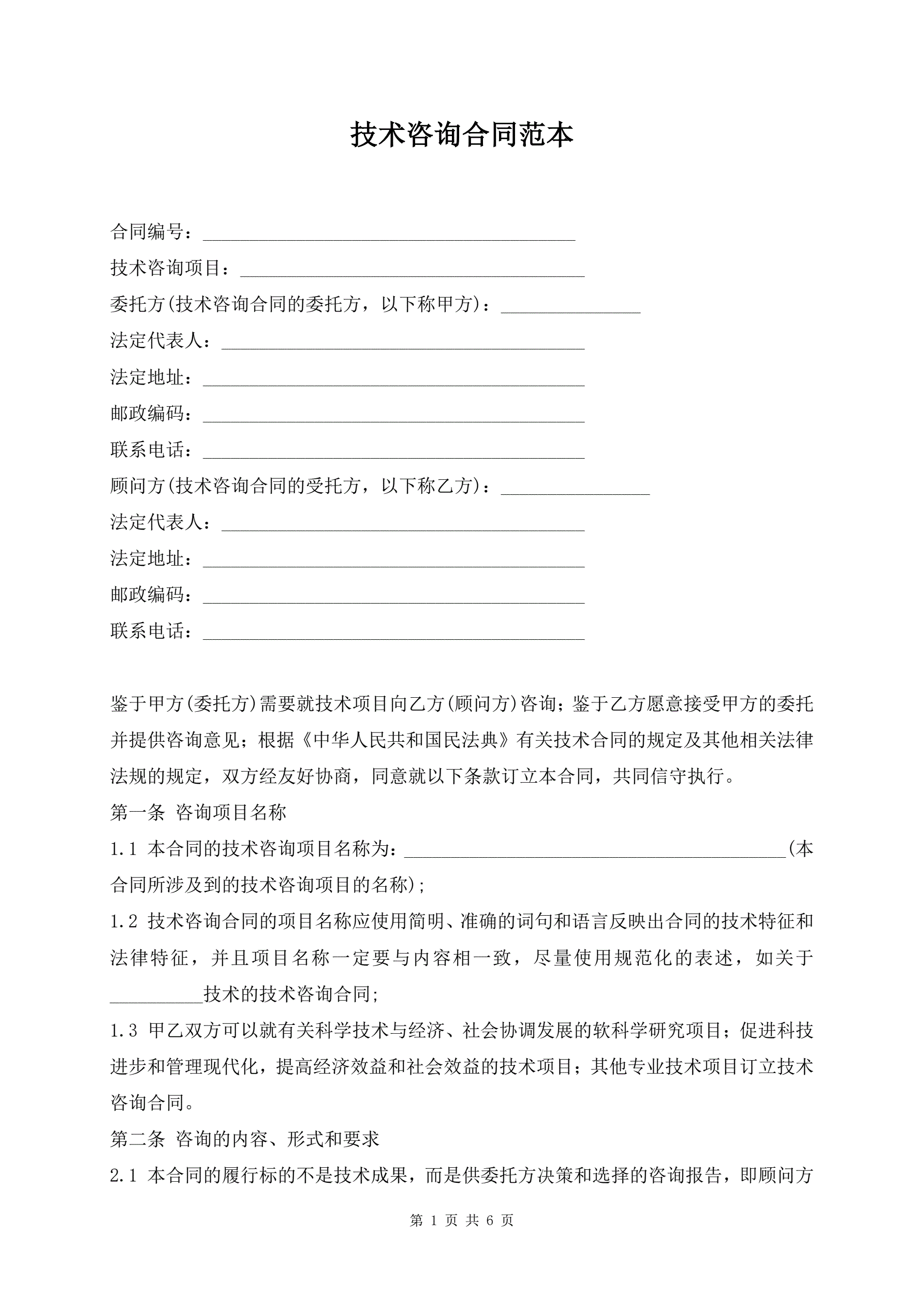 技术咨询合同范本