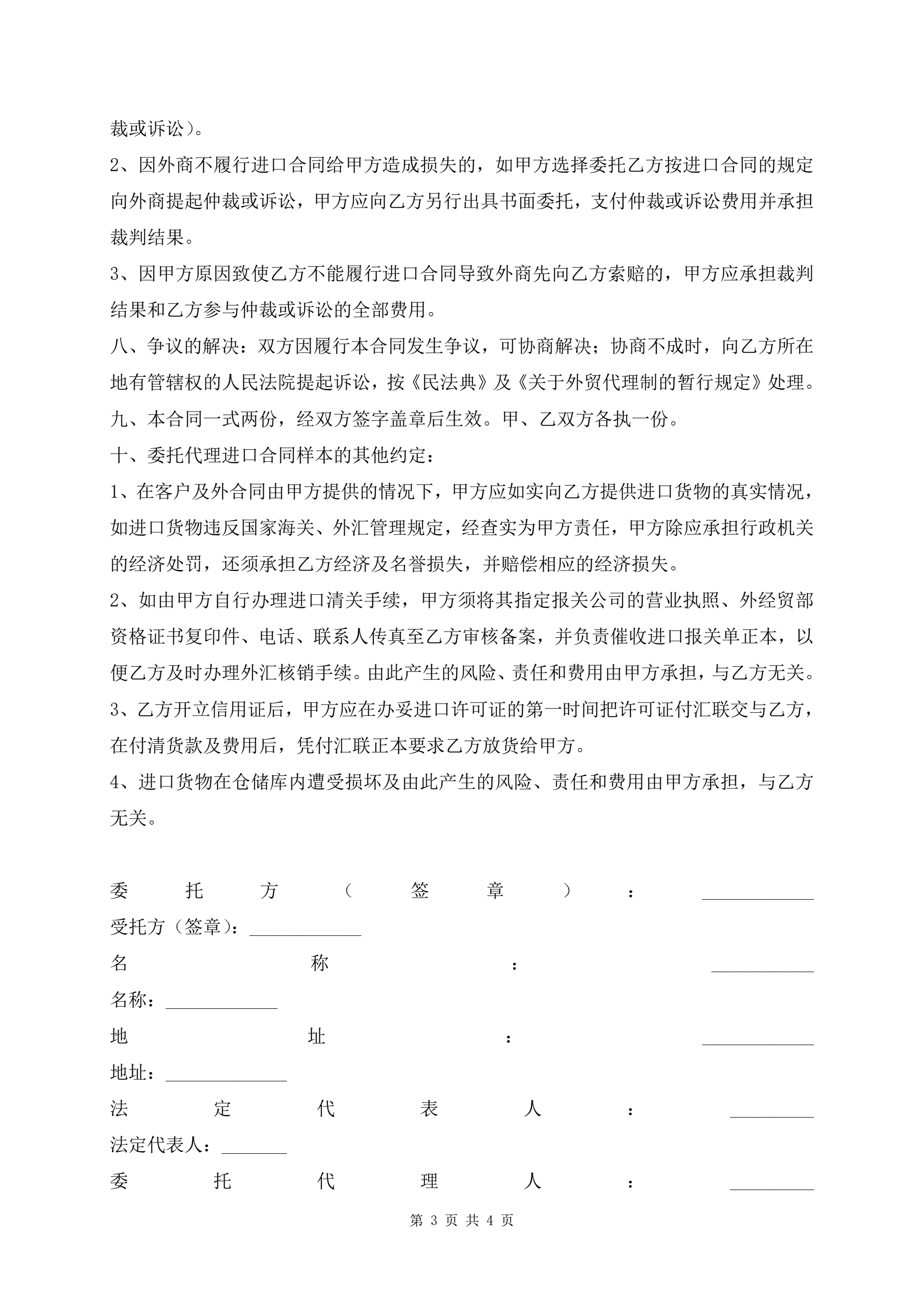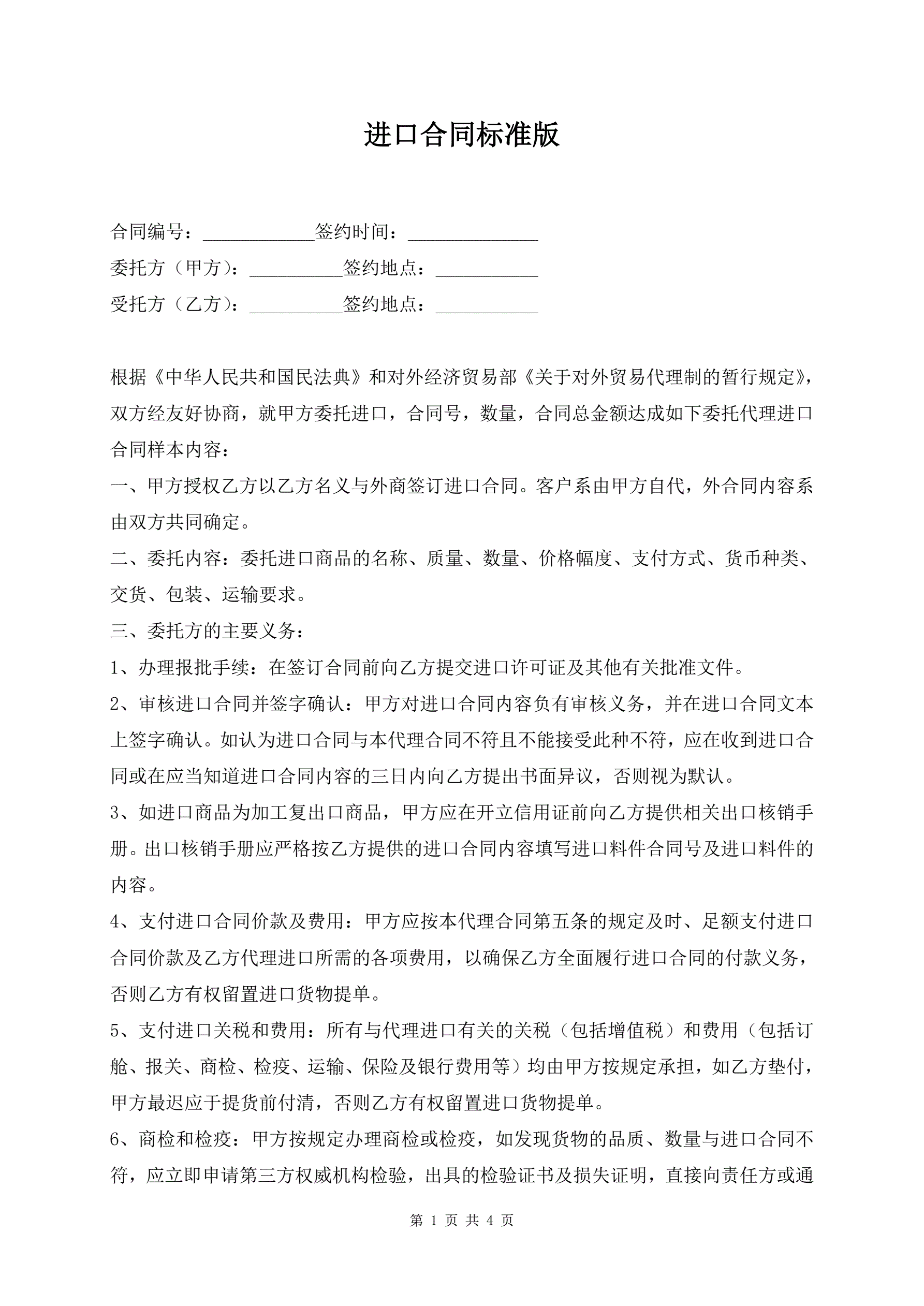 进口合同标准版