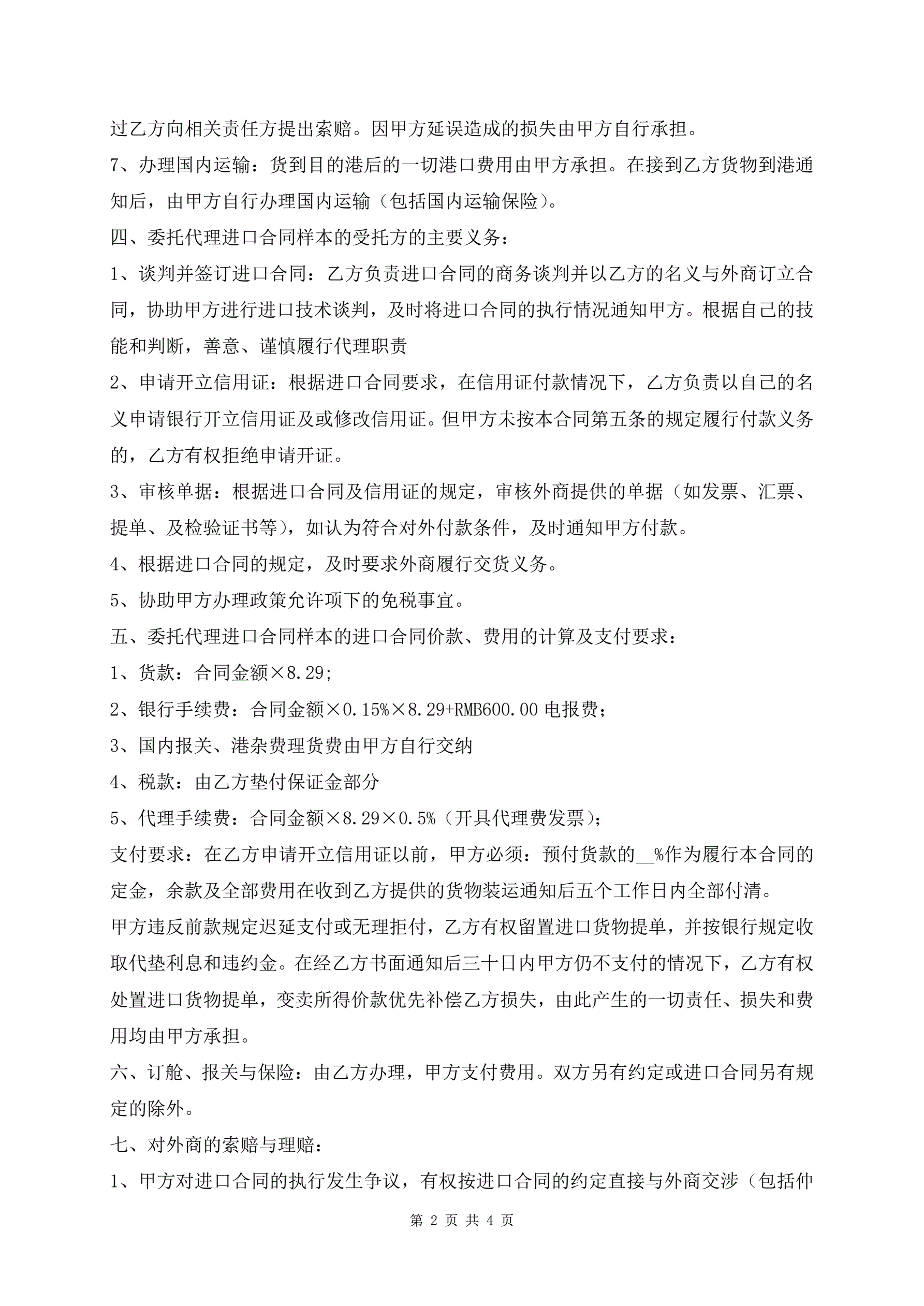 >进口合同标准版