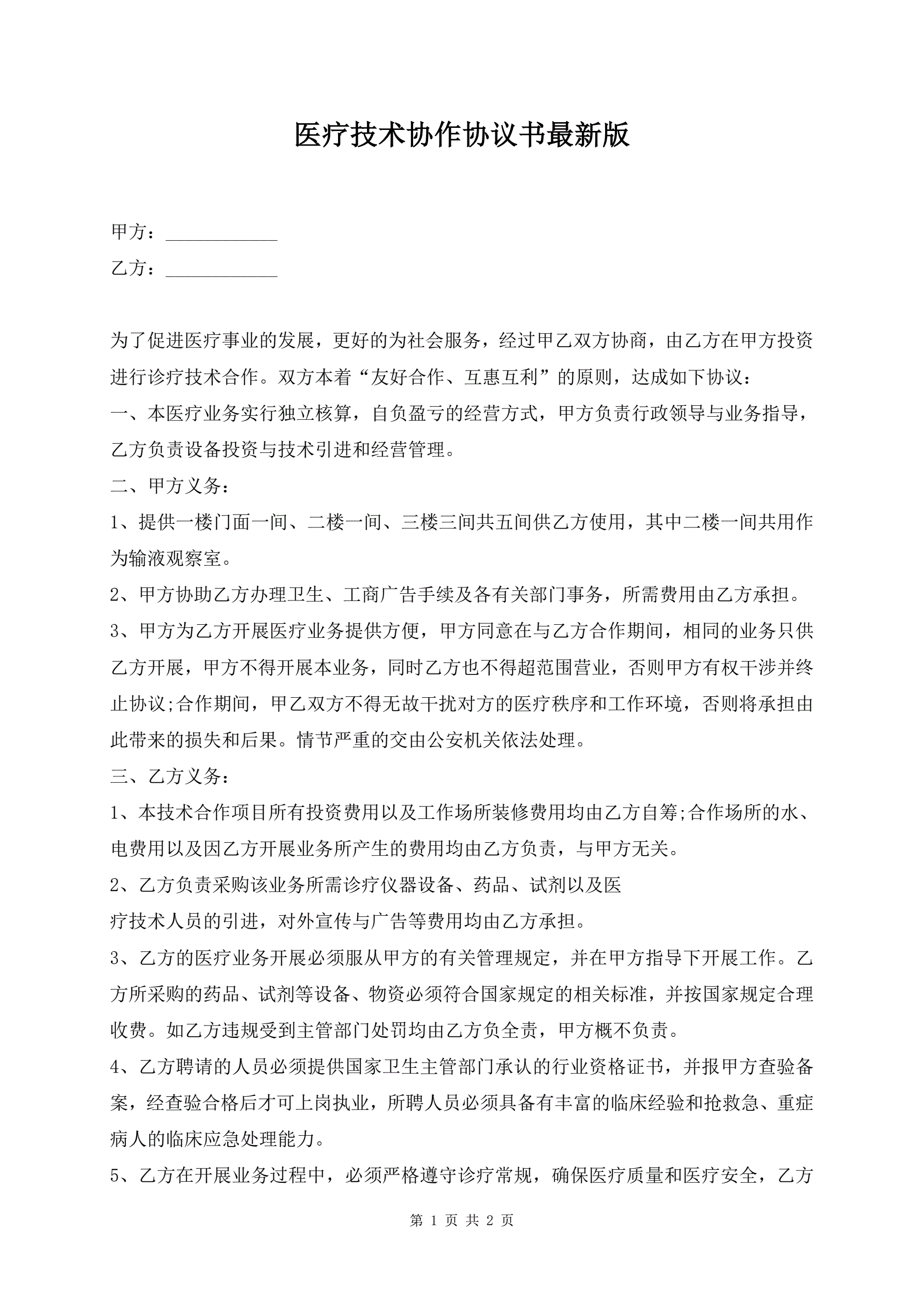 >医疗技术协作协议书最新版