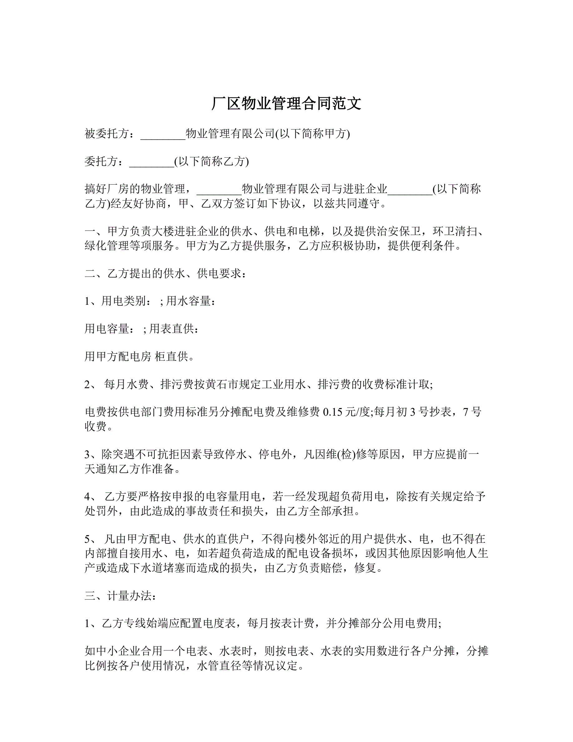 厂区物业管理合同范文