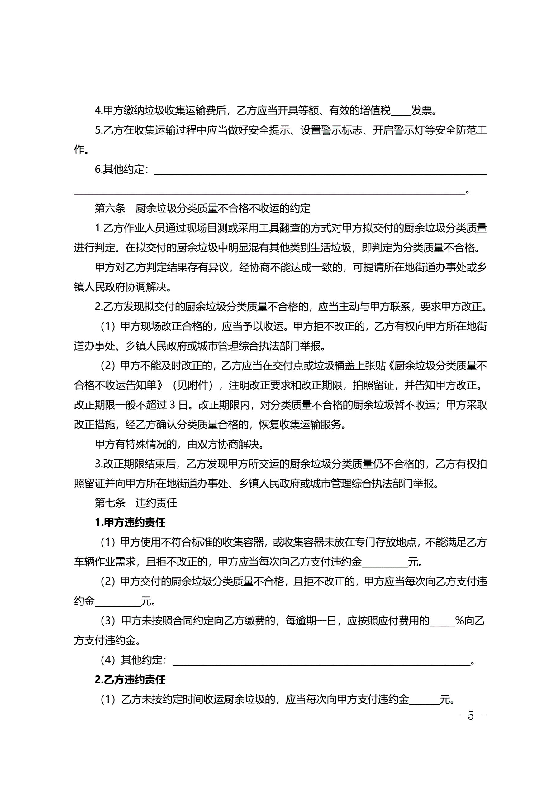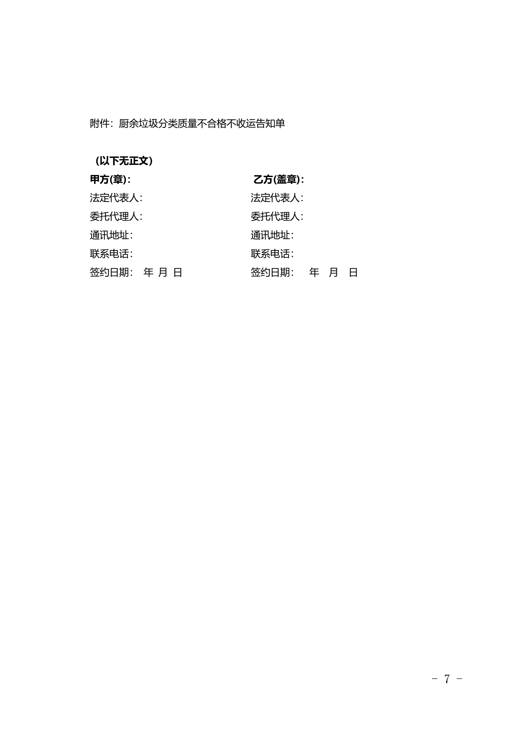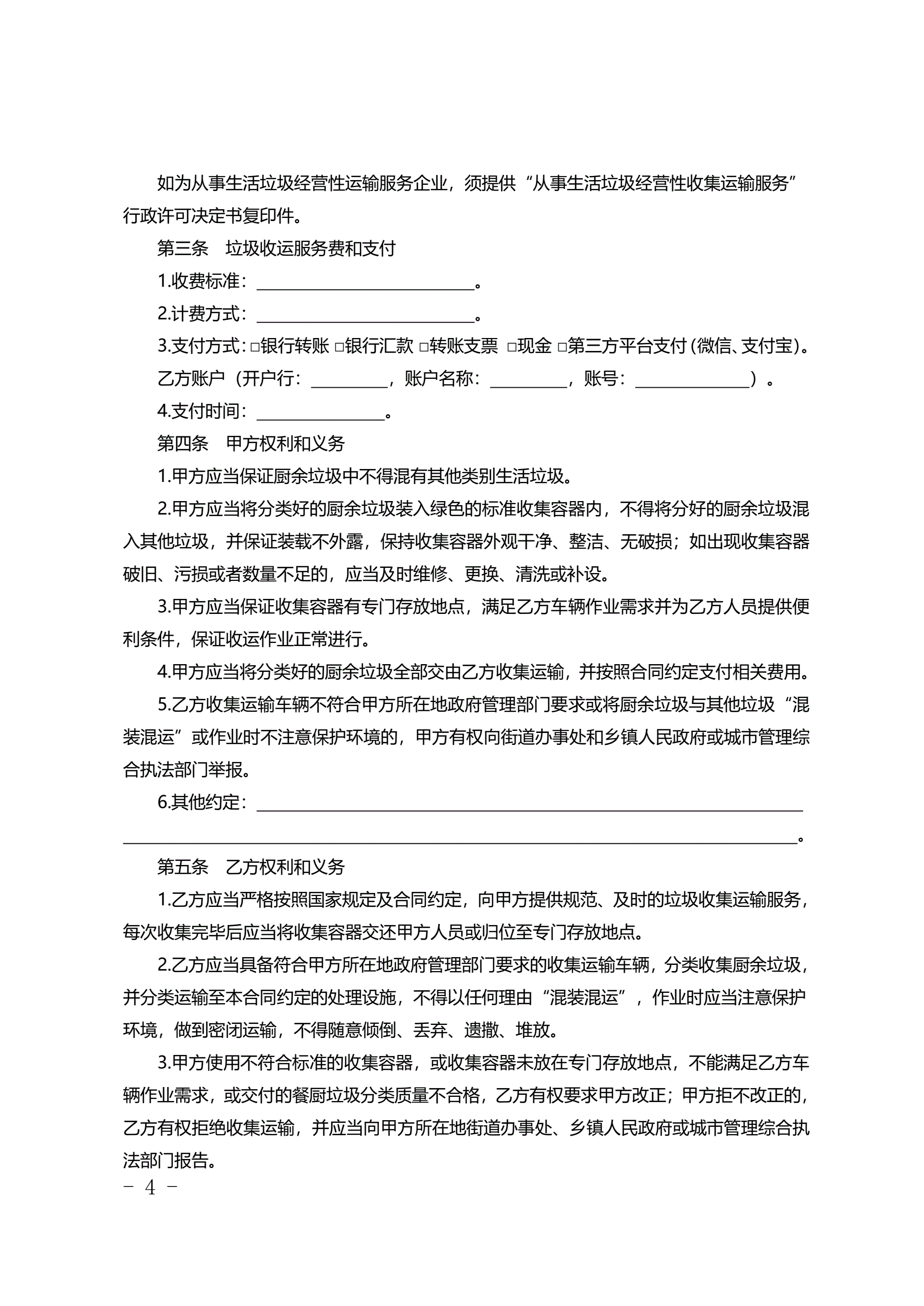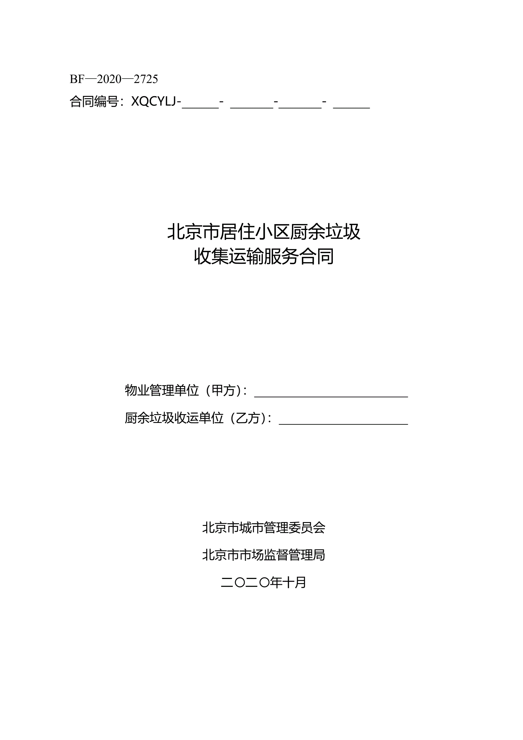 北京市居住小区厨余垃圾收集运输服务合同