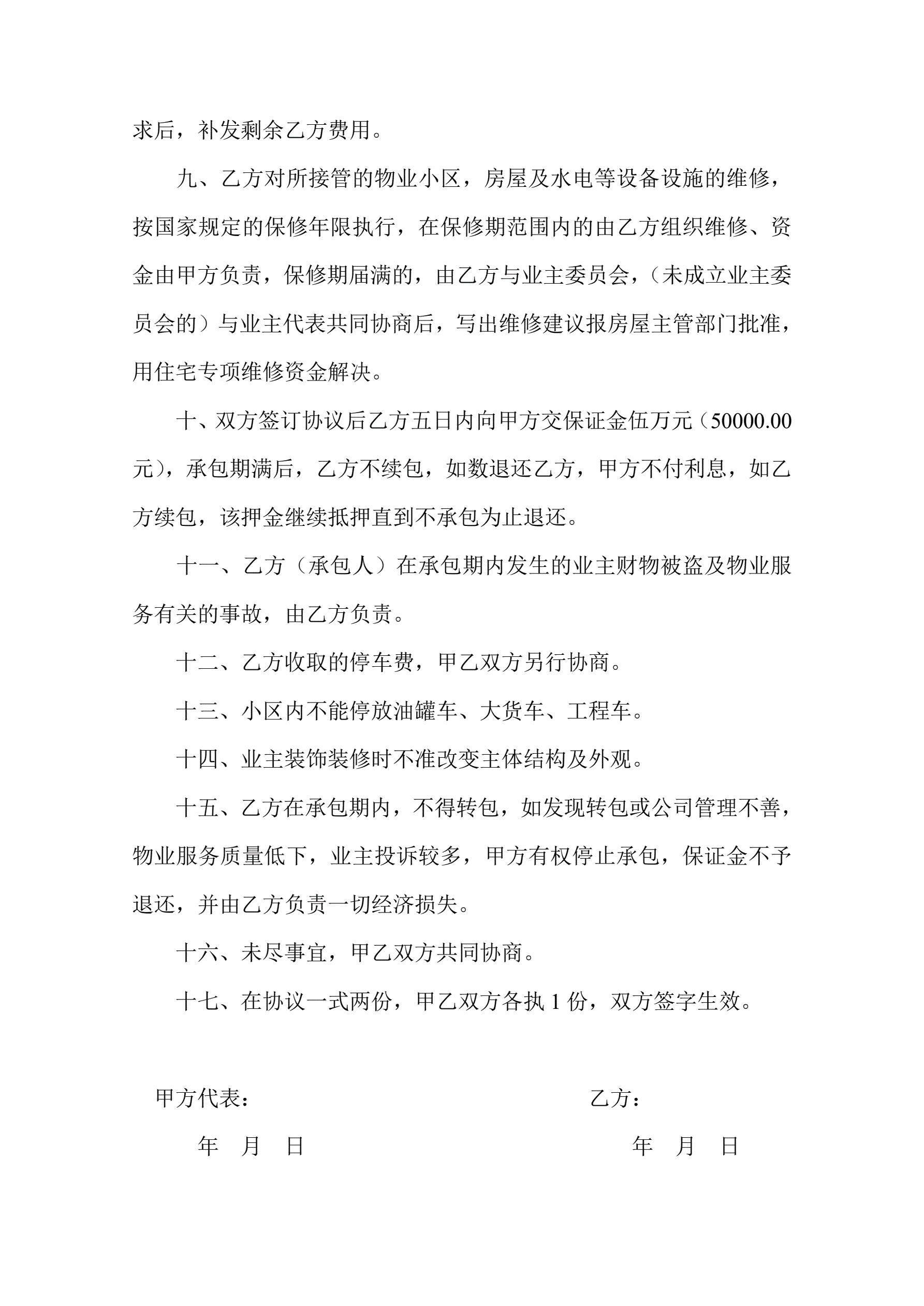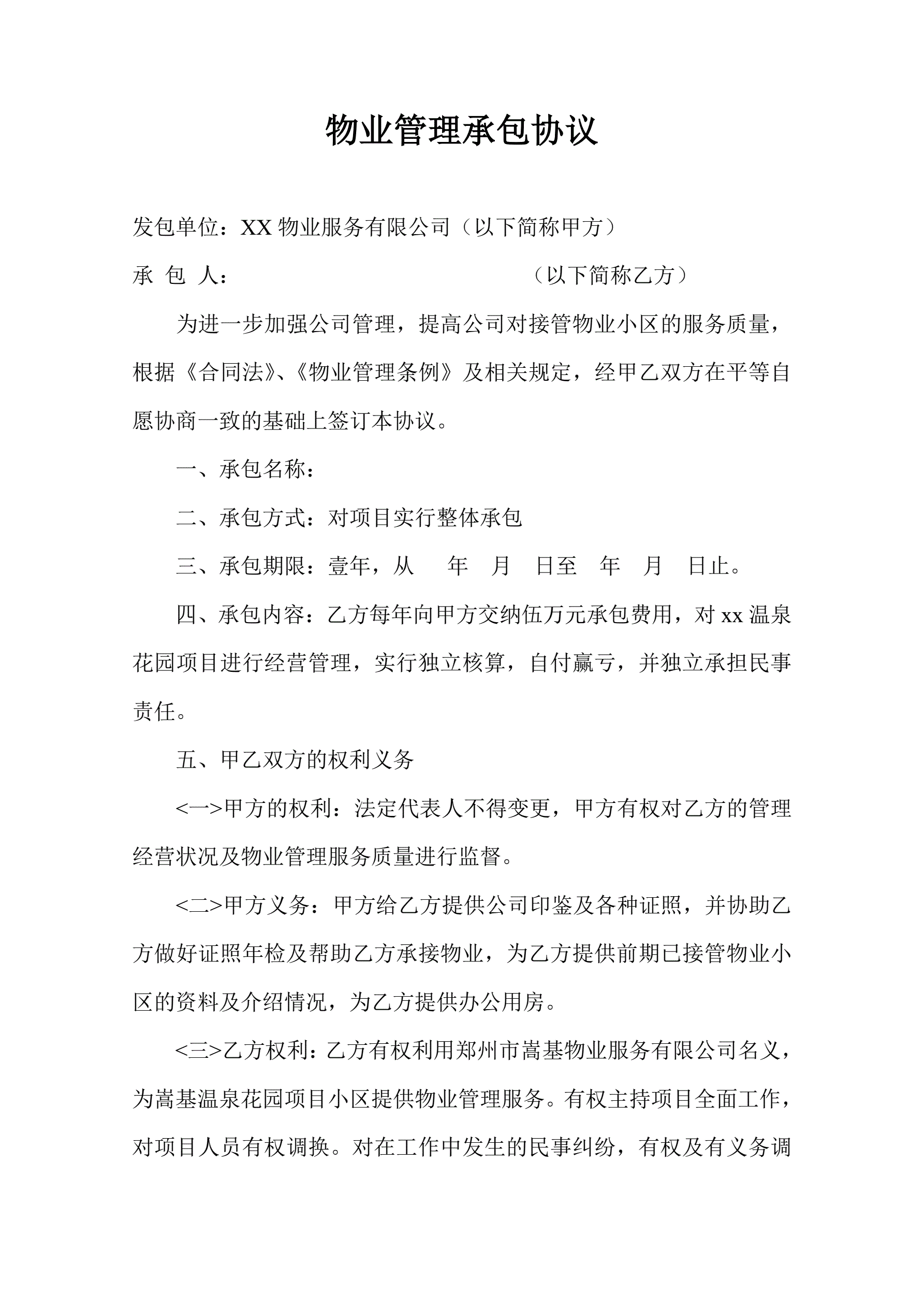 >物业管理有限公司承包协议