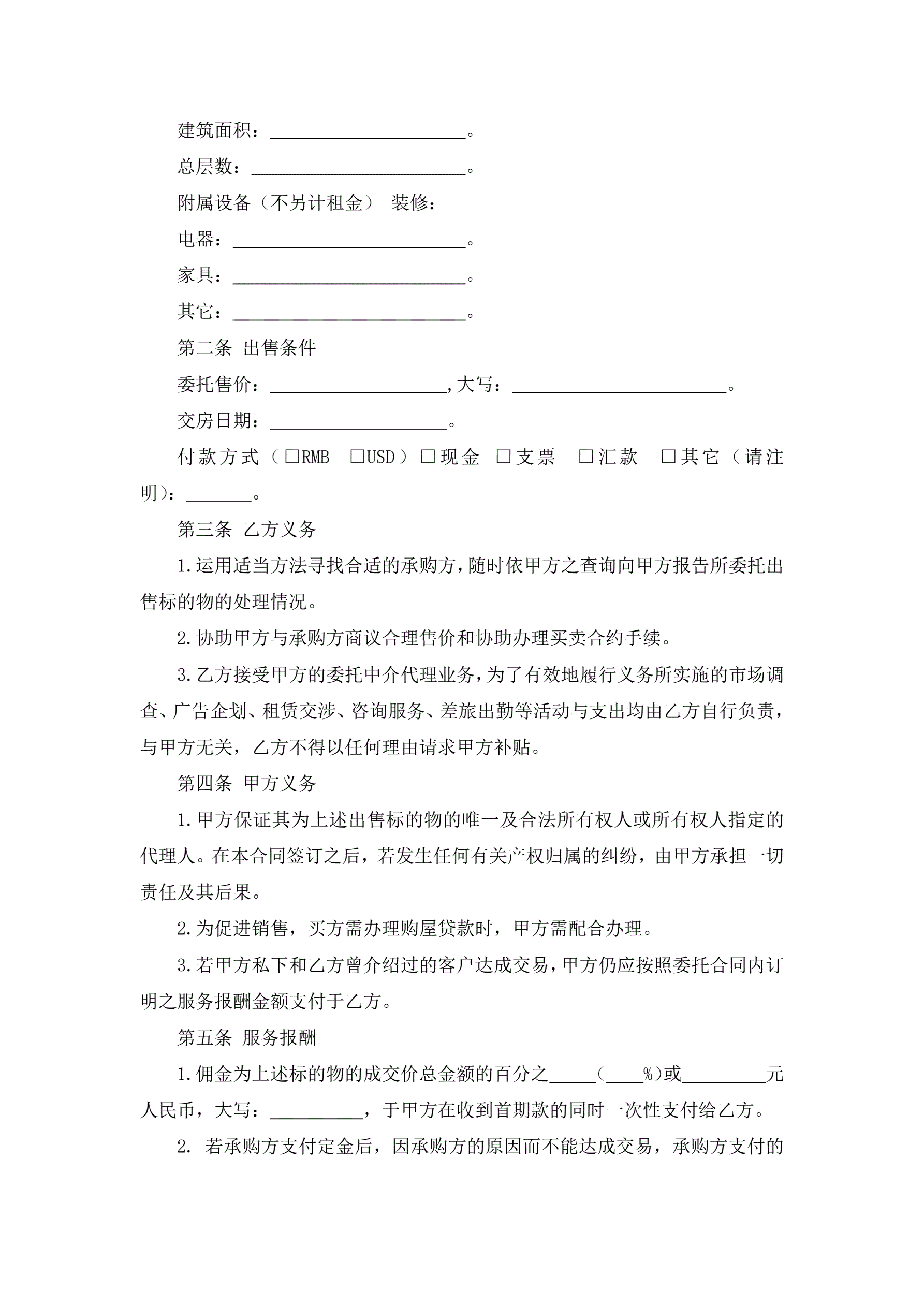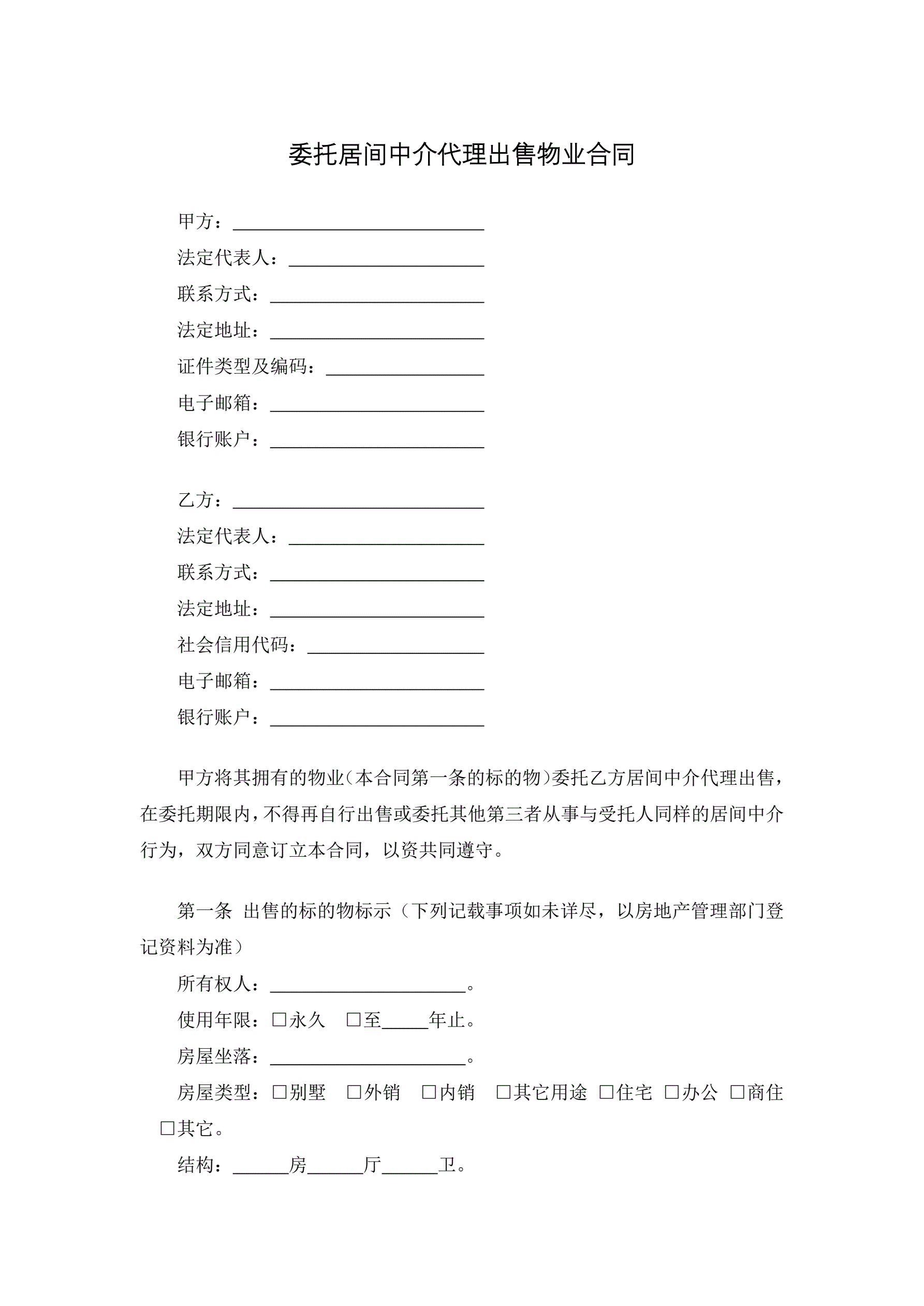 委托居间中介代理出售物业合同