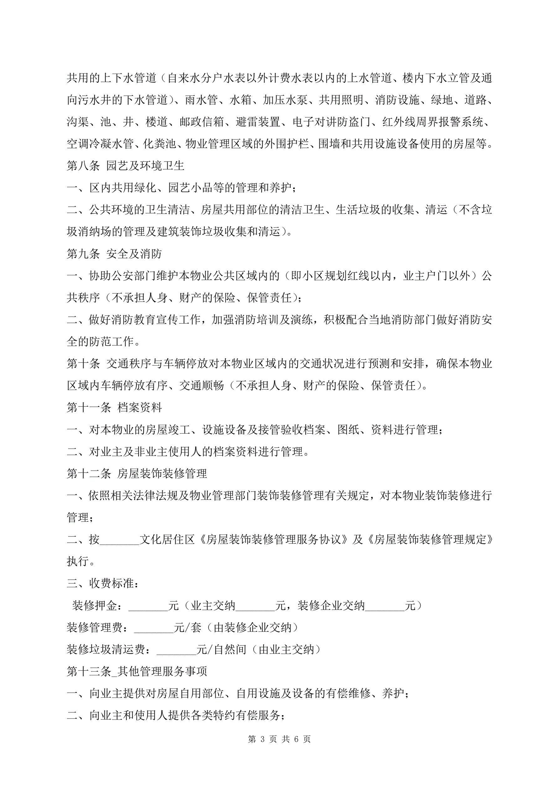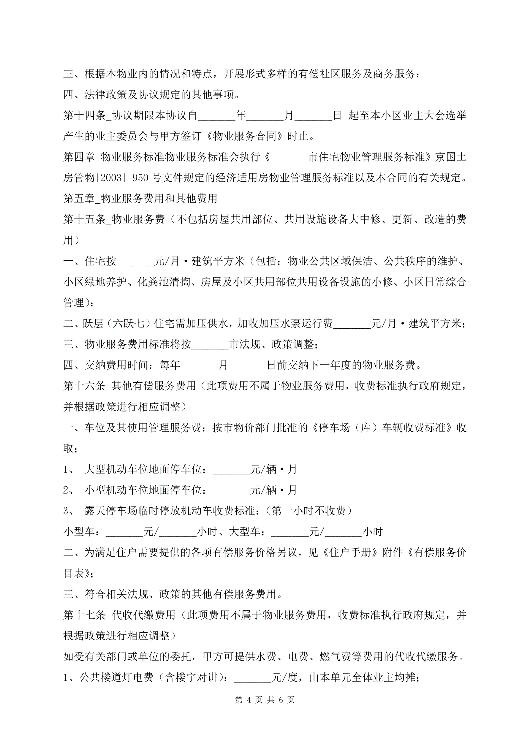 居住区前期物业服务合同