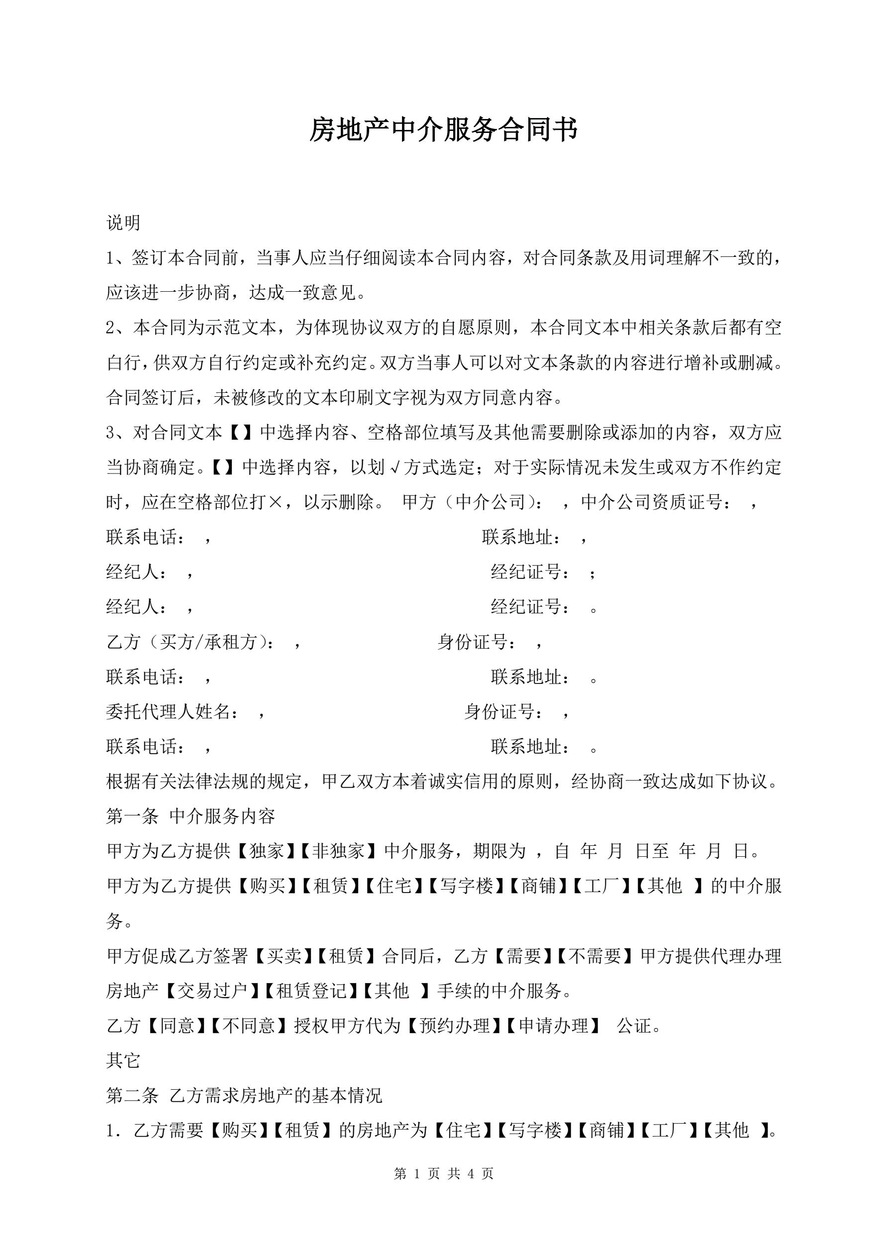 房地产中介服务合同书