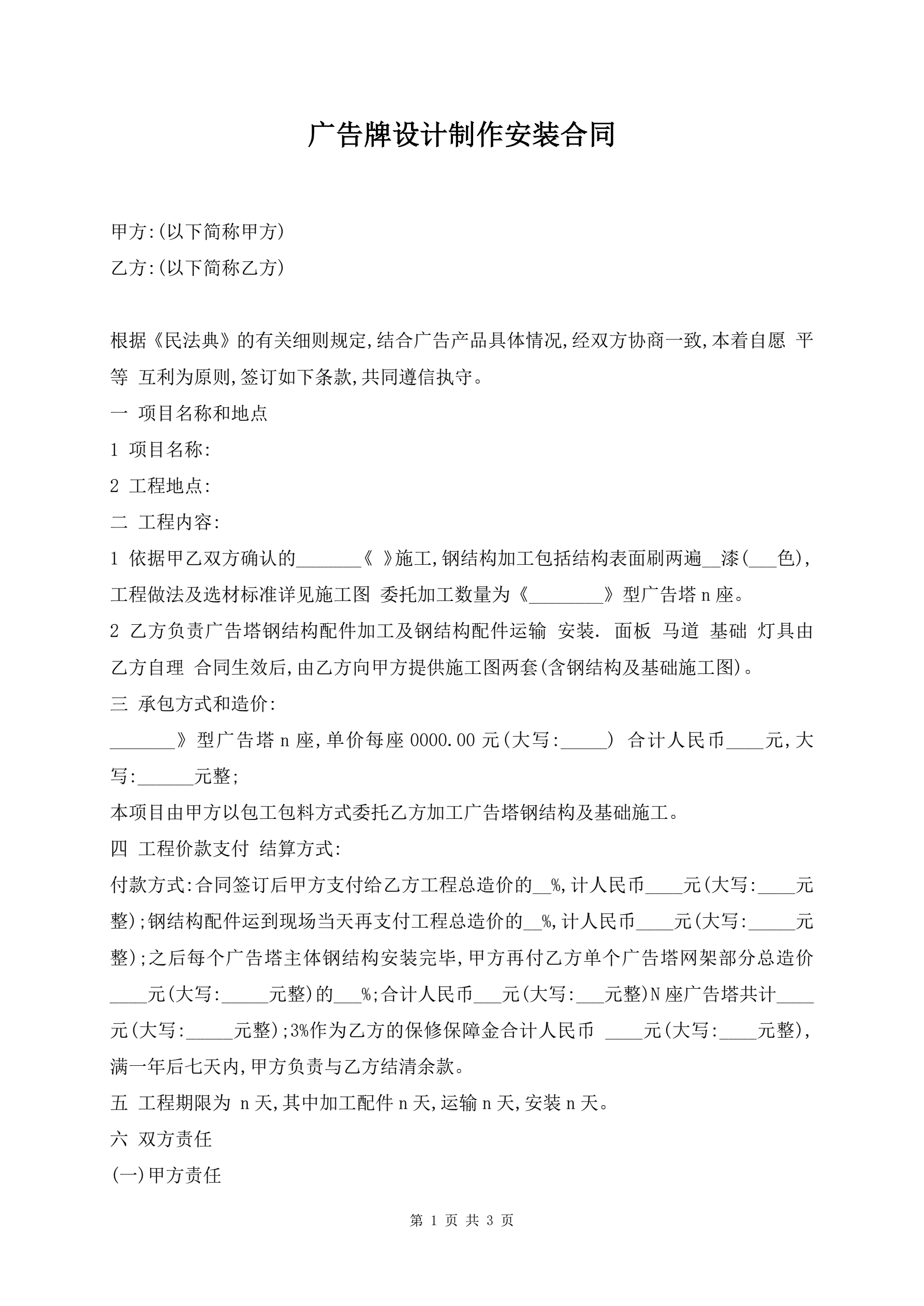 广告牌设计制作安装合同