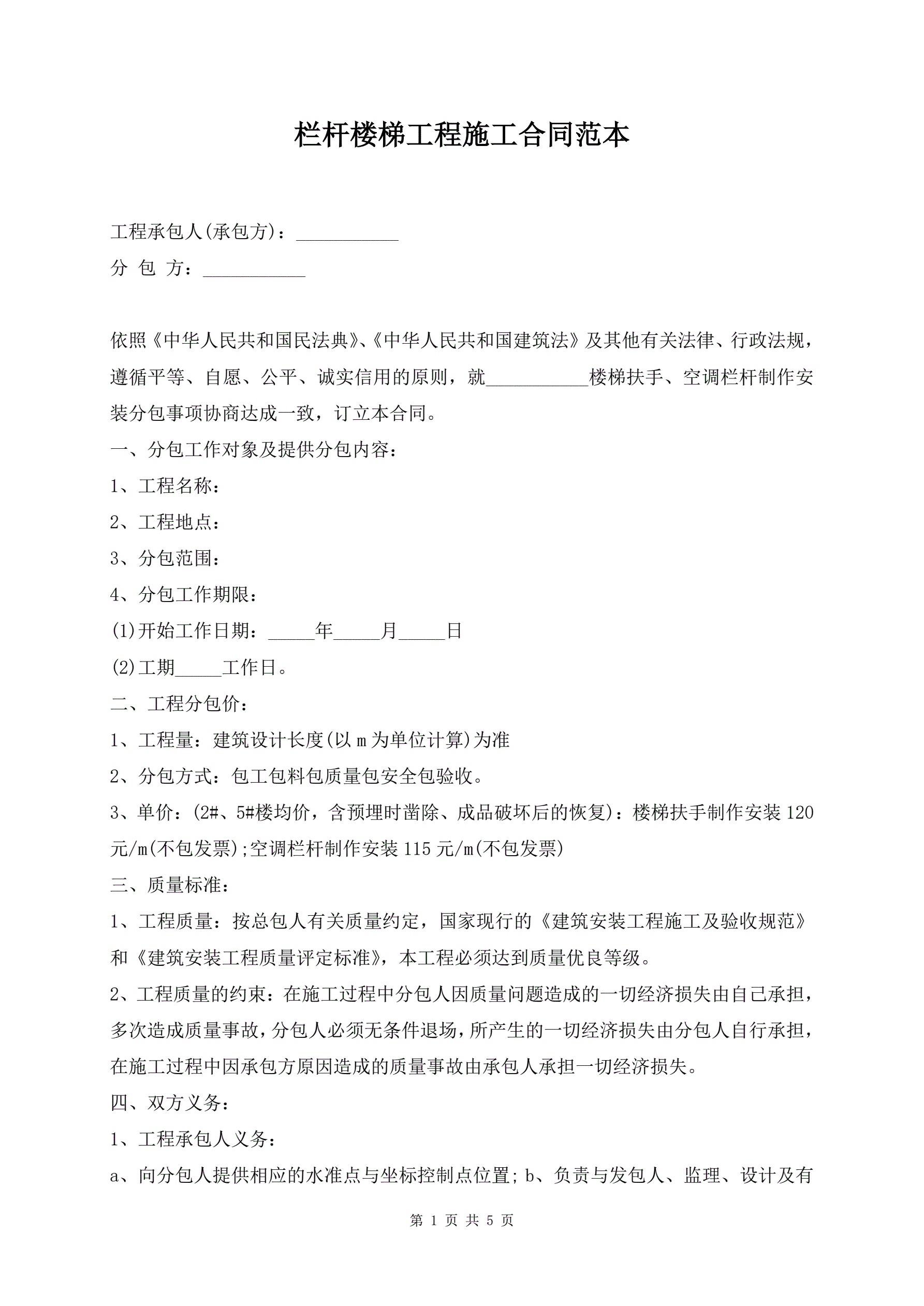 >栏杆楼梯工程施工合同范本