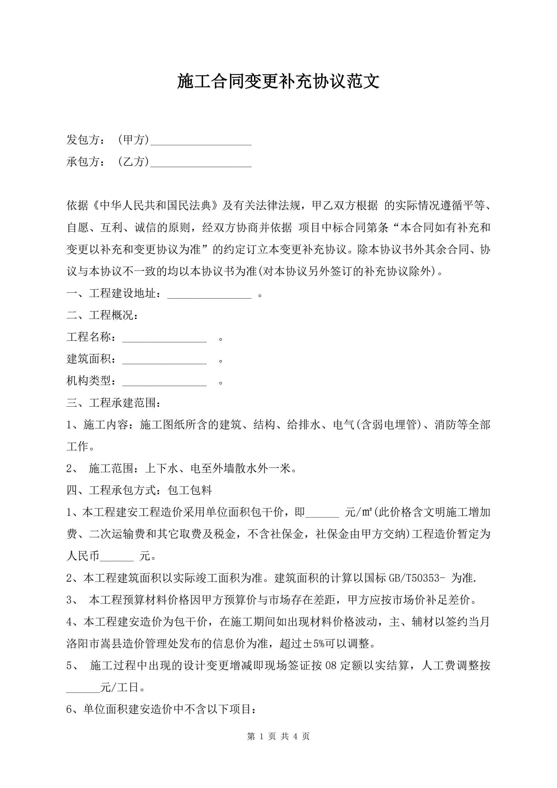 >施工合同变更补充协议范文