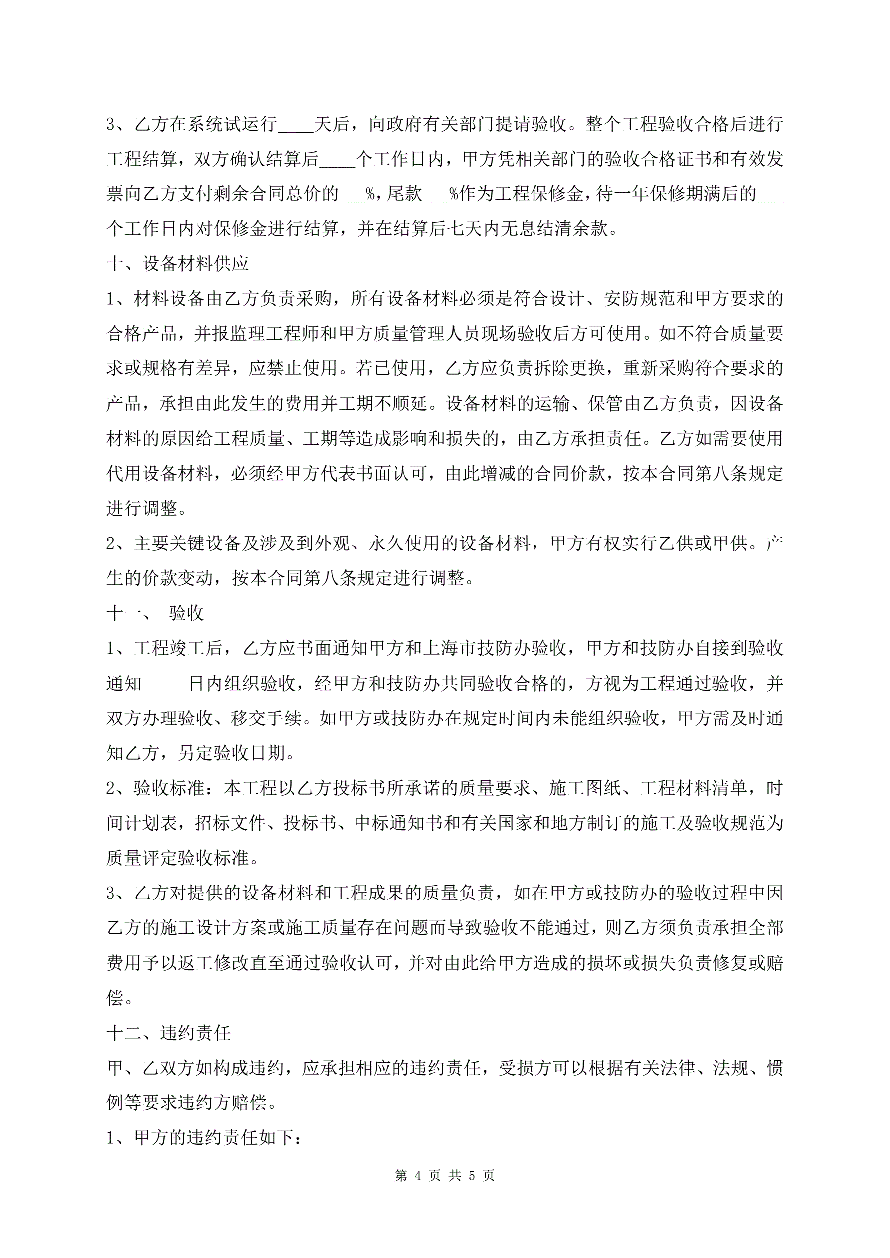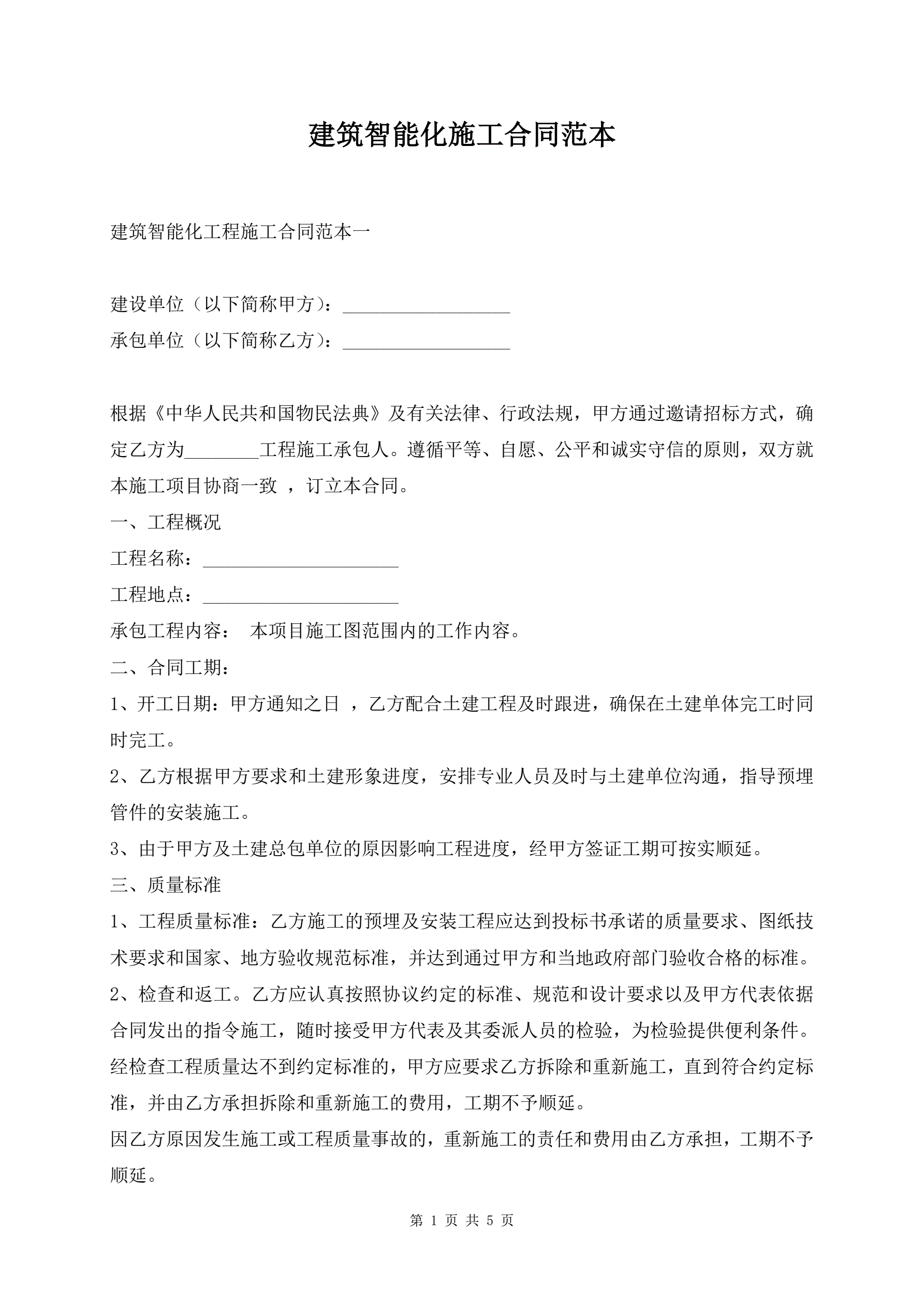 >建筑智能化施工合同范本