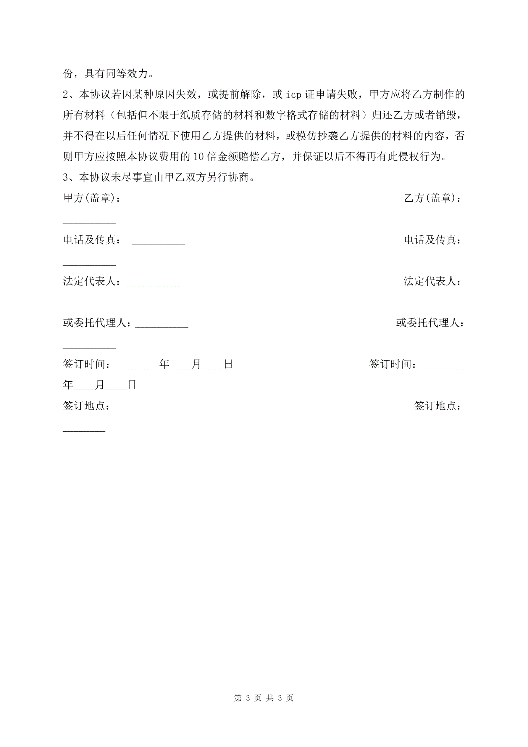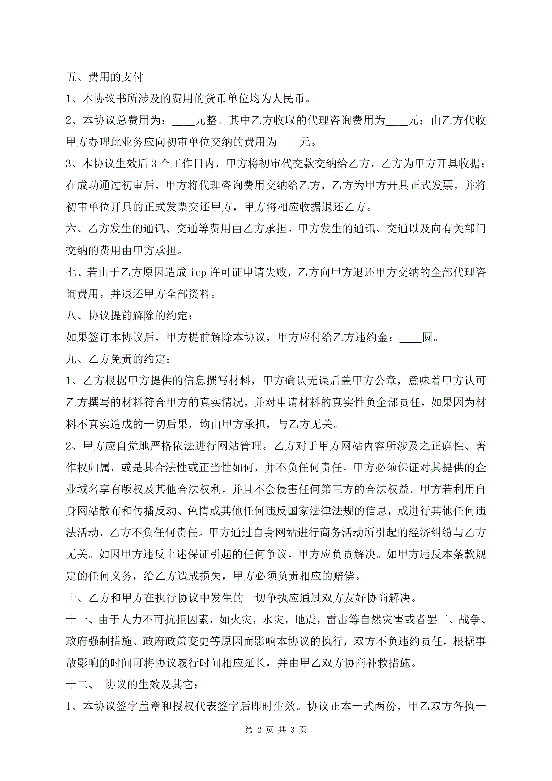 >新版代办ICP经营许可证及咨询服务协议书