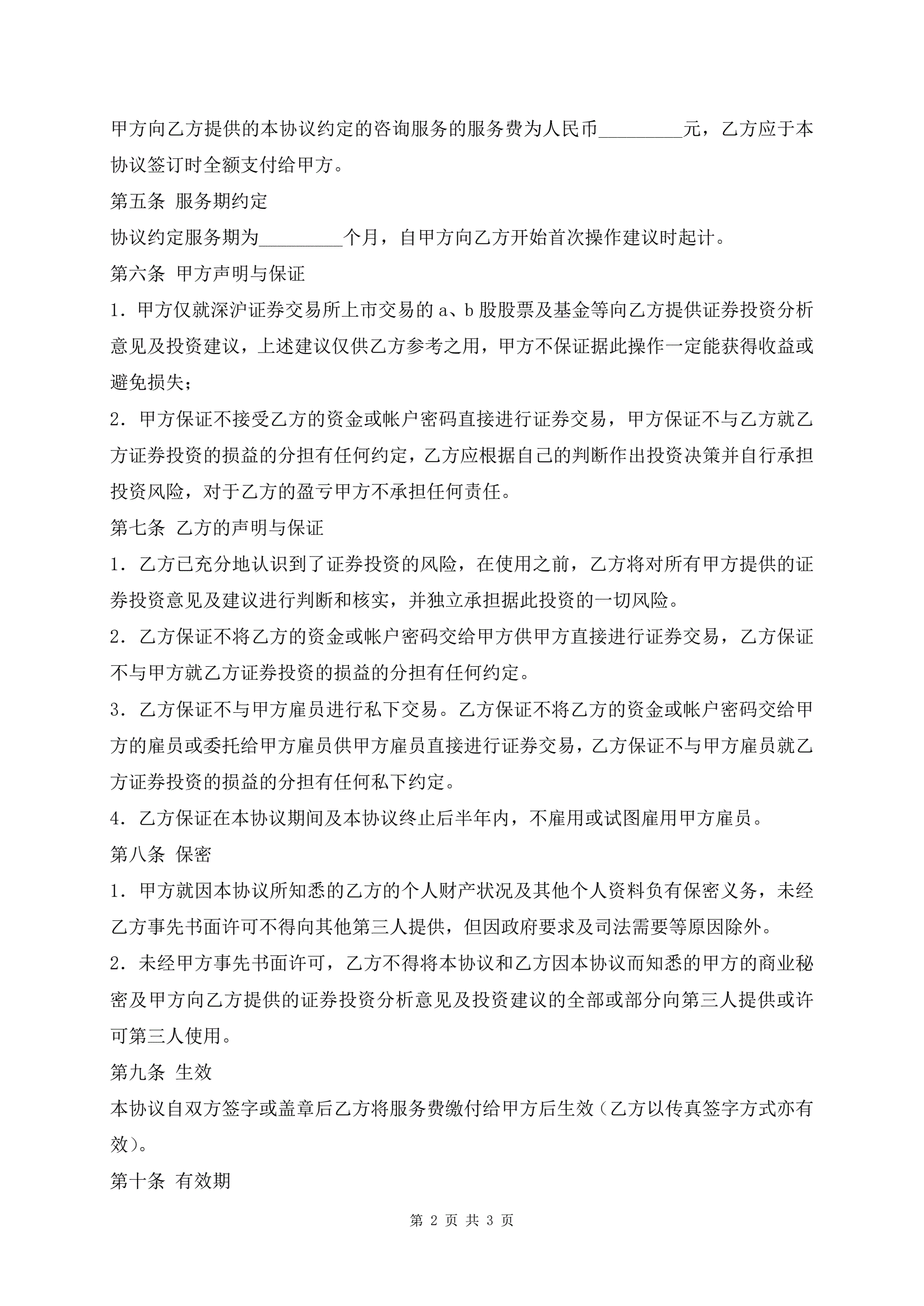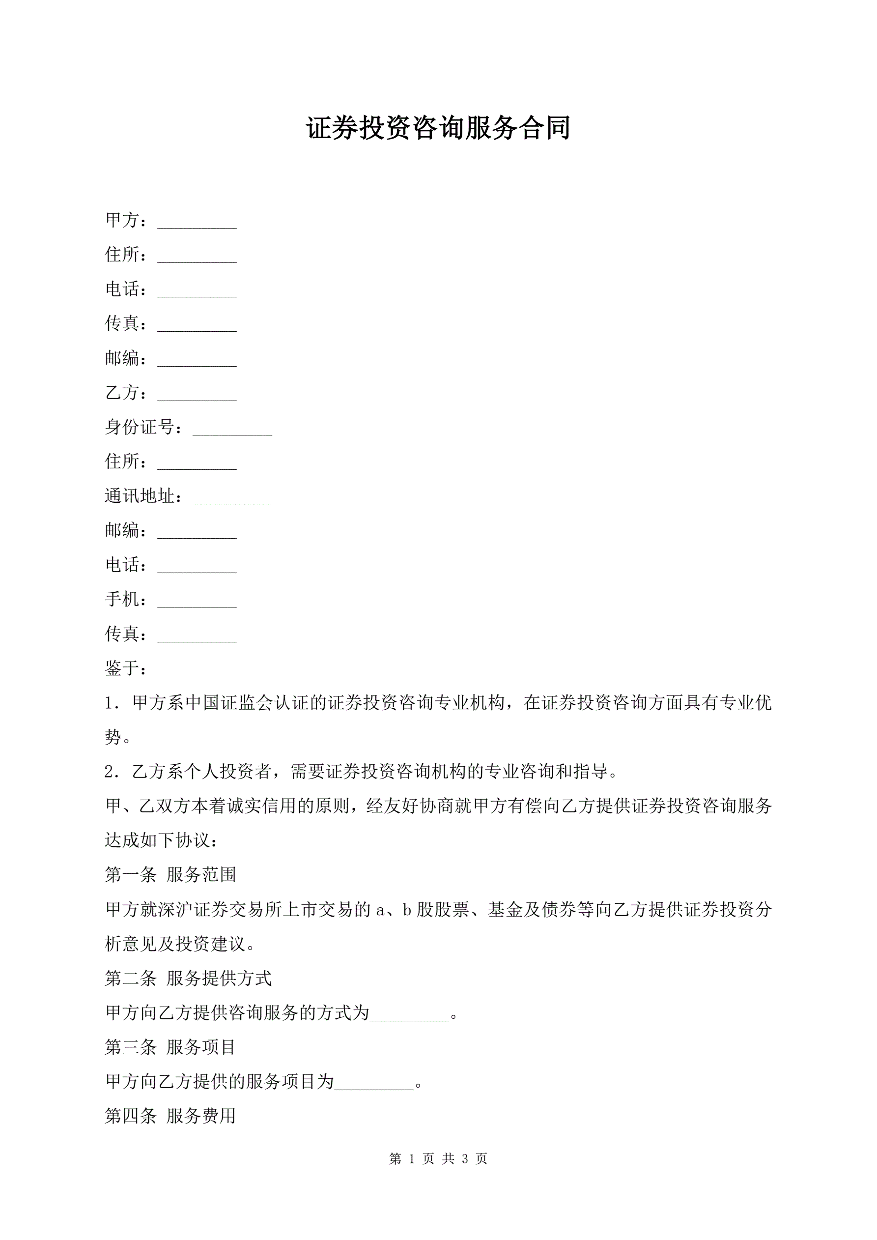 证券投资咨询服务合同