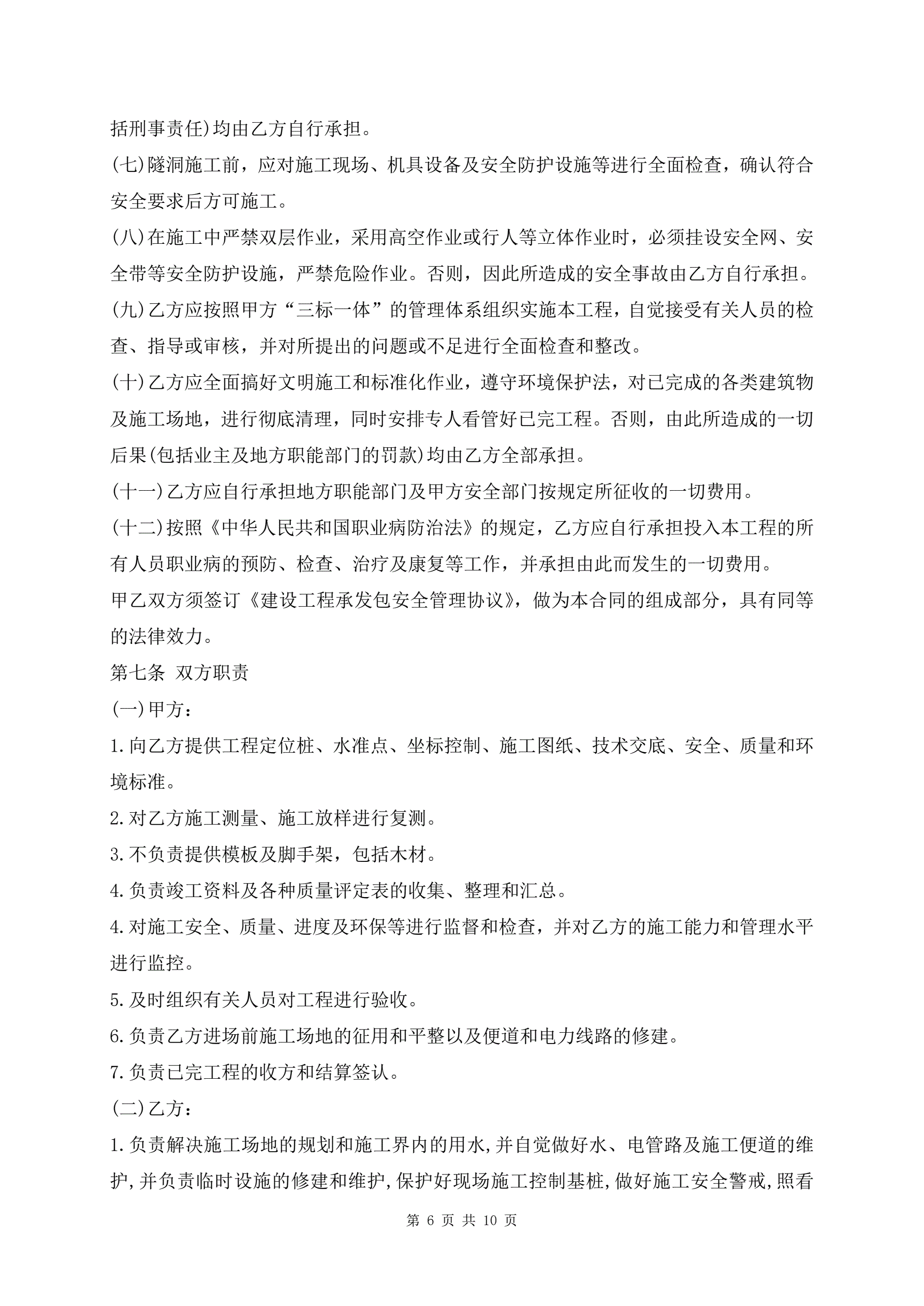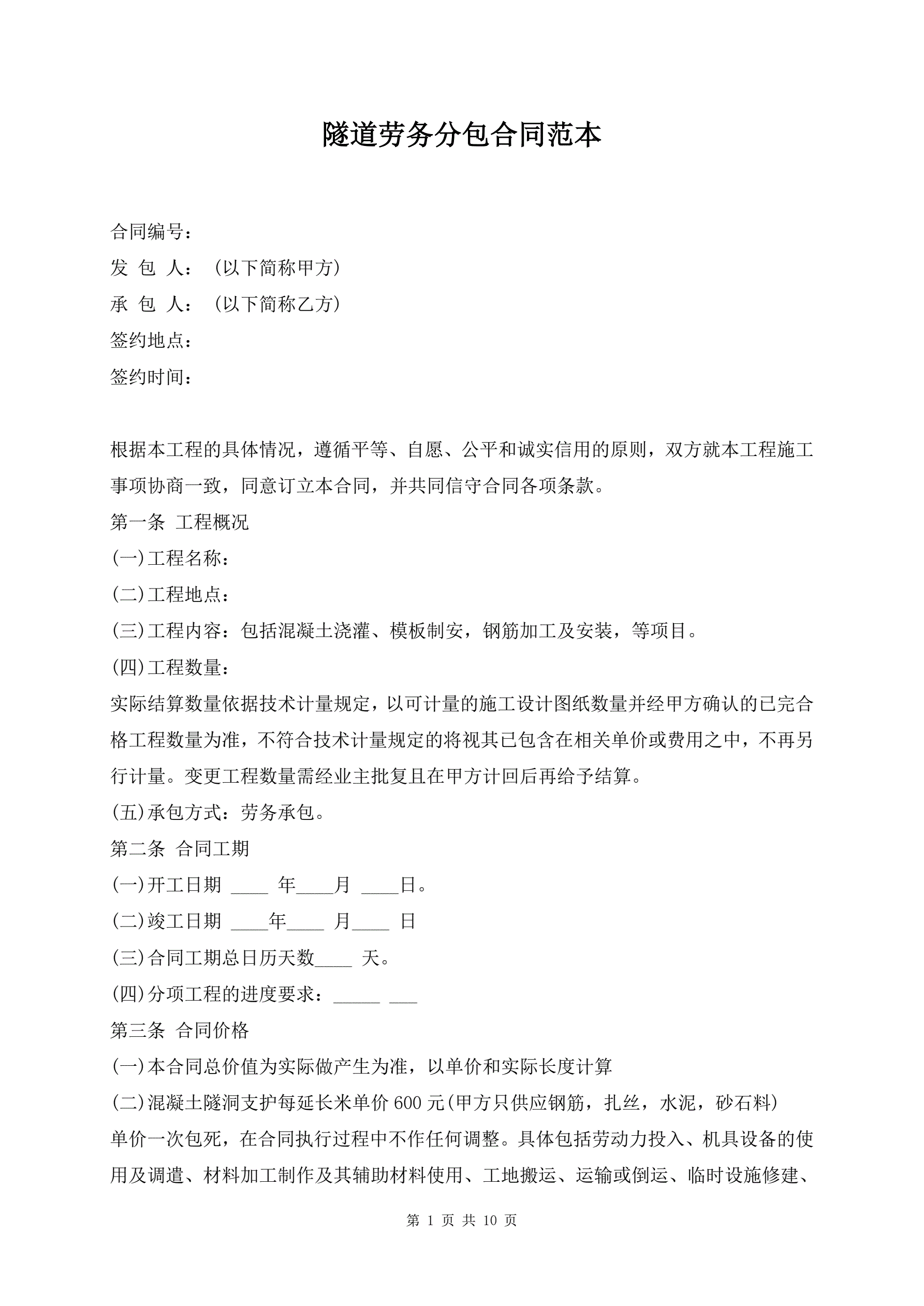 >隧道劳务分包合同范本
