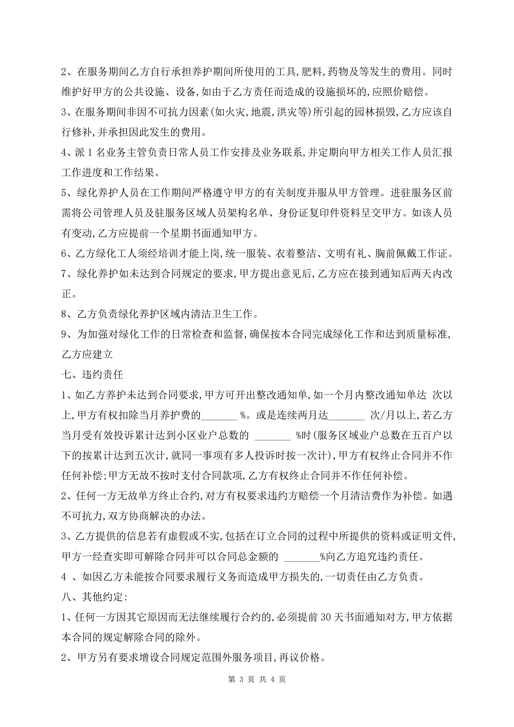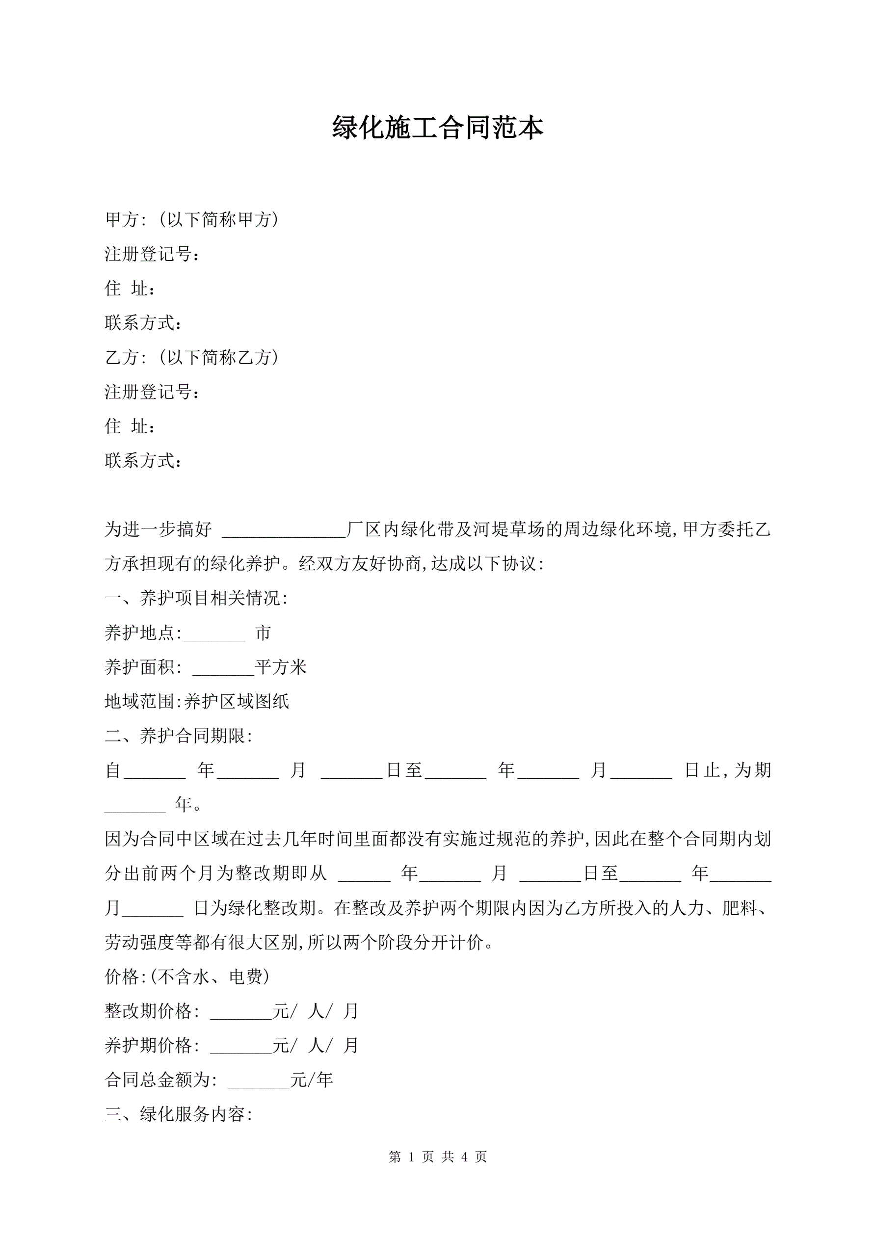 绿化施工合同范本
