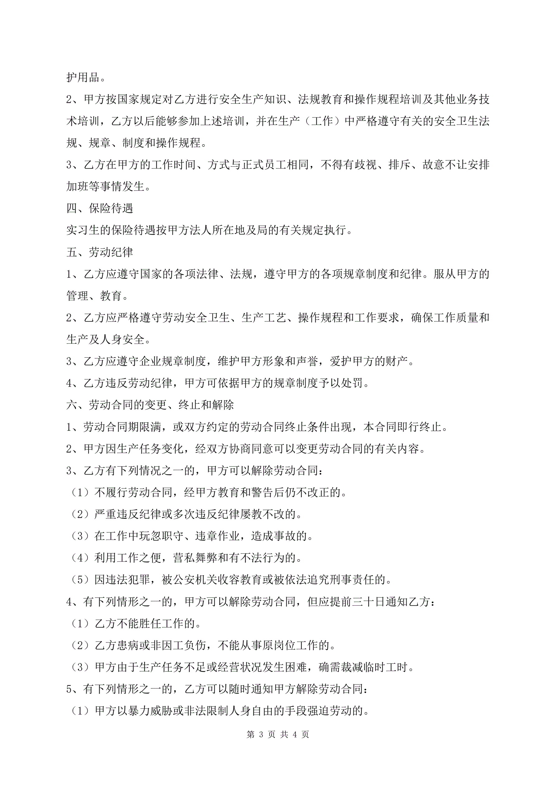 实习生实习合同书范文