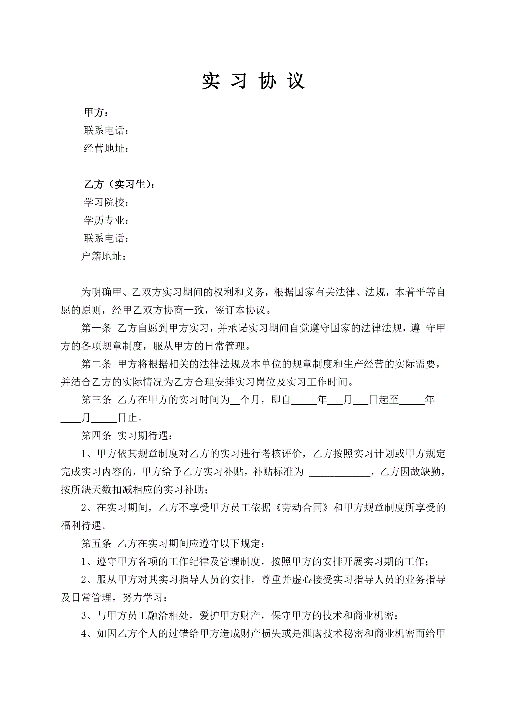 实习协议
