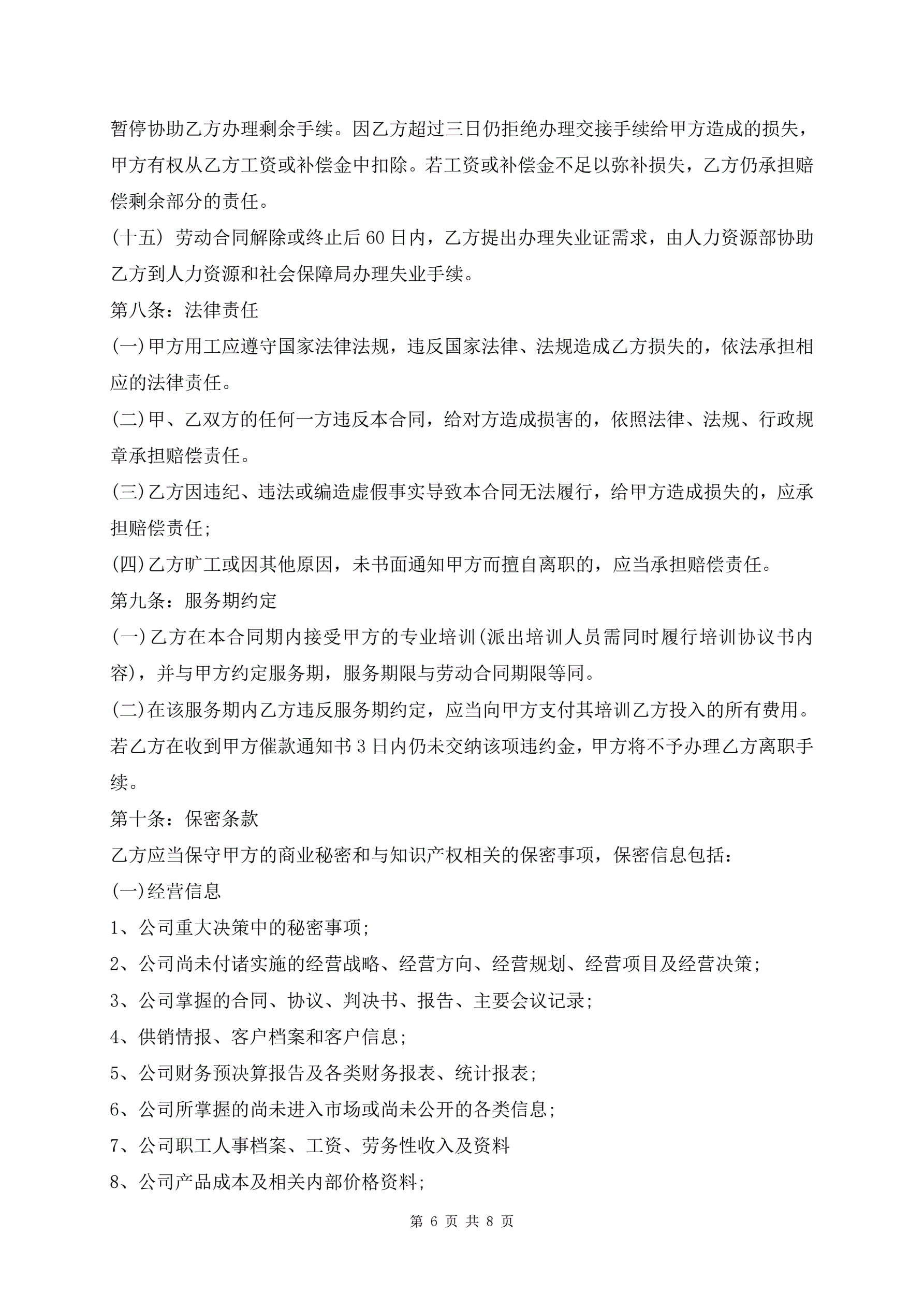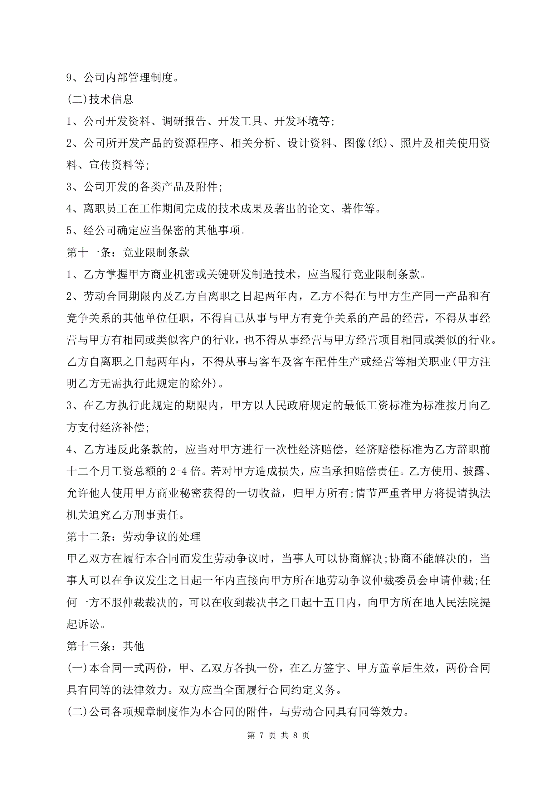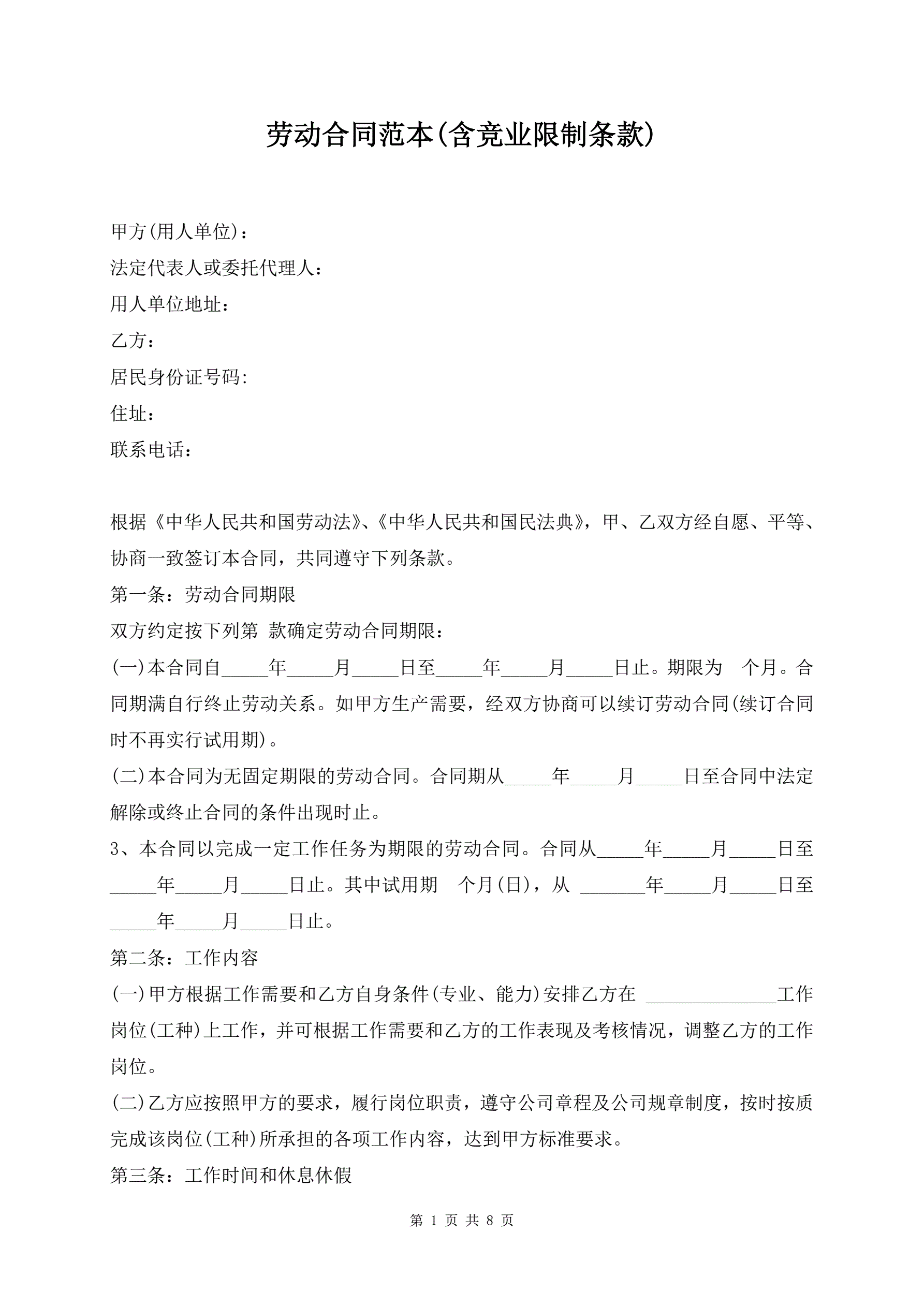>劳动合同范本(含竞业限制条款)