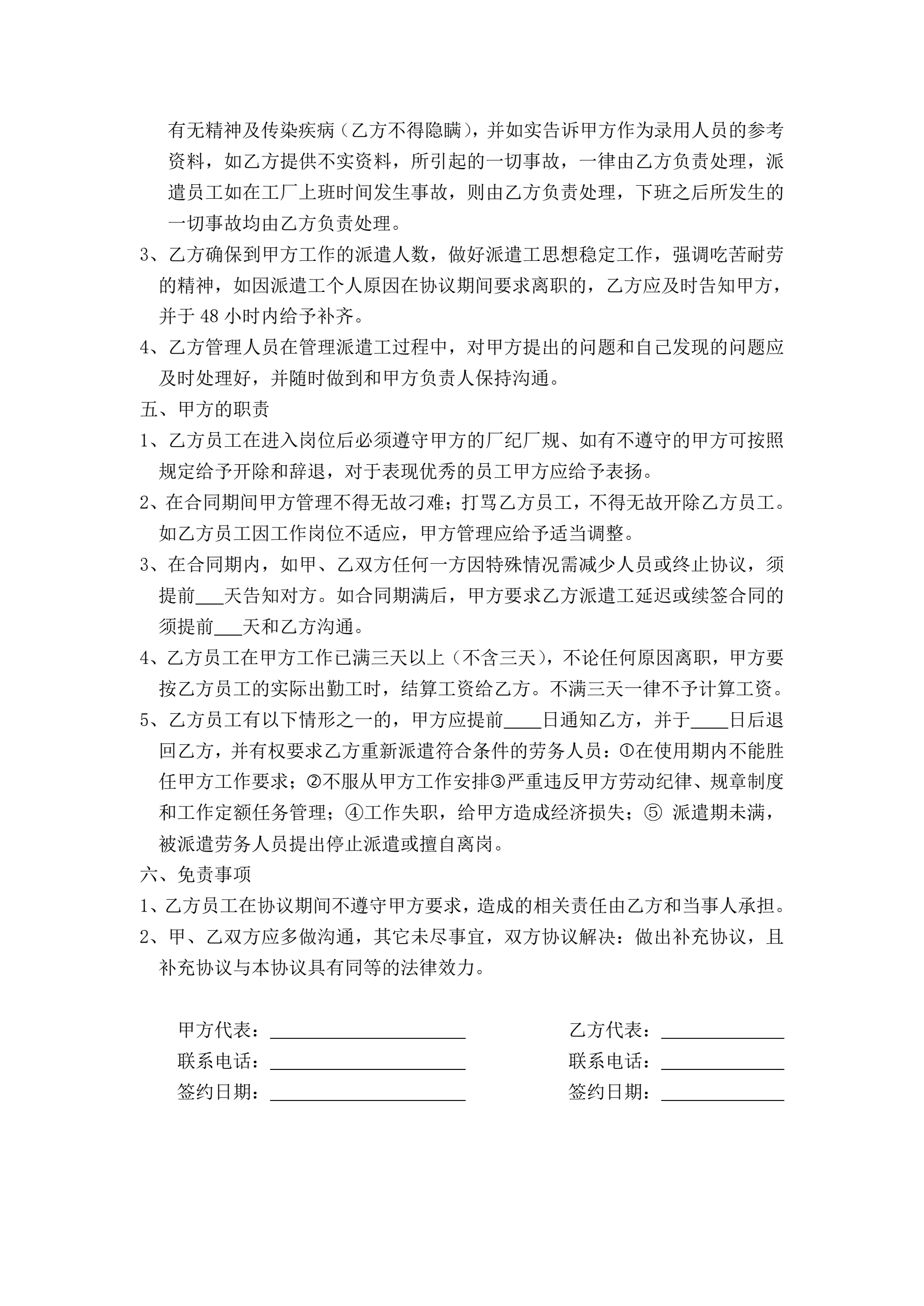 >临时工派遣协议
