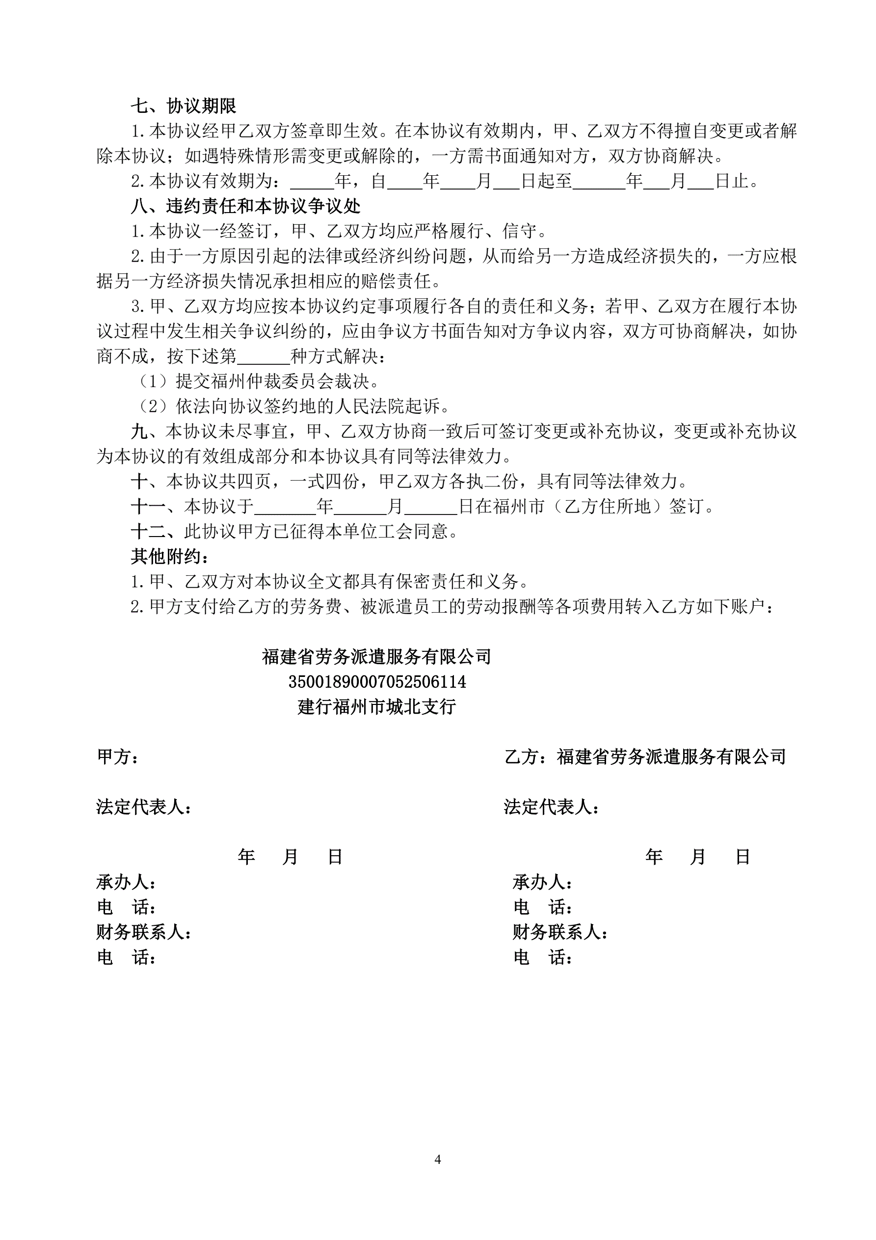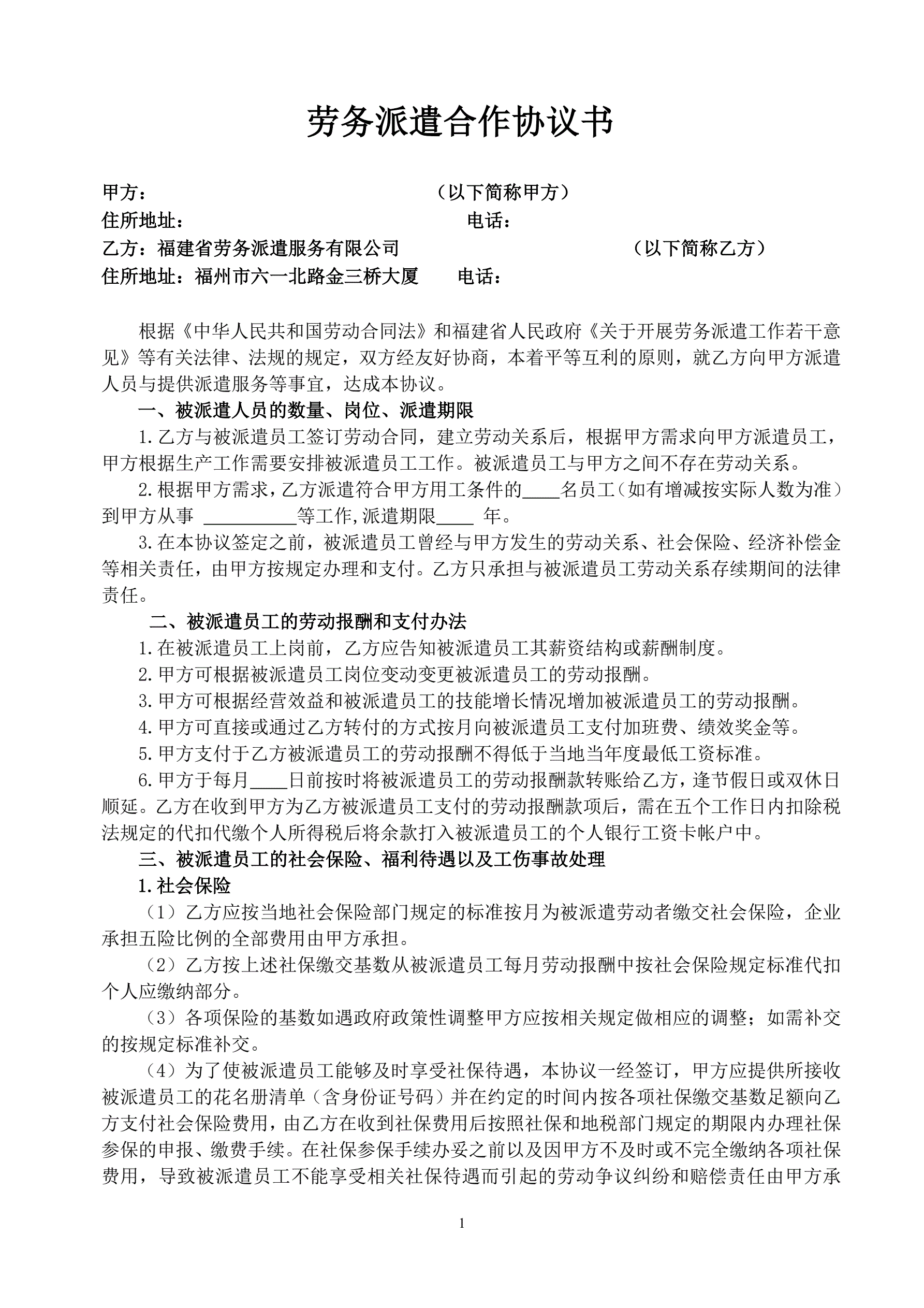 劳务派遣合作协议书