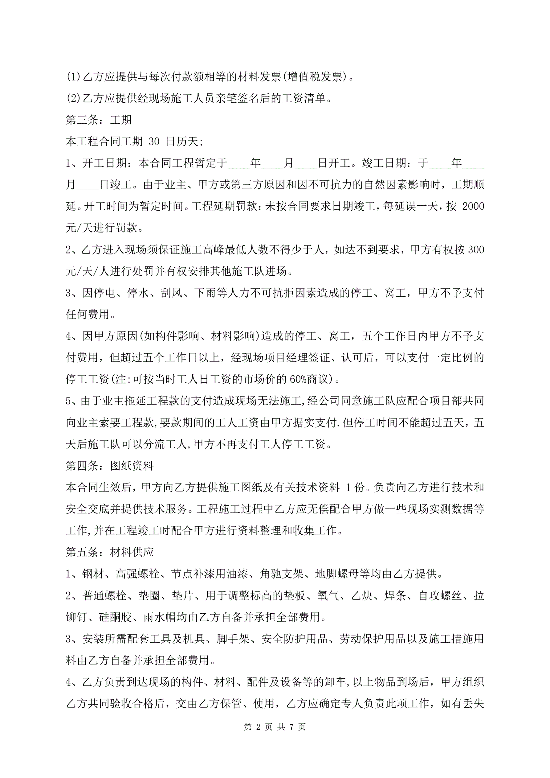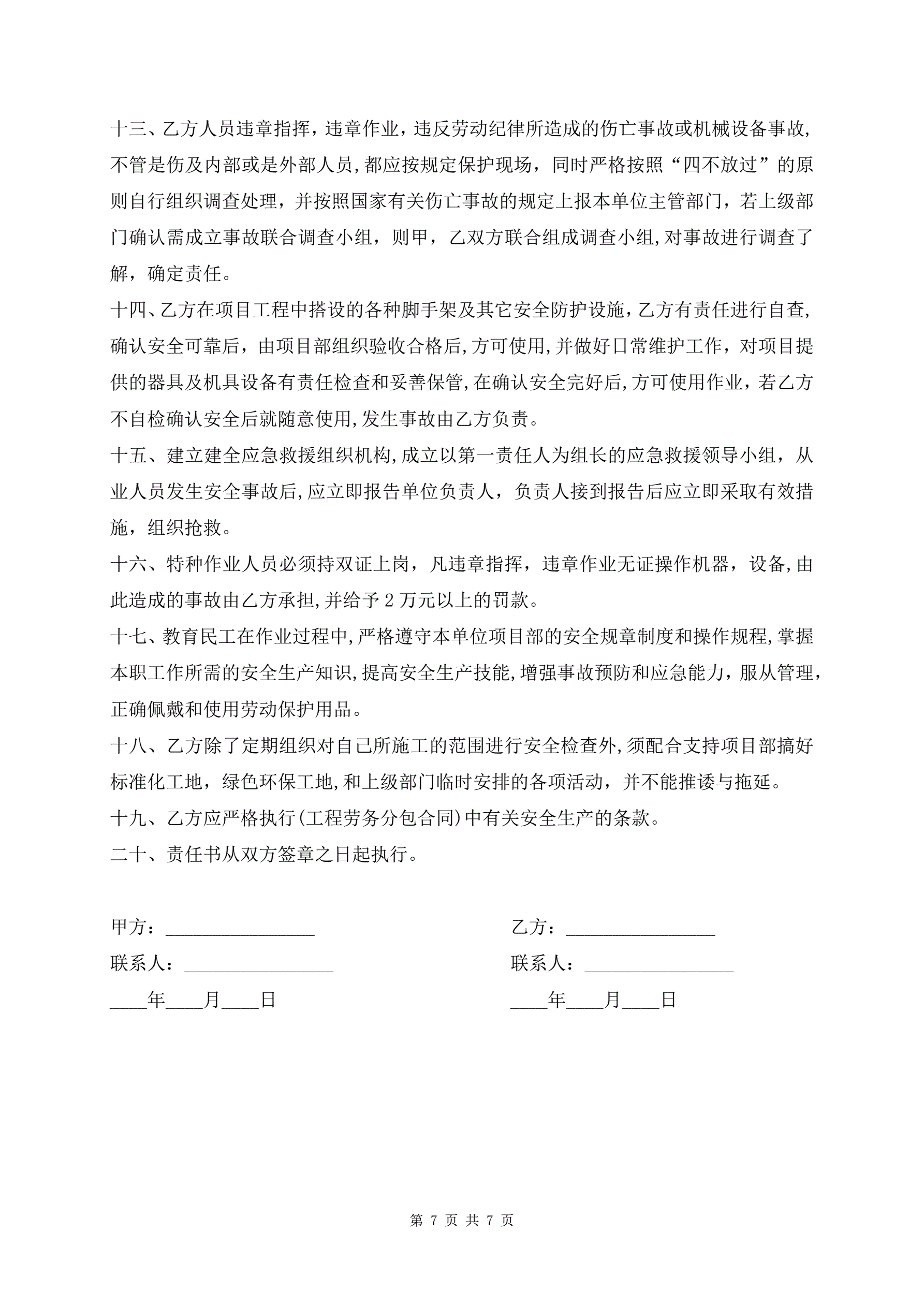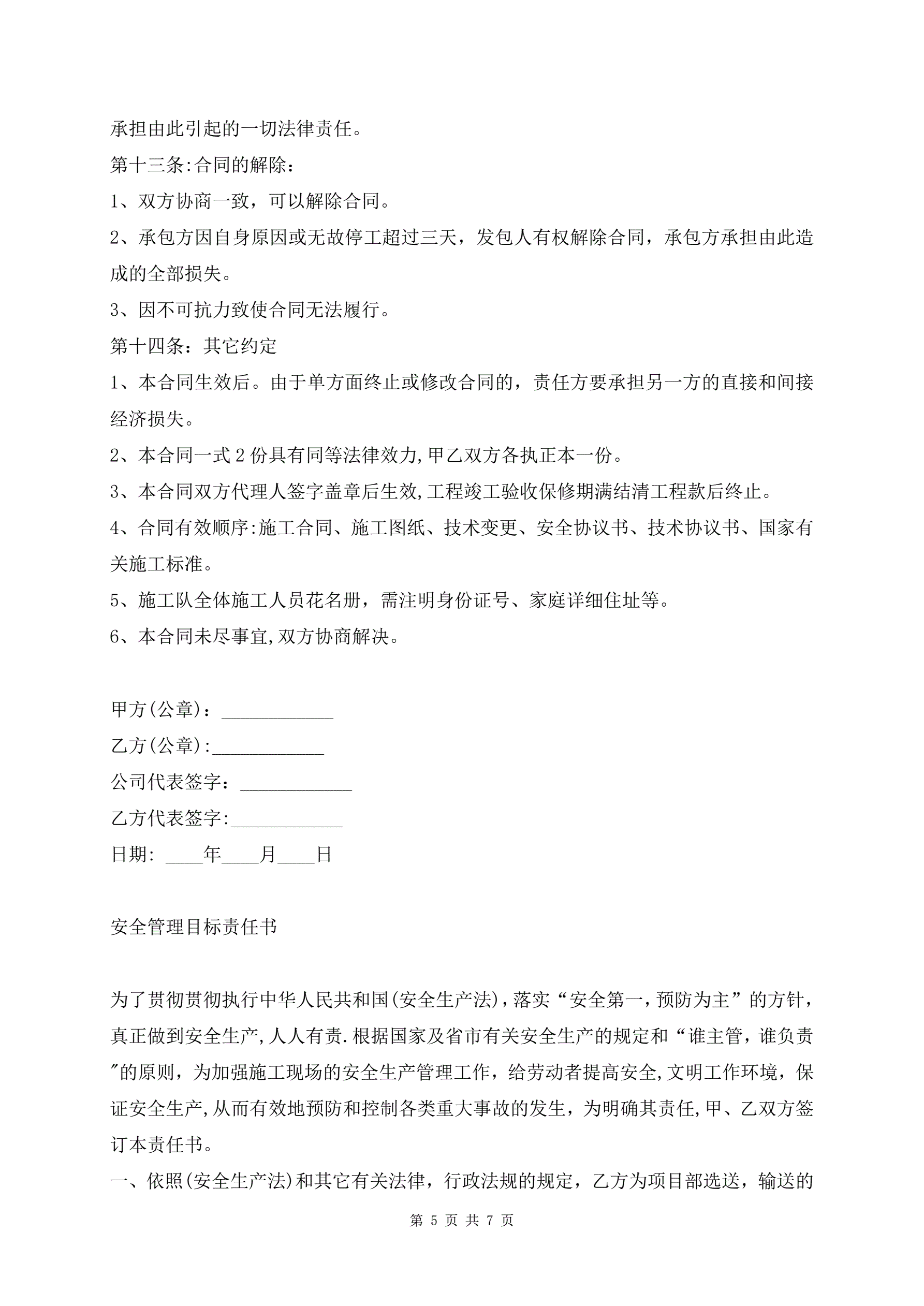 >钢结构劳务分包合同范本(带安全责任书)