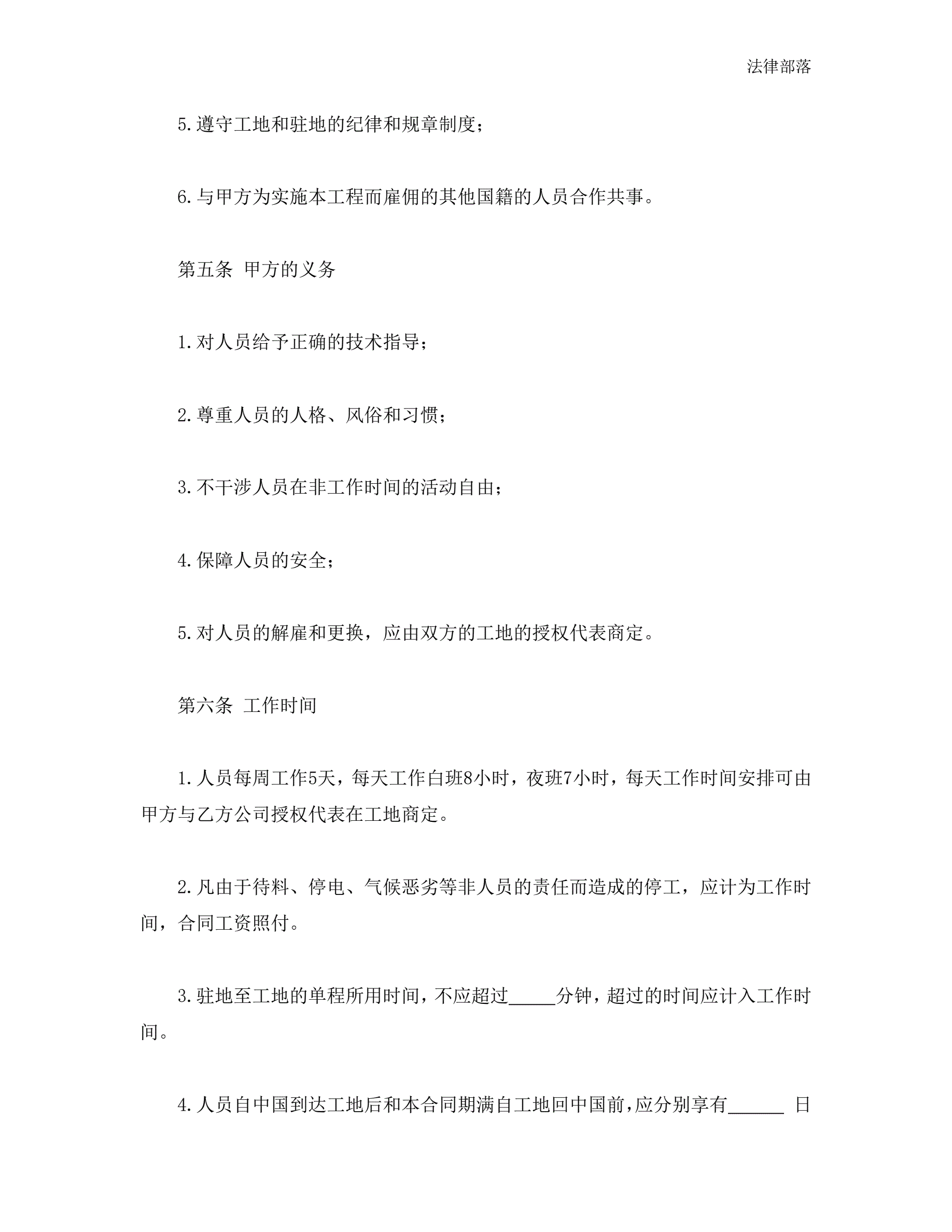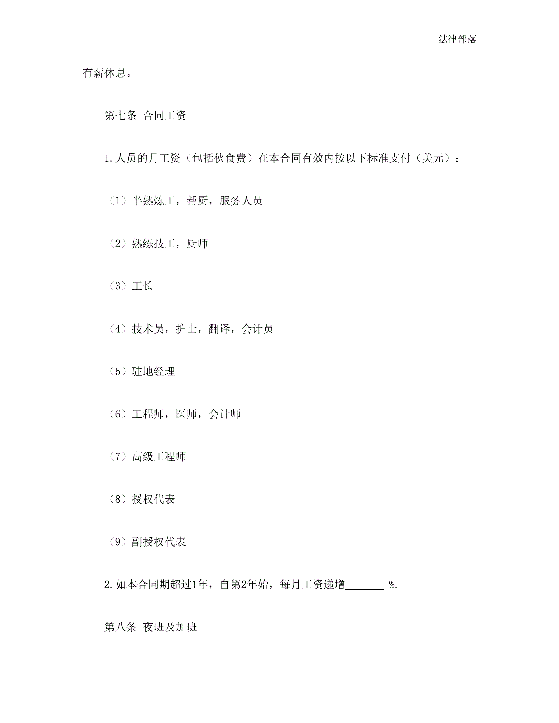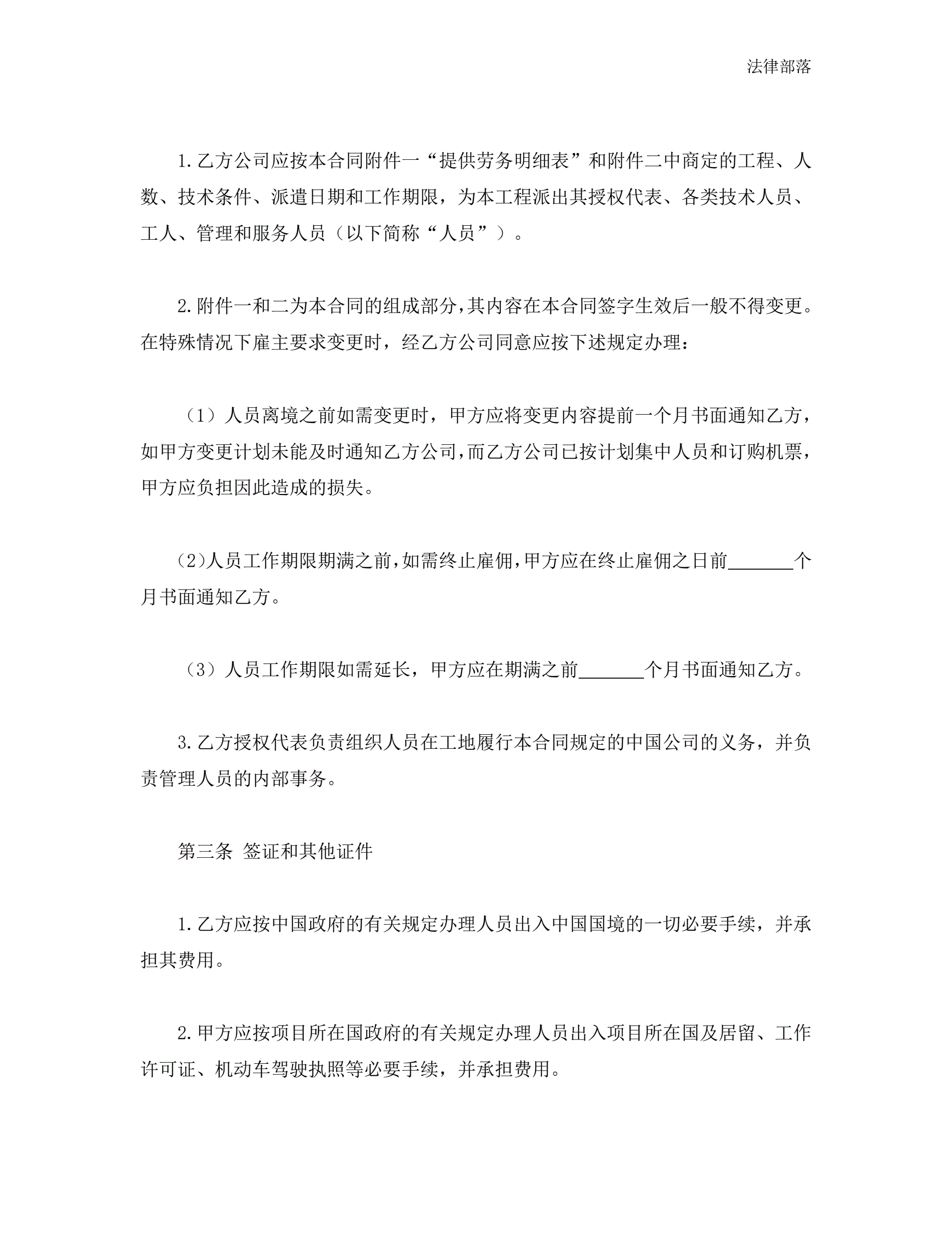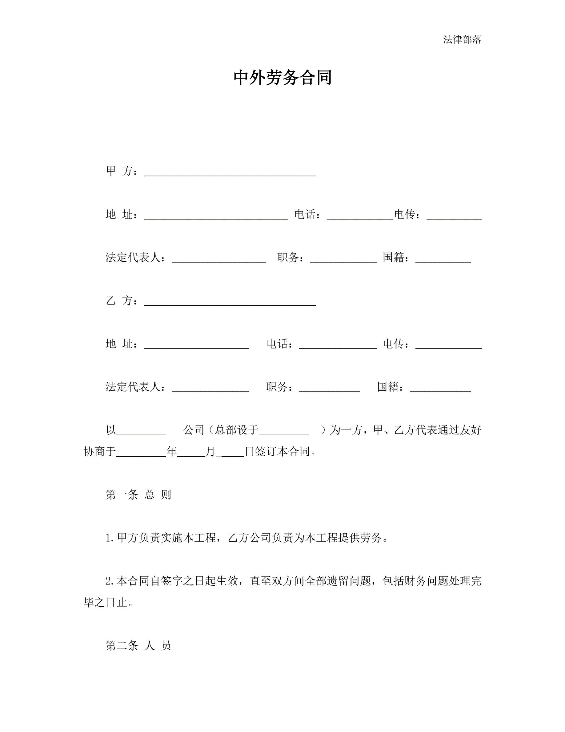 中外劳务合同