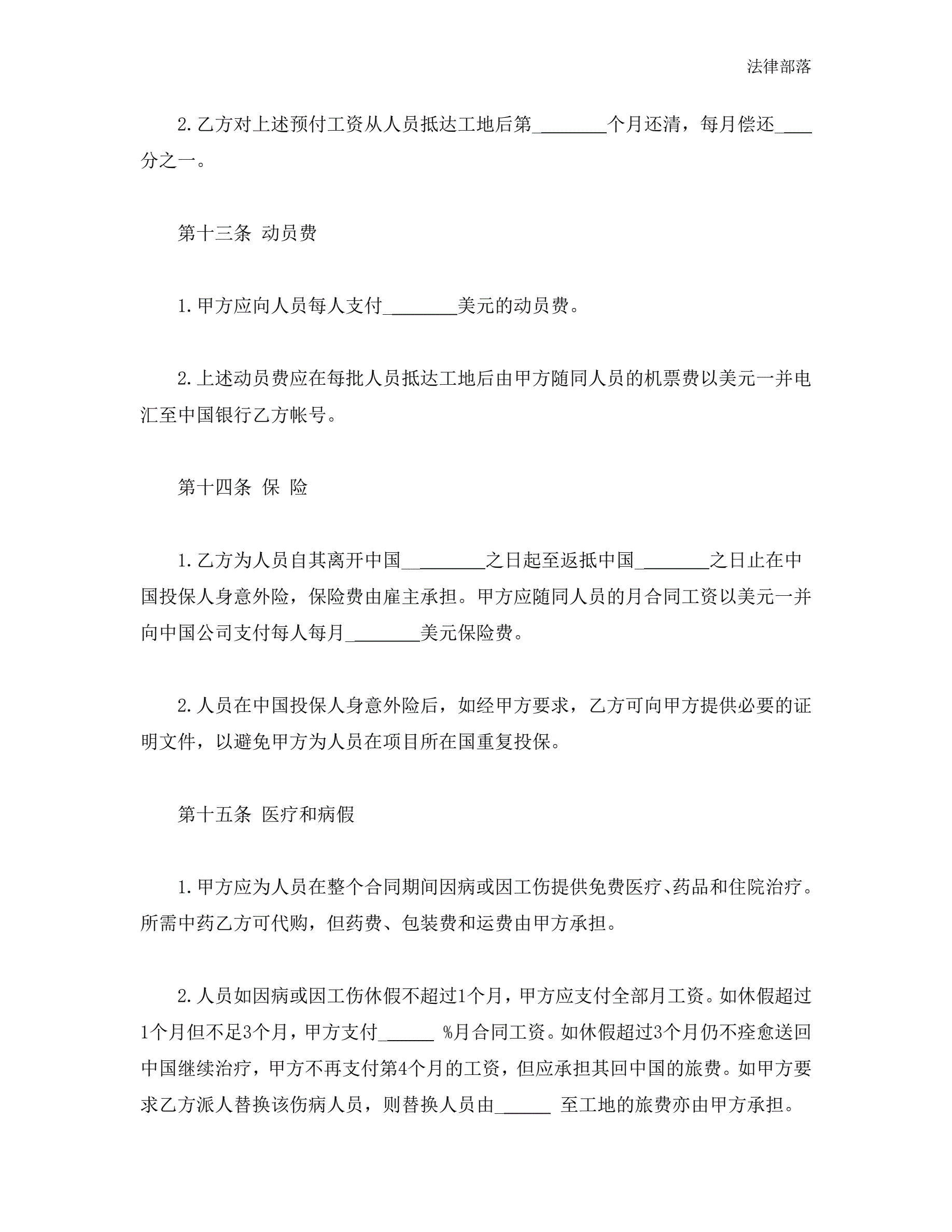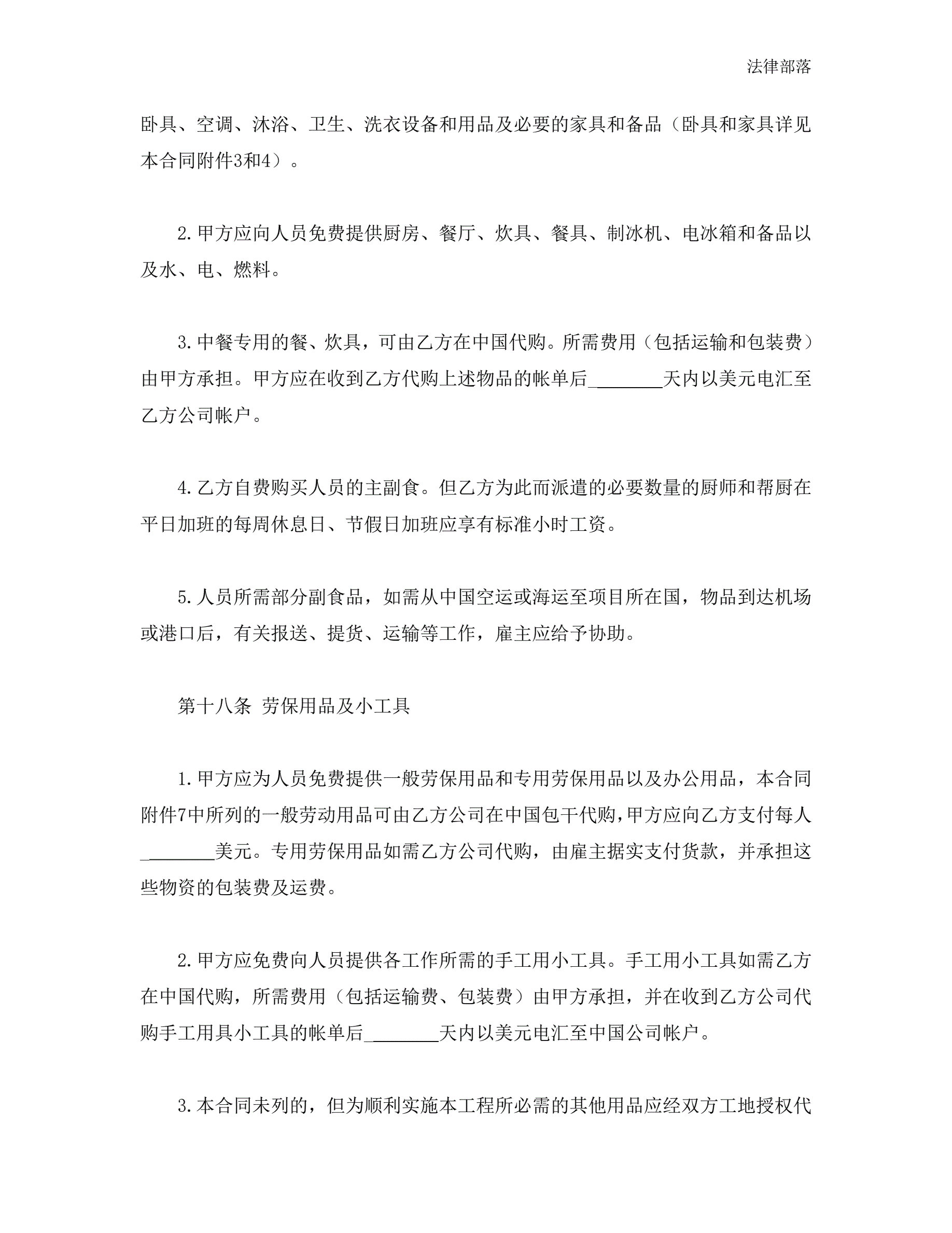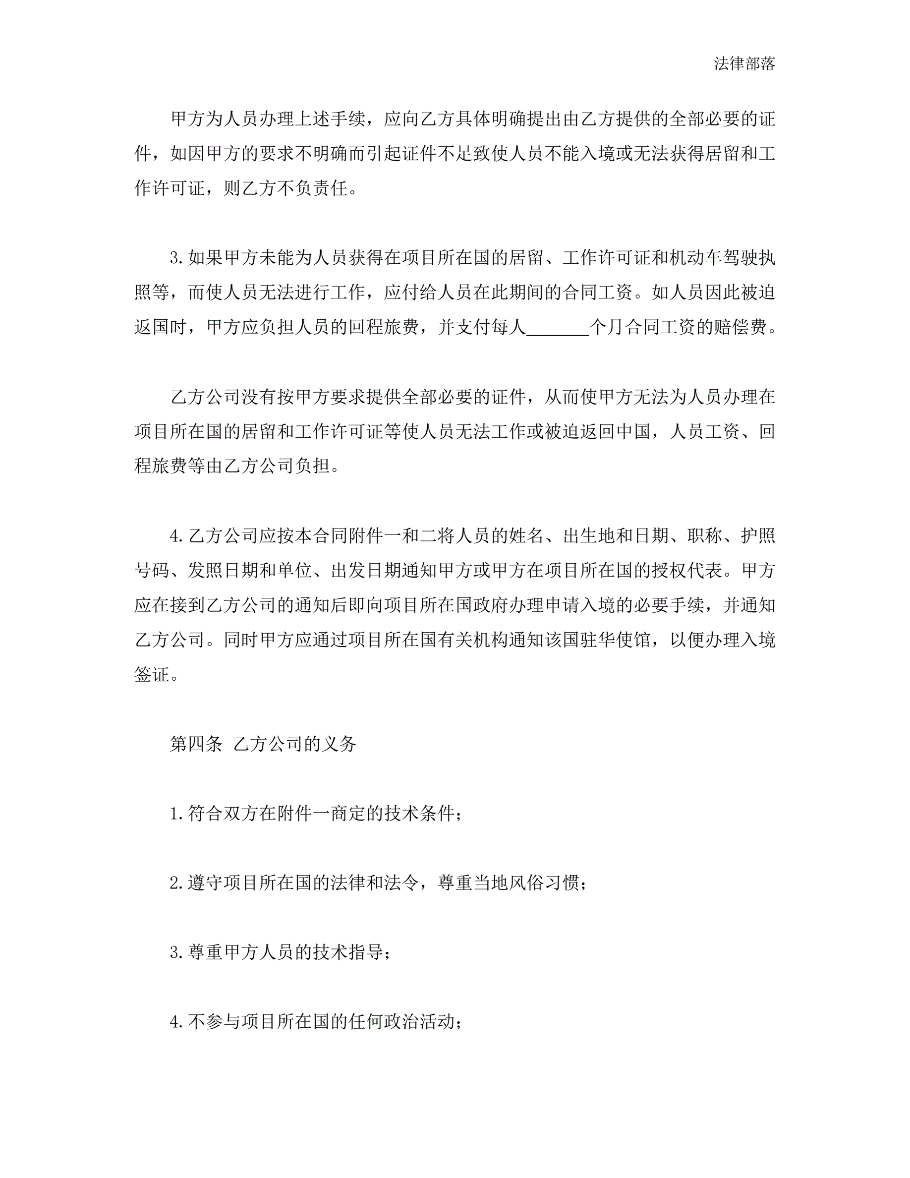 中外劳务合同