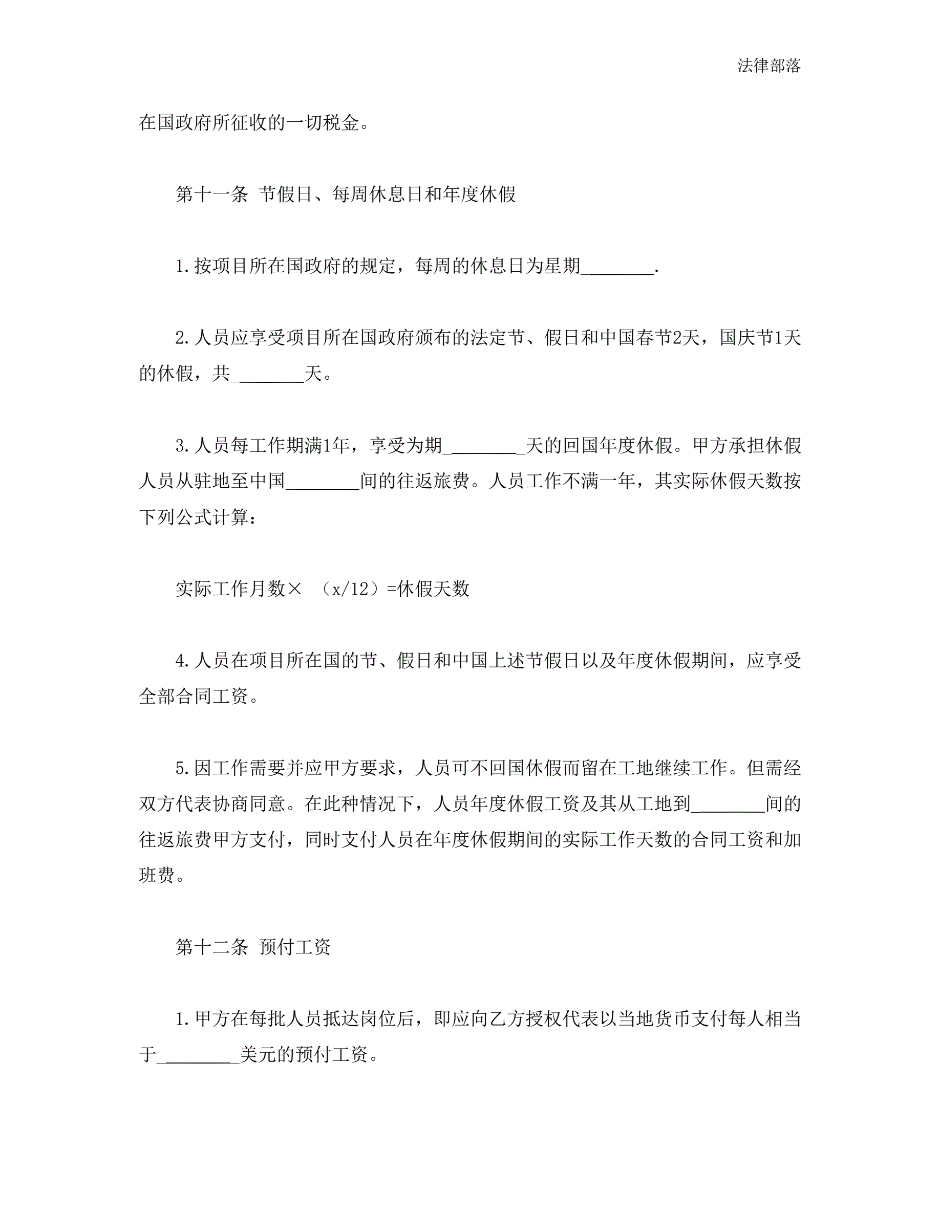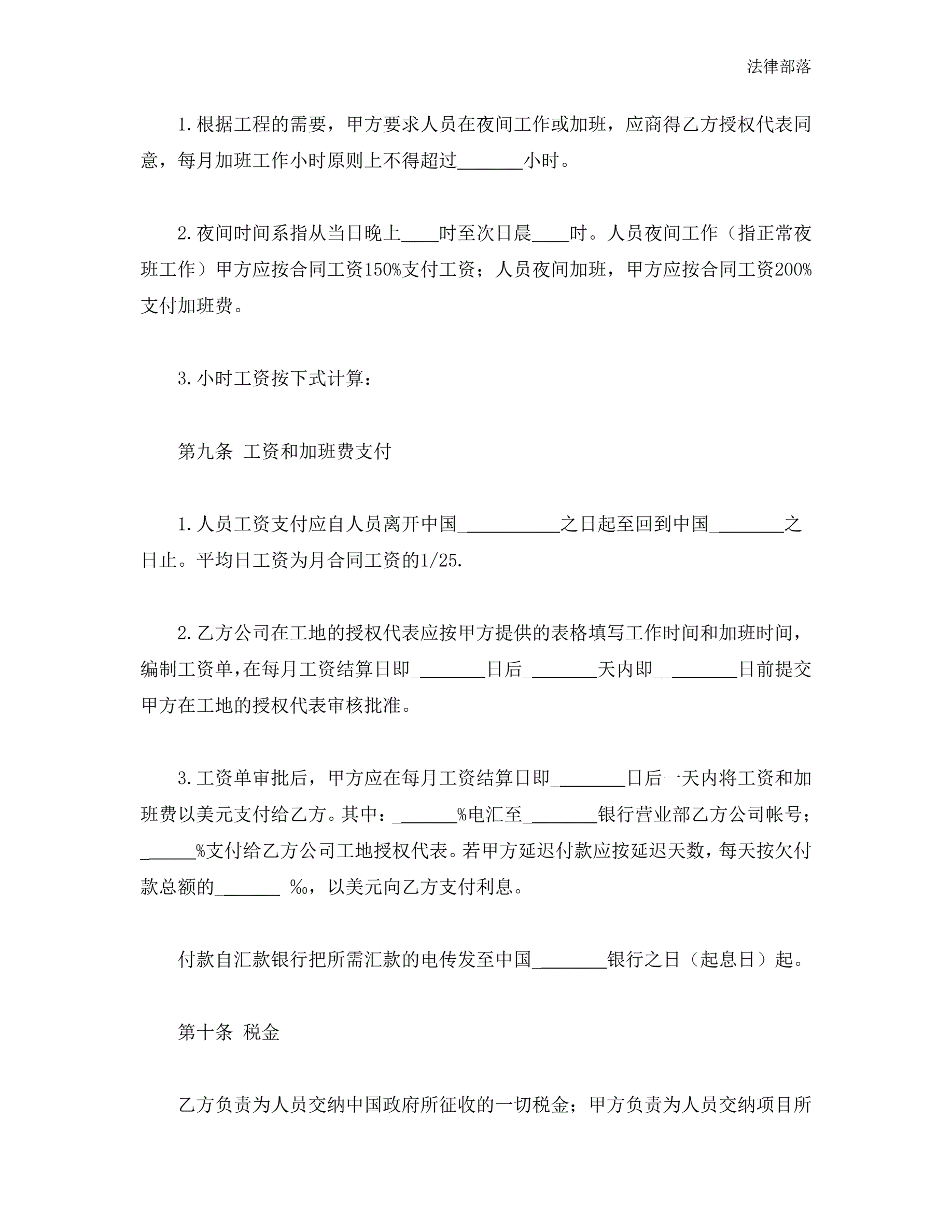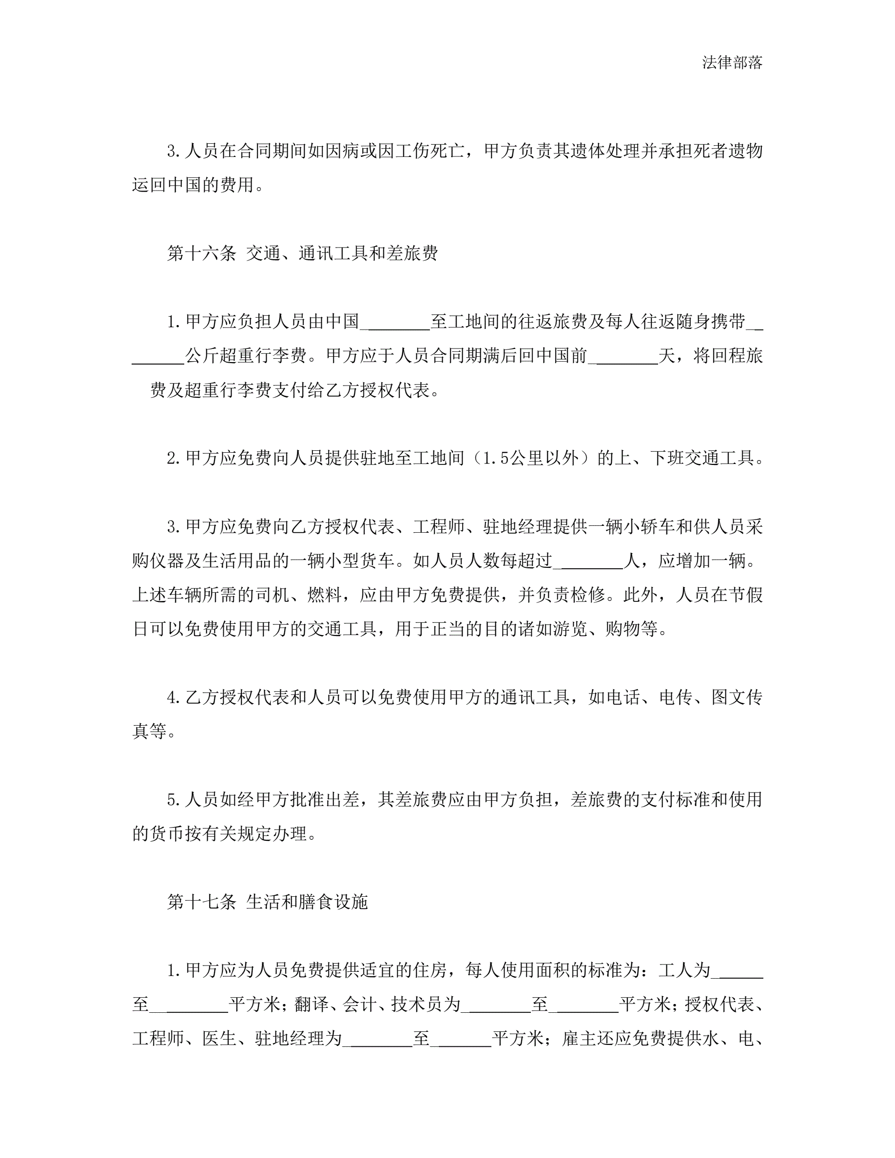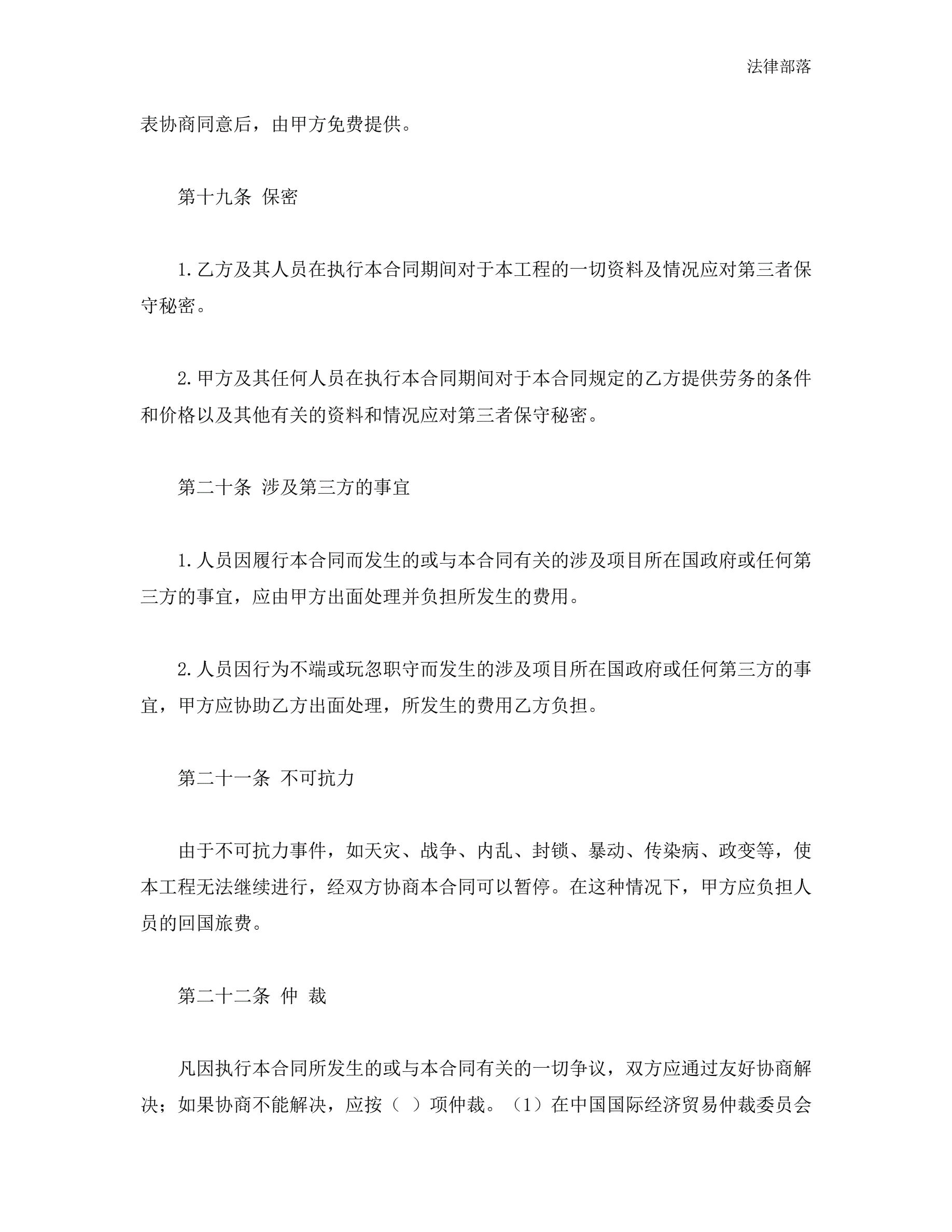 中外劳务合同