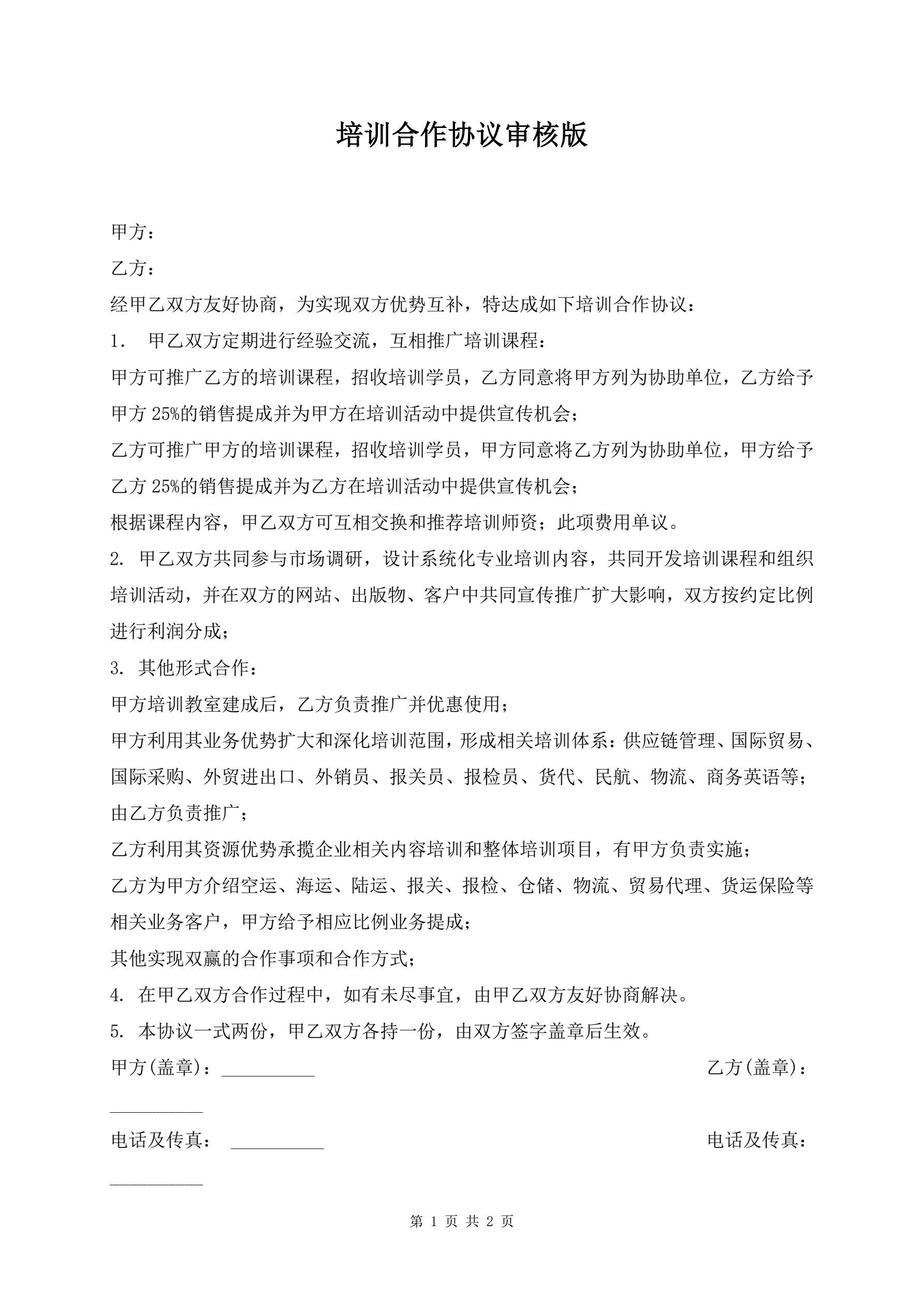 培训合作协议审核版