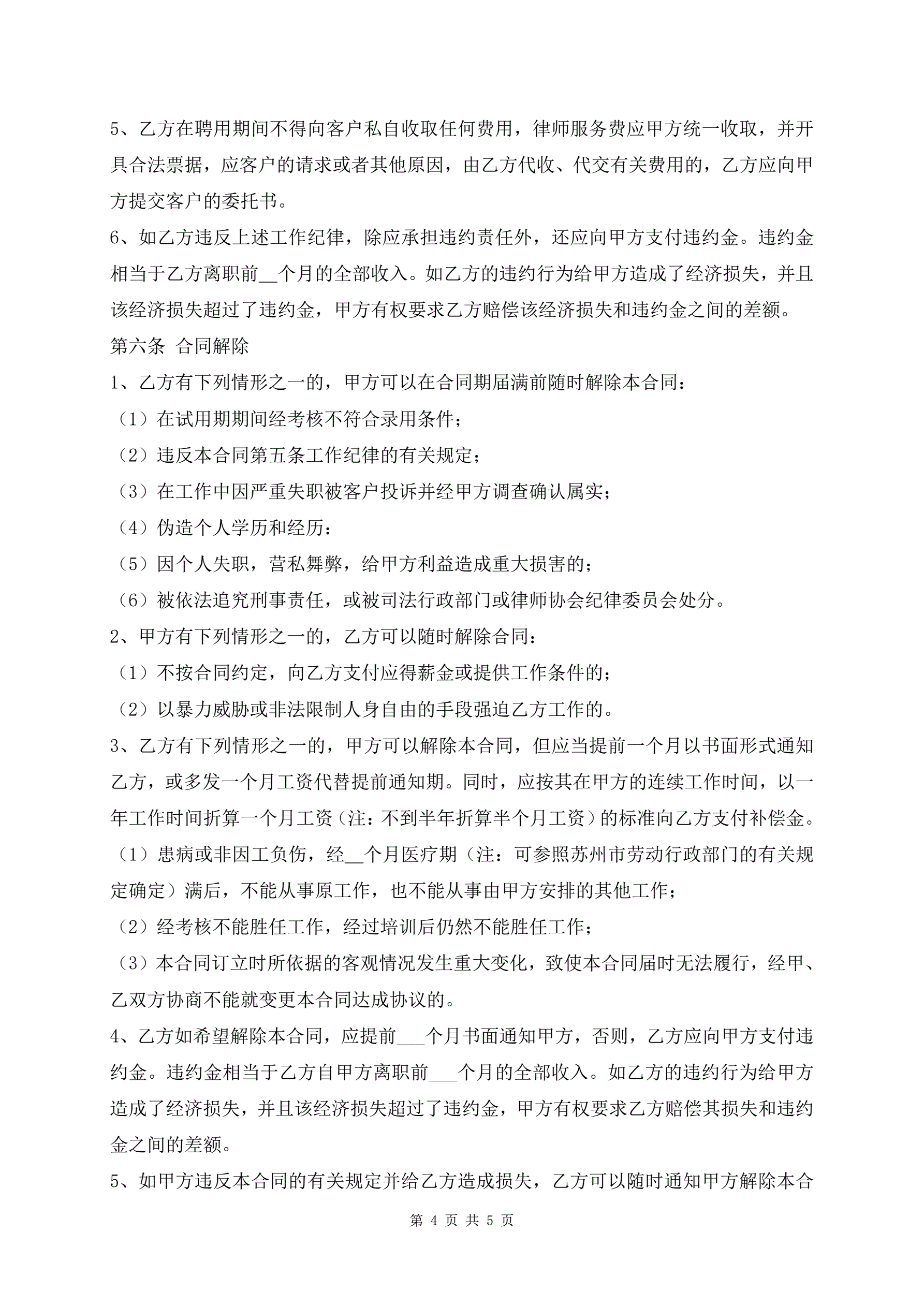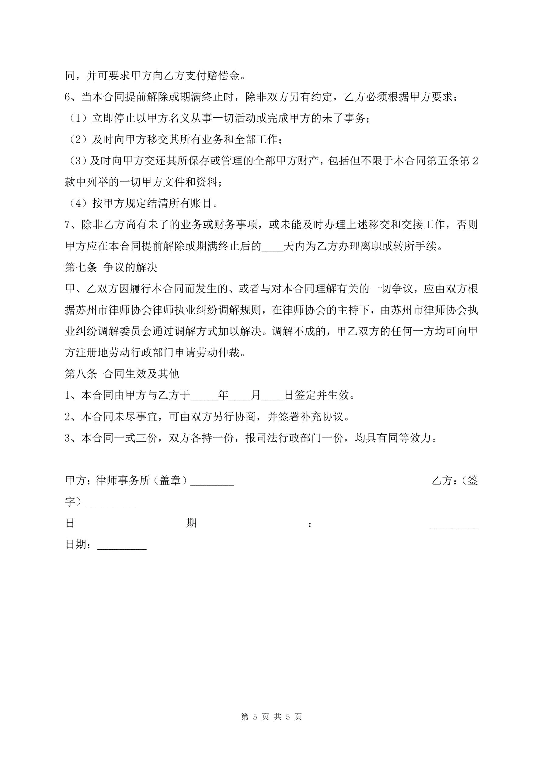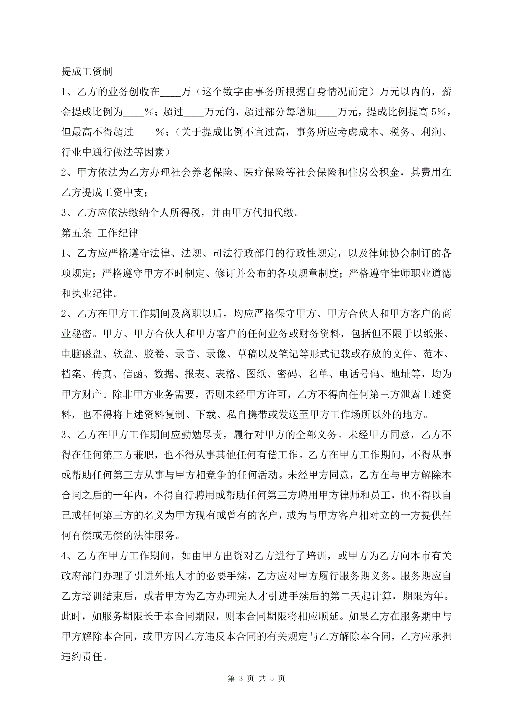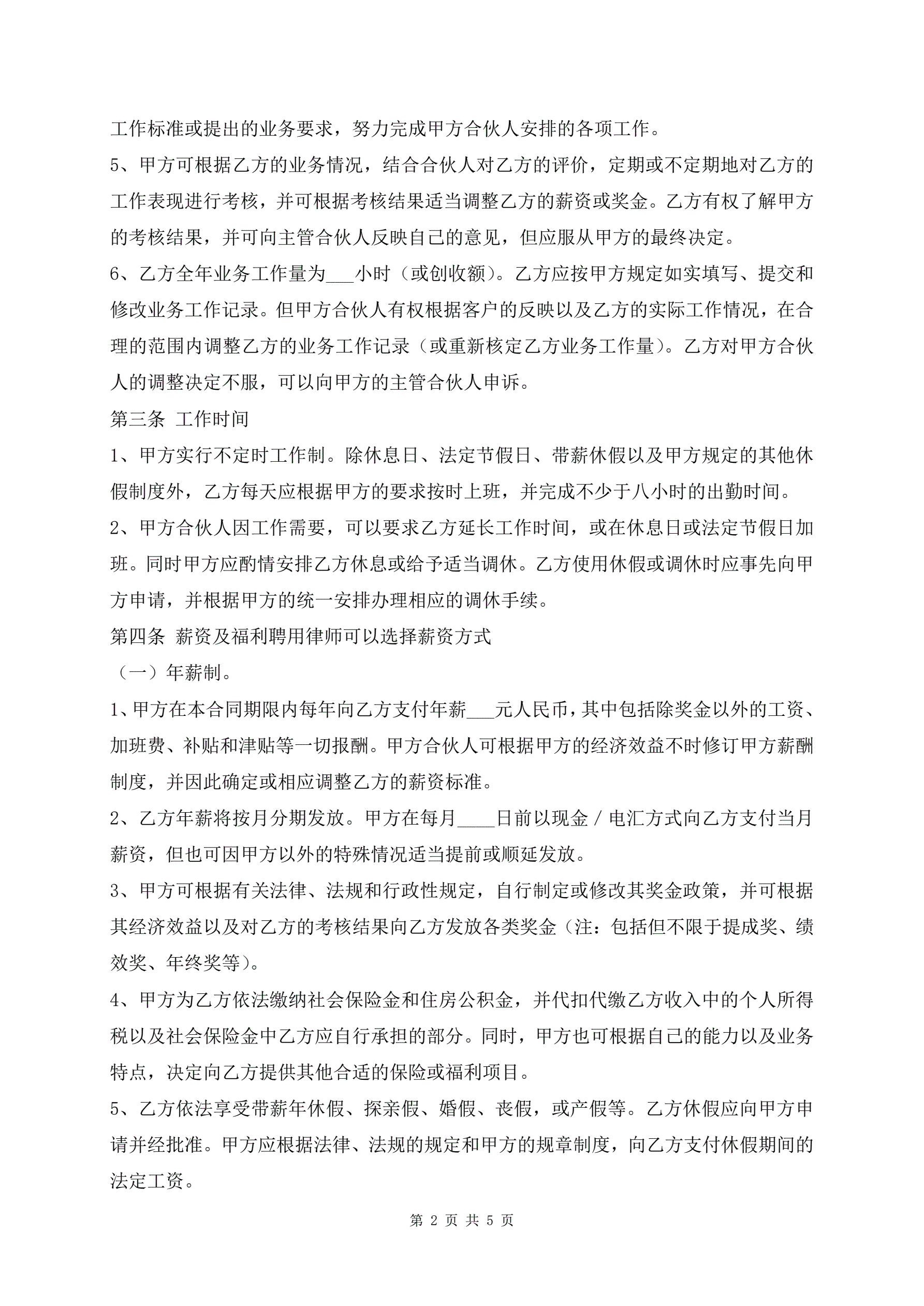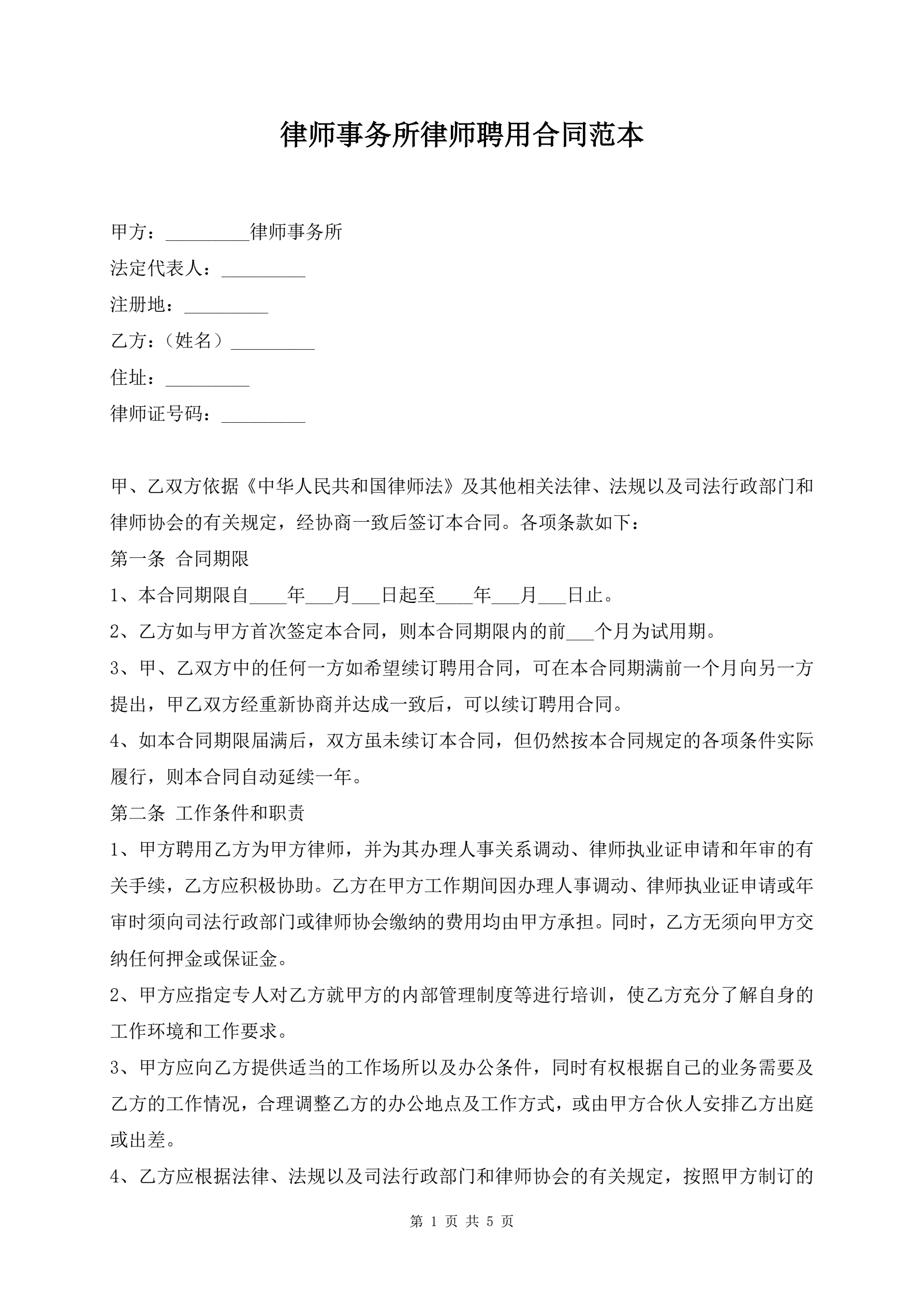 律师事务所律师聘用合同范本