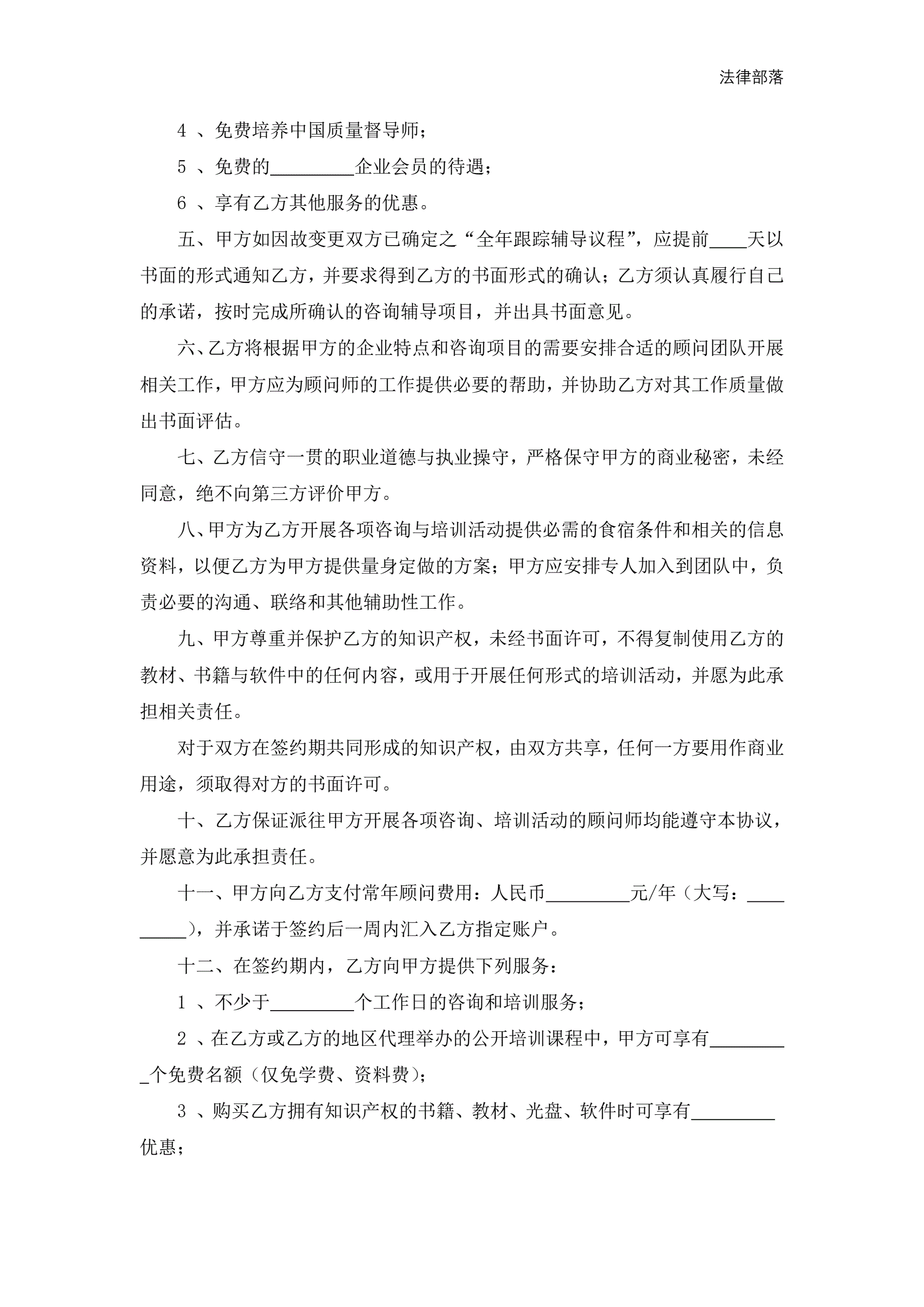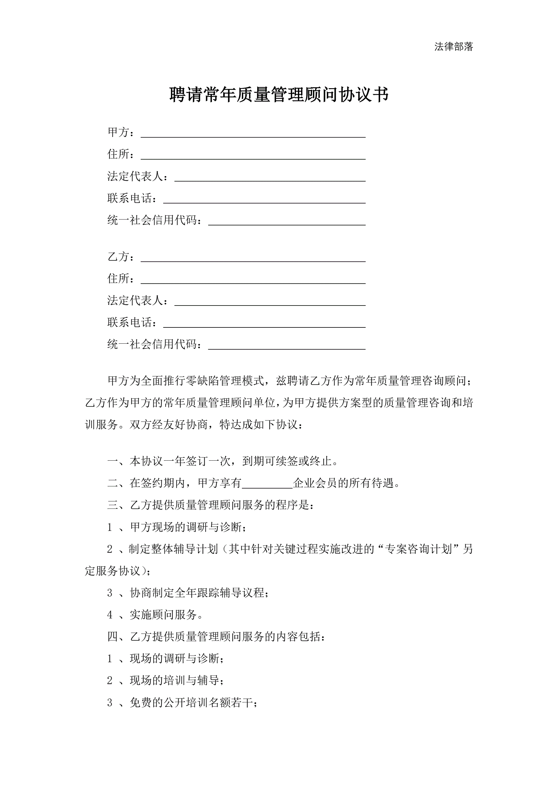 >聘请常年质量管理顾问协议书