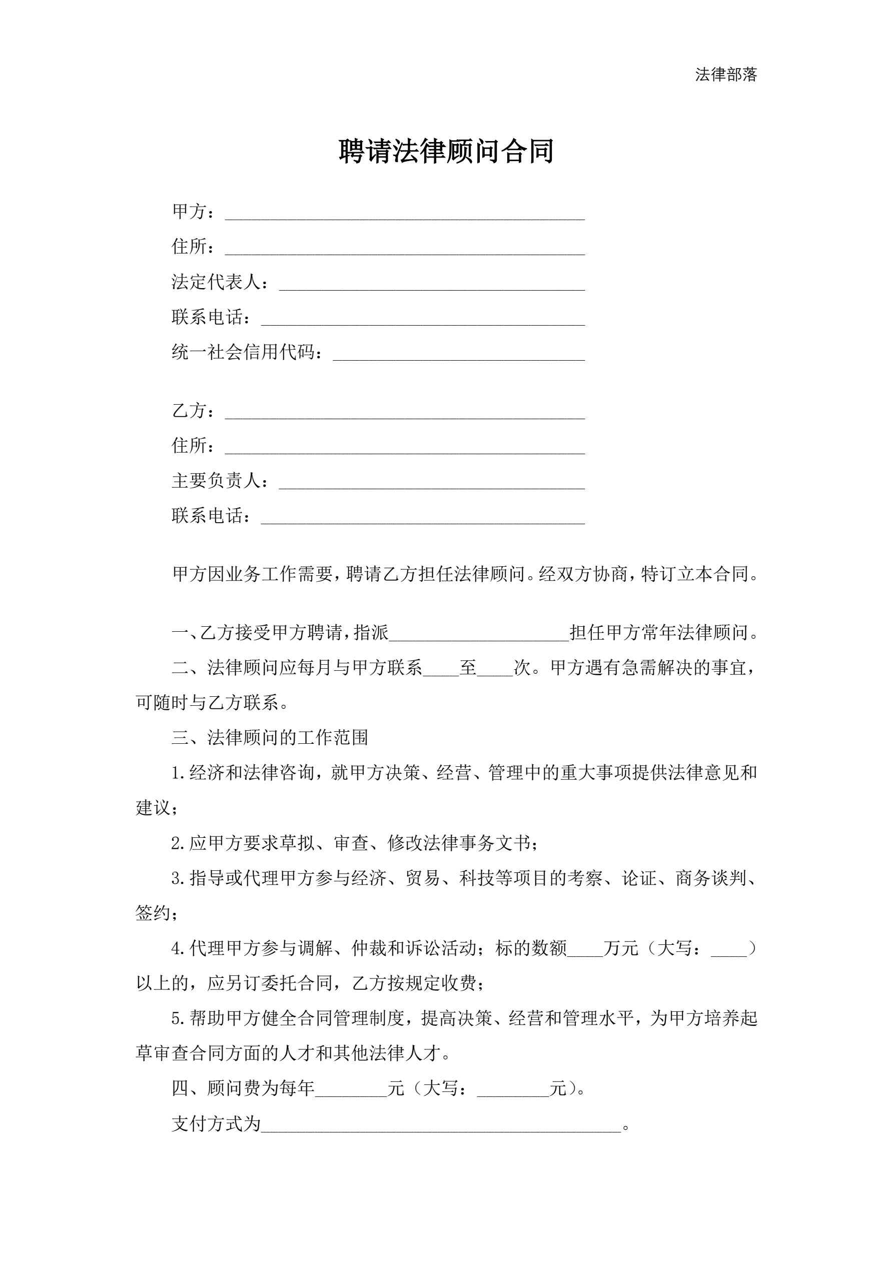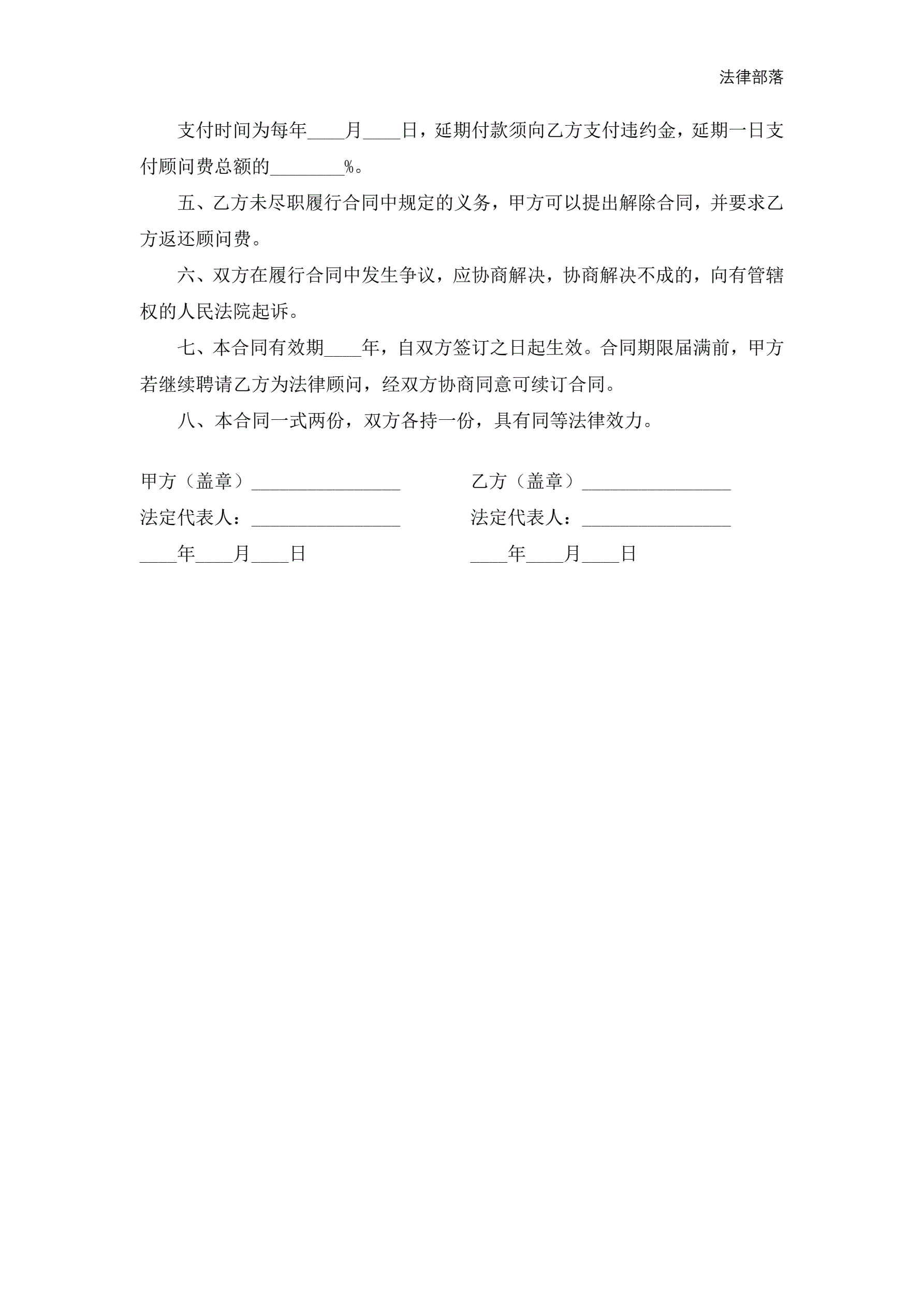 >聘请法律顾问合同